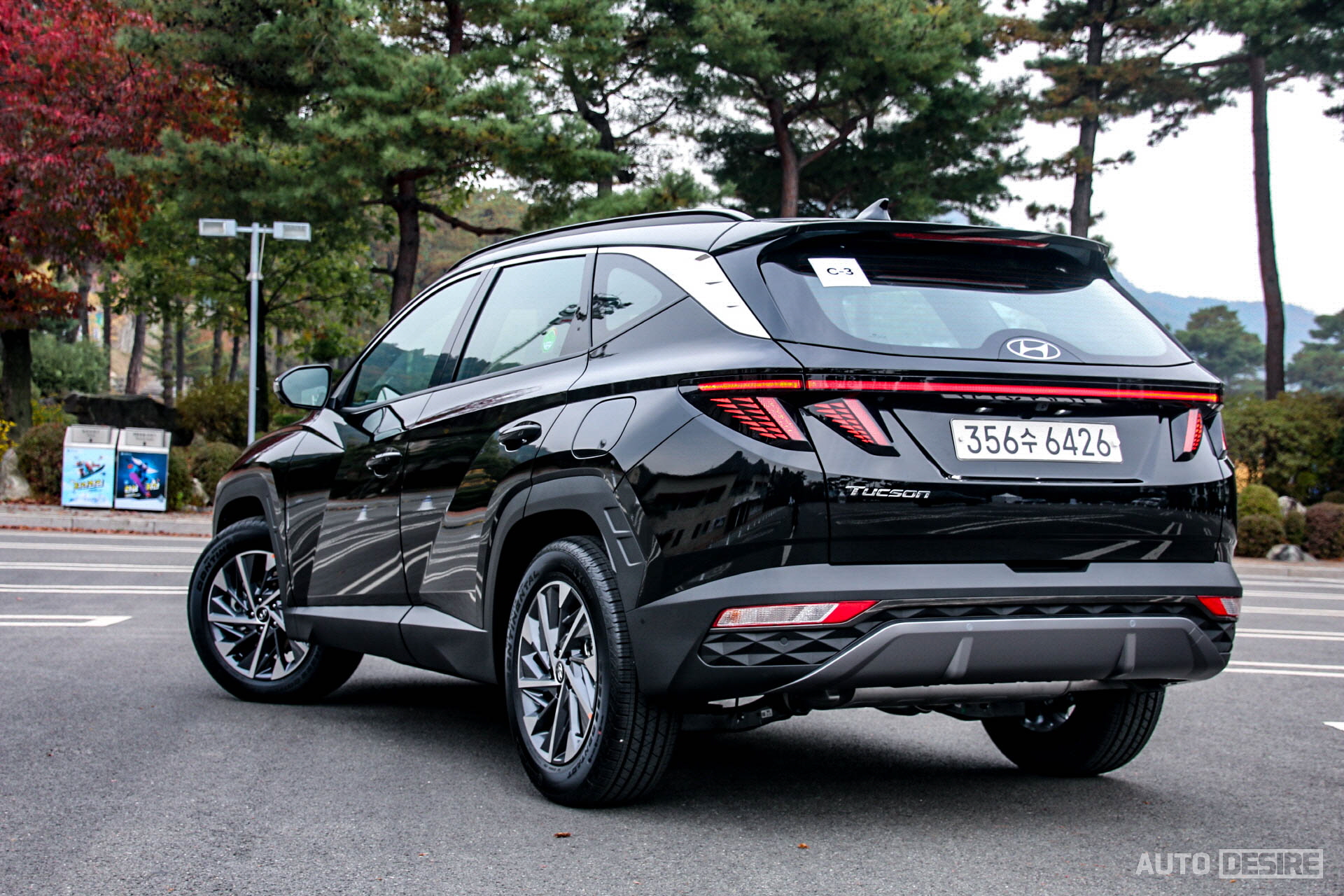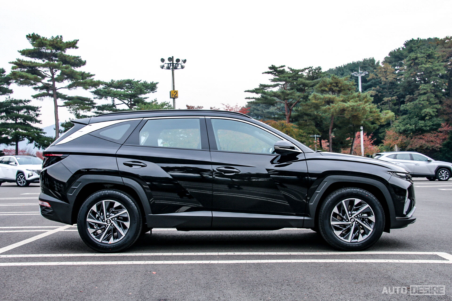 최근 하이브리드 라인업이 점차 다양한 차종으로 확대되고 있기도 하고, 별도의 특별한 모델이라기 보다는 다양한 파워트레인 중 하나의 선택지로 자리 잡게 되면서 하이브리드 차량의 디자인도 일반 모델과 크게 차이를 두지 않는 추세, 4세대 투싼 역시 2.0 디젤, 1.6 가솔린 터보 모델과 하이브리드 간 외적인 디자인 차이는 크게 두지 않는 모습이다. 굳이 차이점을 찾자면 하이브리드에는 19인치 휠이 적용되지 않고, 17인치 휠이 하이브리드 전용 공력 휠이 적용된다는 정도.