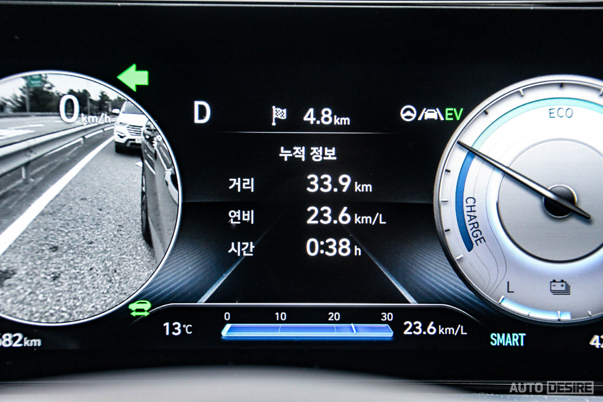 당연히 연비도 잘 나와줘서 출발지인 용인 기흥 더 카핑에서 지산 포레스트까지 기록한 연비는 23.6km/L, 지산 포레스트 기착지를 돌아 다시 더 카핑까지 돌아온 연비는 21.6km/L. 신형 투싼 하이브리드 18인치 휠+빌트인캠 적용 모델의 복합 연비인 15.8km/L를 훨씬 더 상회하는 수치인데, 차후에 다시 연비를 체크해봐도 22~23km/L의 연비를 발휘해줄 것으로 기대가 된다.
