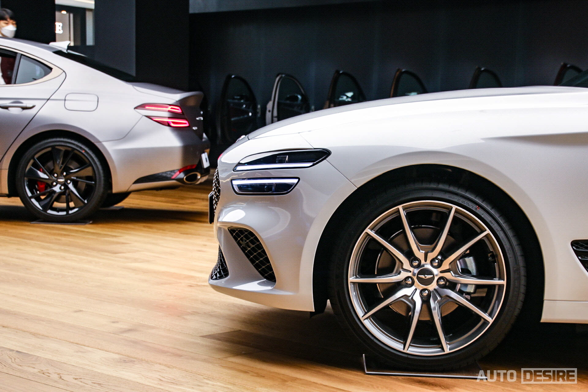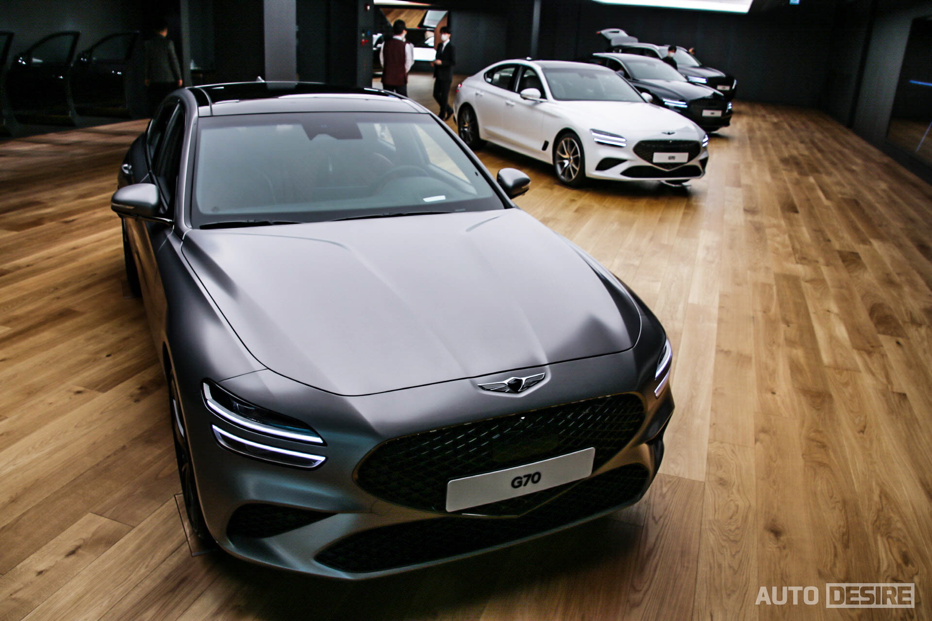 현재 전시 중인 차량으로는 신차인 더 뉴 G70 3.3T 스포츠 패키지 본드 실버와 2.0T 우유니 화이트 모델과 함께,