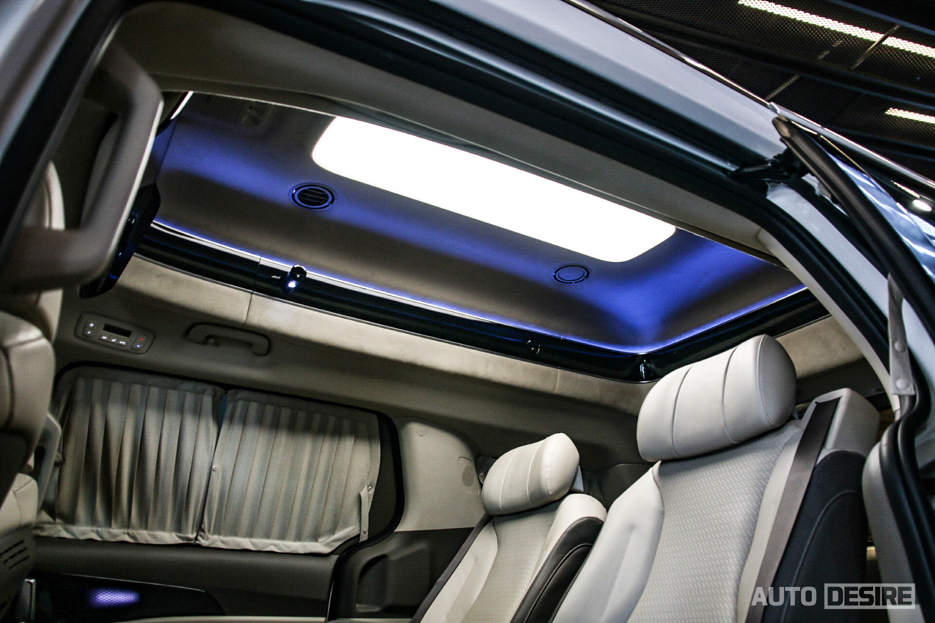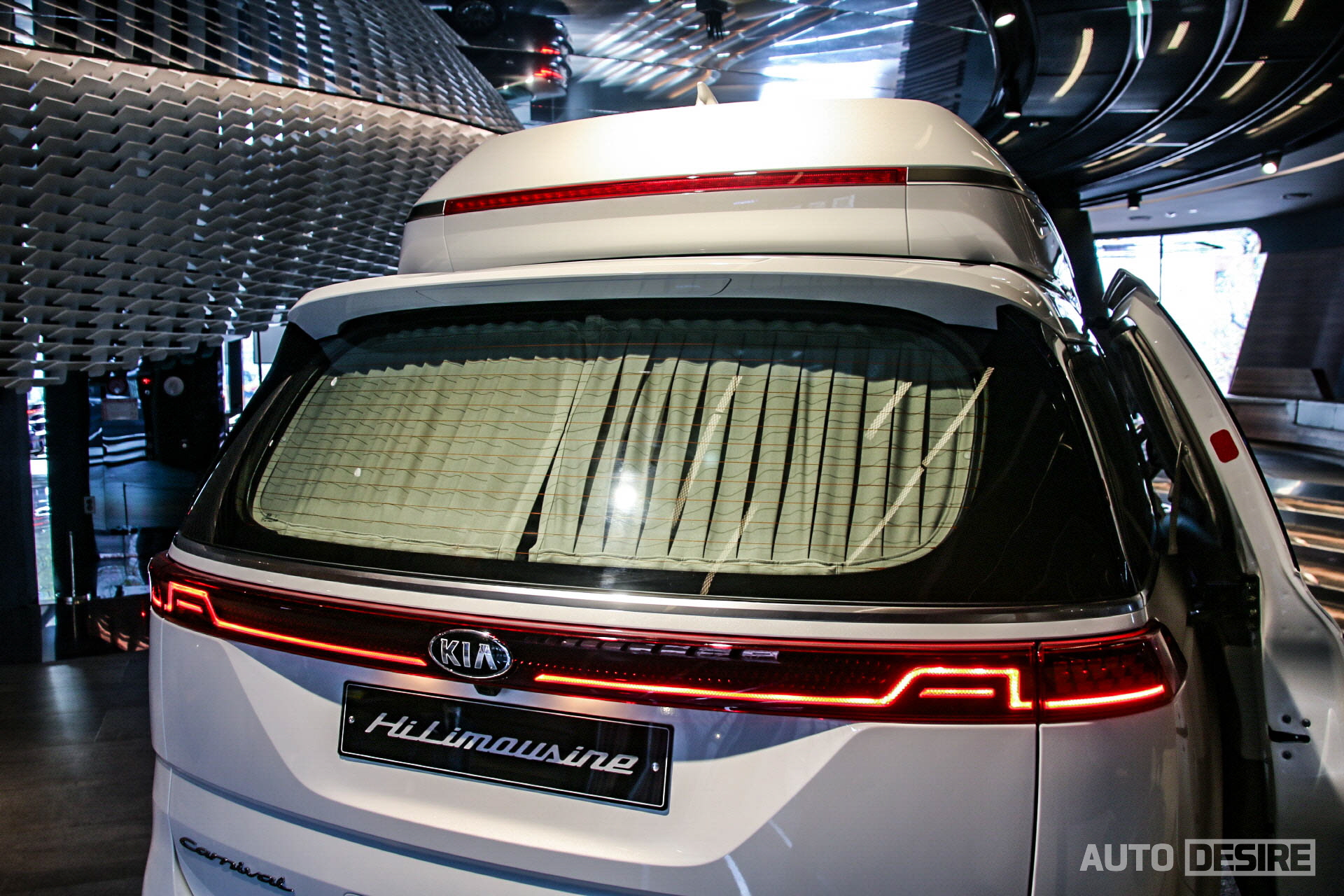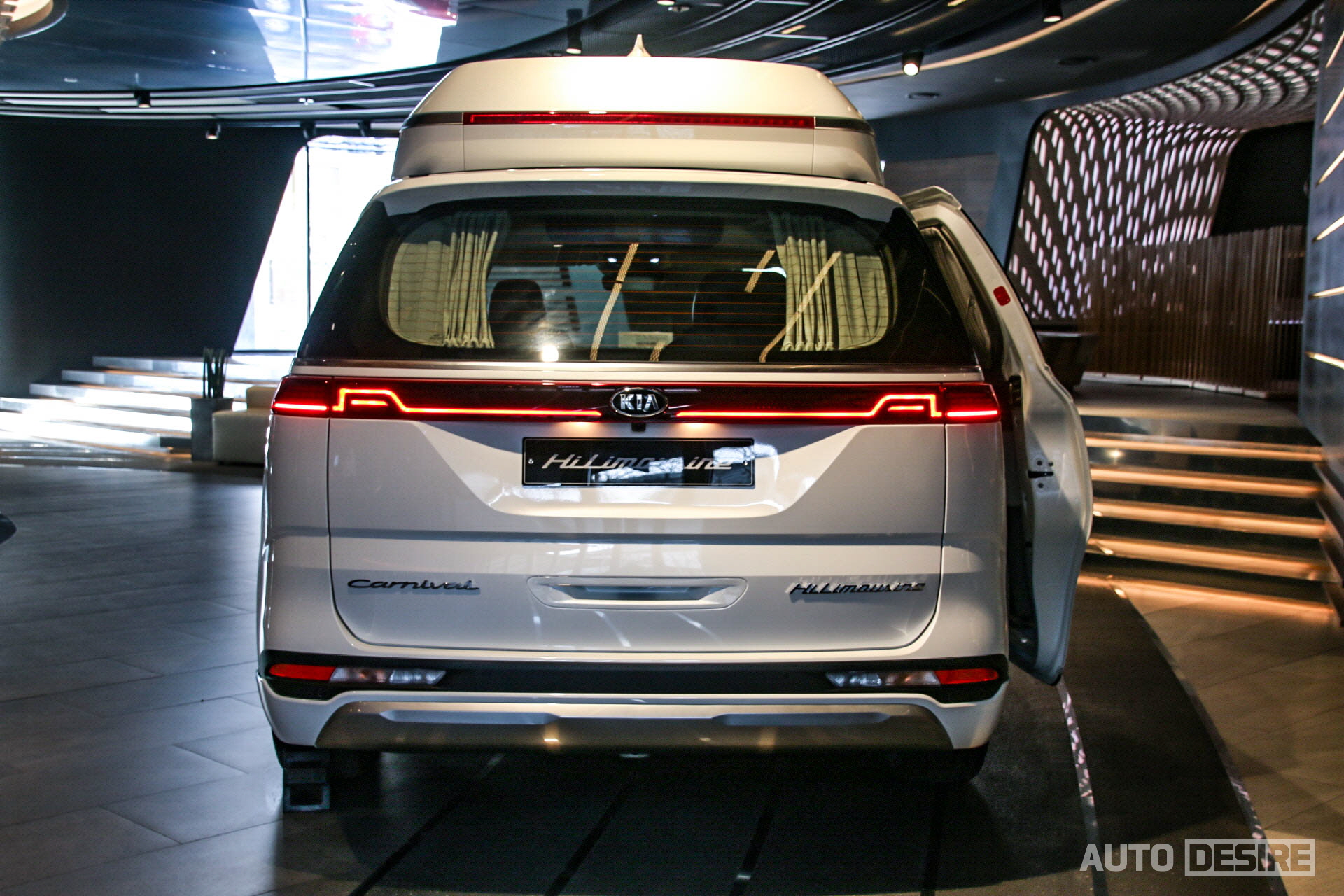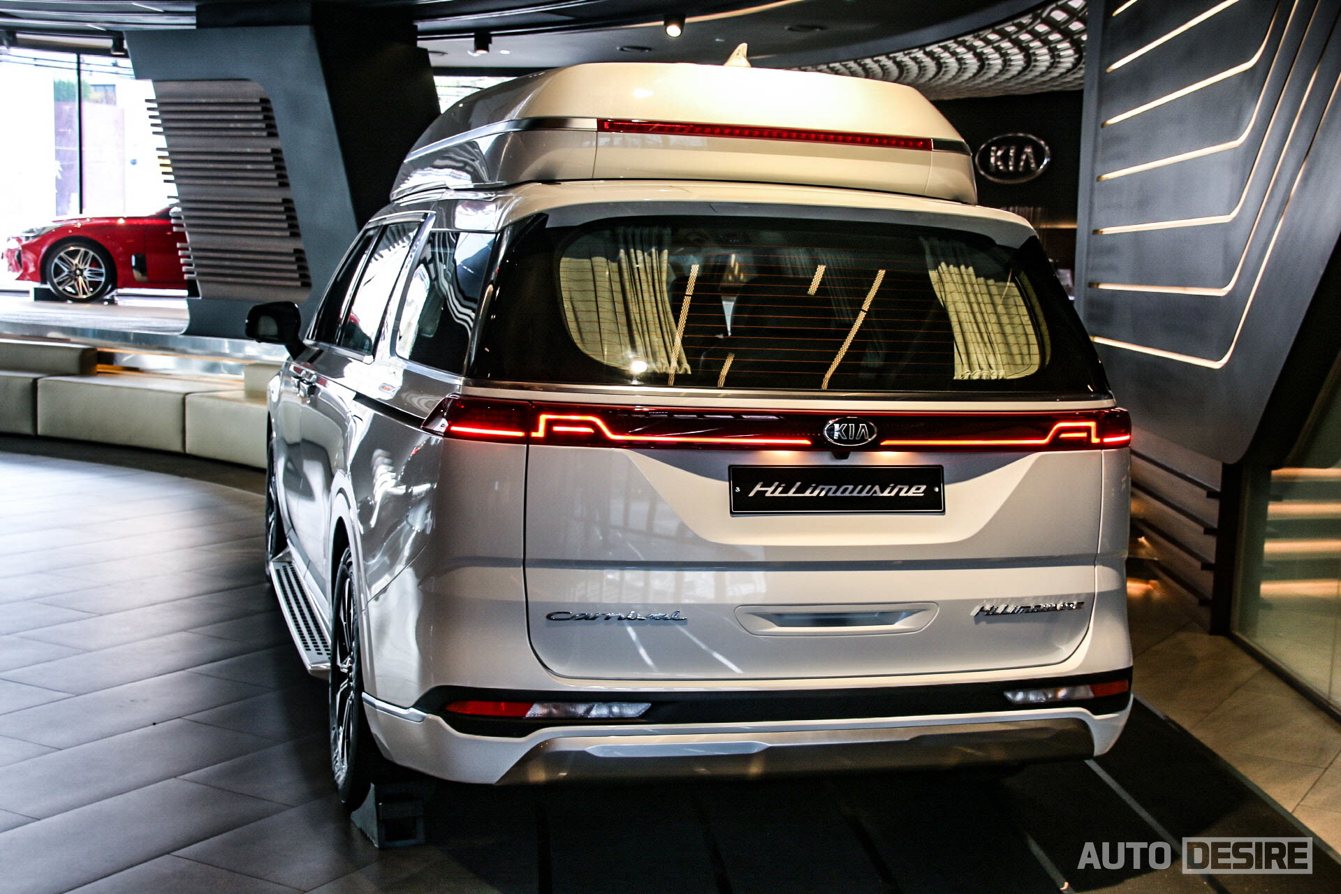 하이리무진의 가장 차별화되는 부분인 루프는 일반 카니발 대비 헤드룸을 291mm 더 높여 여유로운 공간, 쾌적함을 전해주고 중앙에 큰 사이즈의 LED 룸램프와 테두리 앰비언트 무드 램프, 스웨이드 마감재를 통해 고급스러움, 안락함을 전한다. 후석 승객의 시야각을 고려해 설치된 21.5인치 스마트 모니터는 지상파 DMB와 함께 USB, HDMI 단자와 스마트 기기 미러링/쉐어링도 지원해 이동 중 편하게 원하는 영상 시청이 가능하고, 측면의 LED 독서등은 팝업 방식으로 사용하지 않을 때 깔끔하게 수납할 수 있고, 각도 조절도 가능하다. 물론 후석 음성 인식 기능도 적용된다.