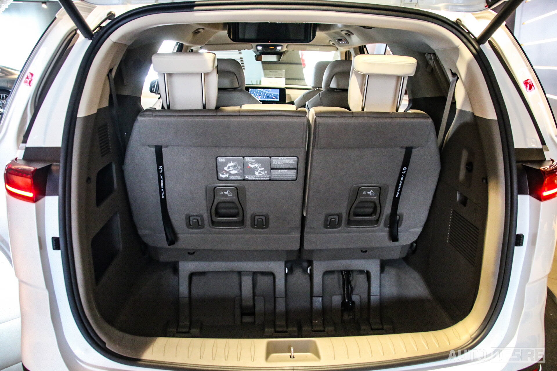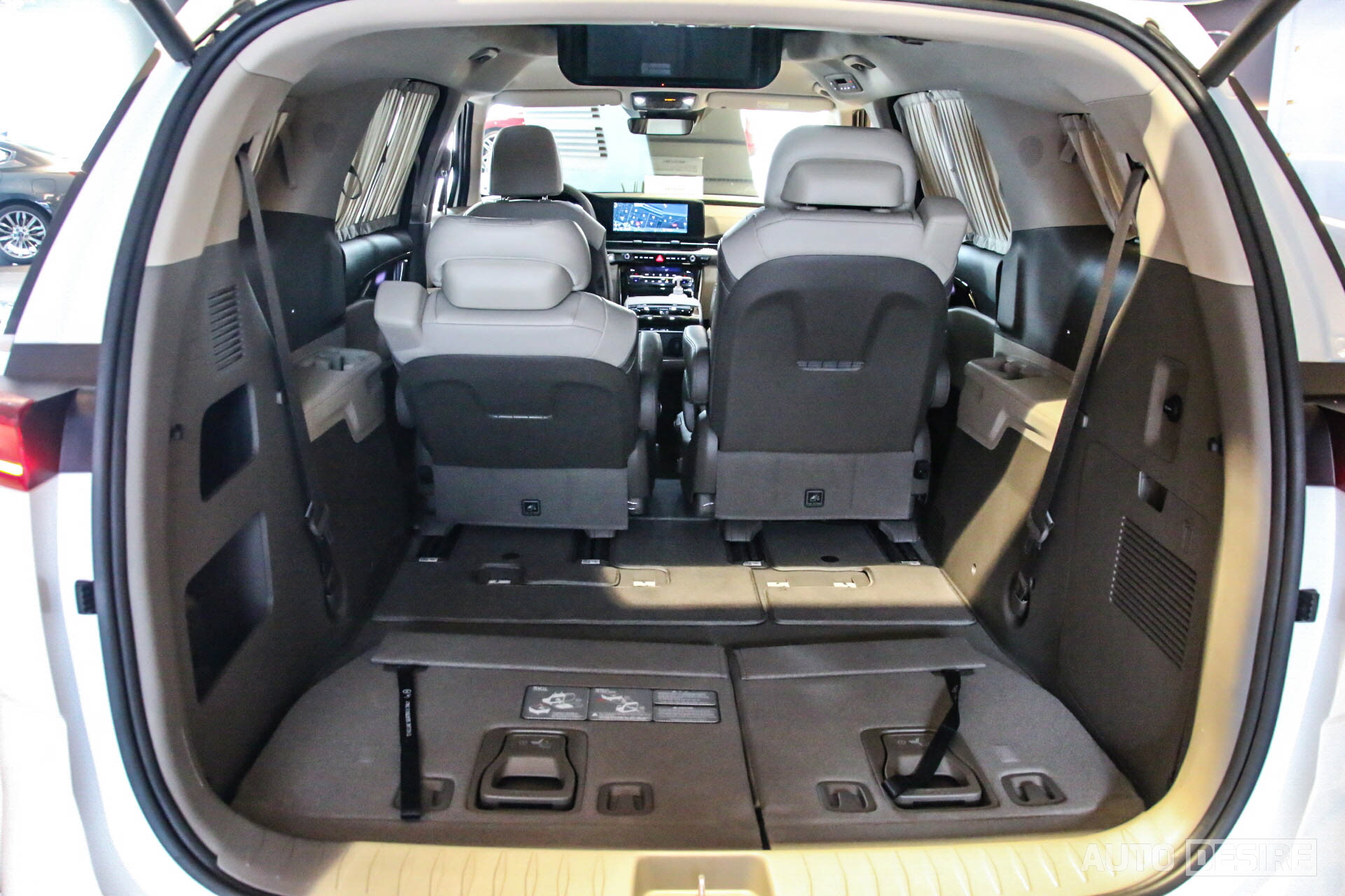 시트 배열이 동일한 만큼 3열 좌석은 싱킹 시트 방식으로 차량 바닥에 완전히 평평하게 수납이 가능해 많은 양의 짐을 싣거나, 차박을 하기에도 용이하고, 시트를 펼친 상태에서도 기본 공간이 상당히 넓고 바닥도 깊어 큰 사이즈의 골프백, 캐리어도 무리 없이 적재가 가능하다.