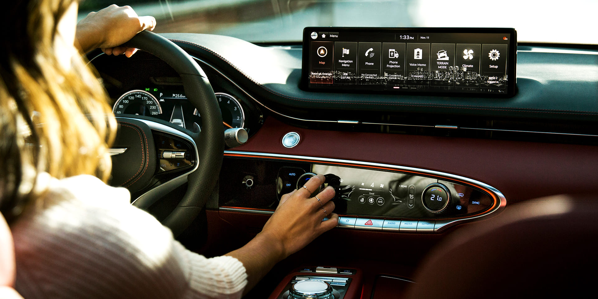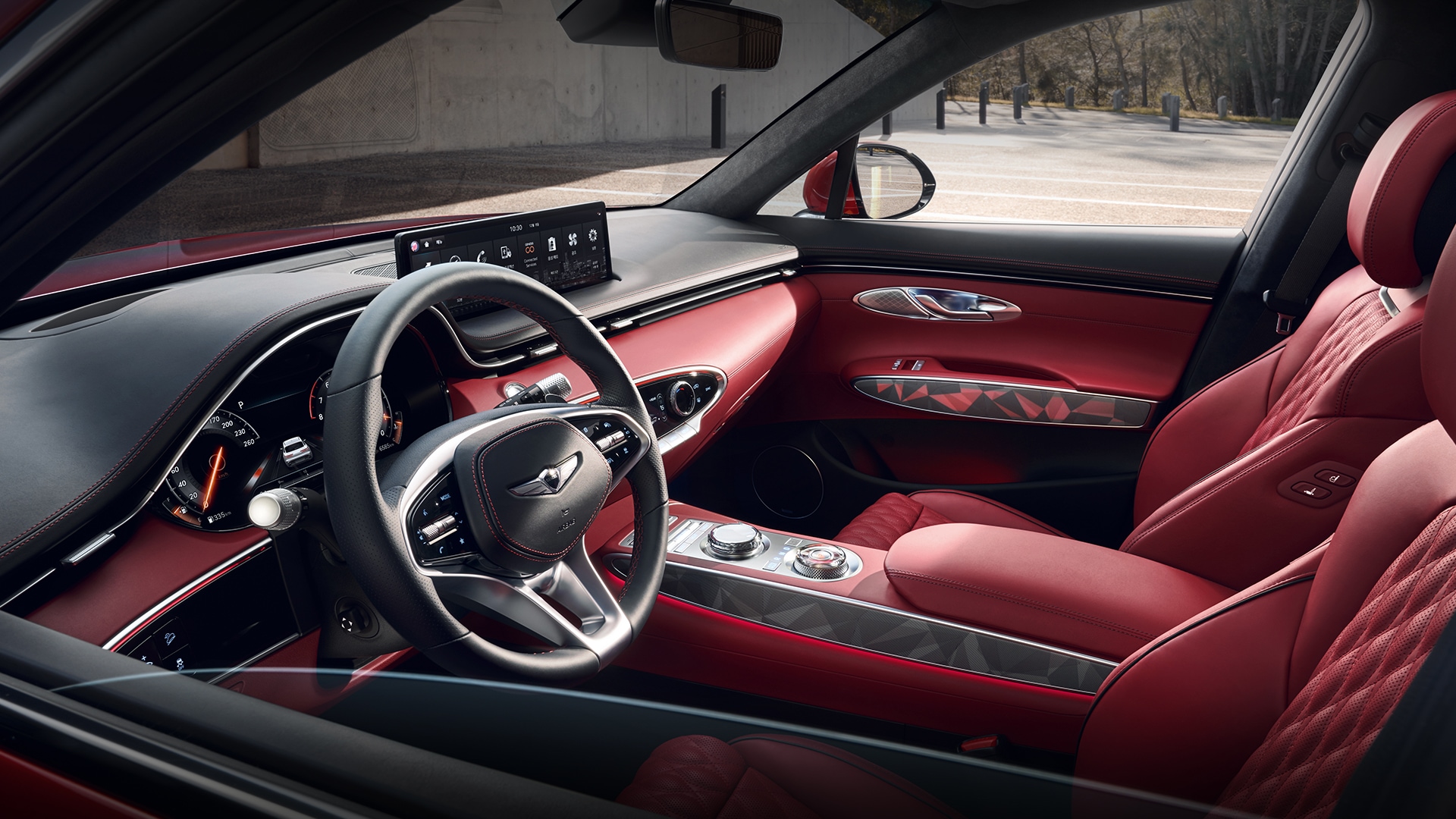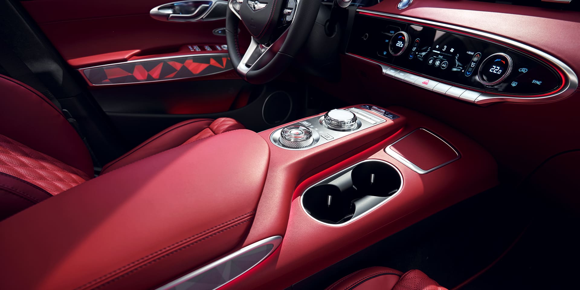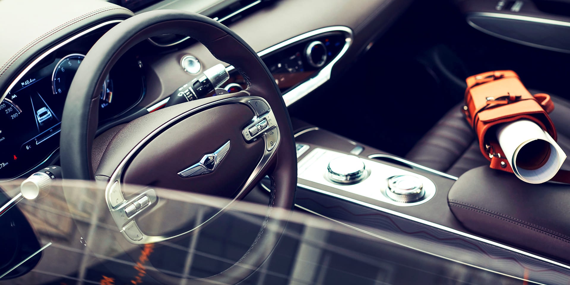 여백의 미와 스포티한 감성을 조화롭게 구현, 감성적인 볼륨감을 보여주는 실내 디자인에는 날렵한 형태의 송풍구, LCD 디스플레이/터치 패드 적용을 더 확대해 조작 버튼 개수를 최소화하고 인체공학적인 구조로 시각적으로는 간결함을, 사용하는 데 있어서 편의성을 높였으며, 센터 콘솔의 인포 시스템 조작 다이얼은 G80/GV80의 오목하게 파인 형상이 아닌 돌출된 형태로 적용했다. 전자식 변속기 역시 정교한 디테일을 보여주는 다이얼 방식이 적용된다.