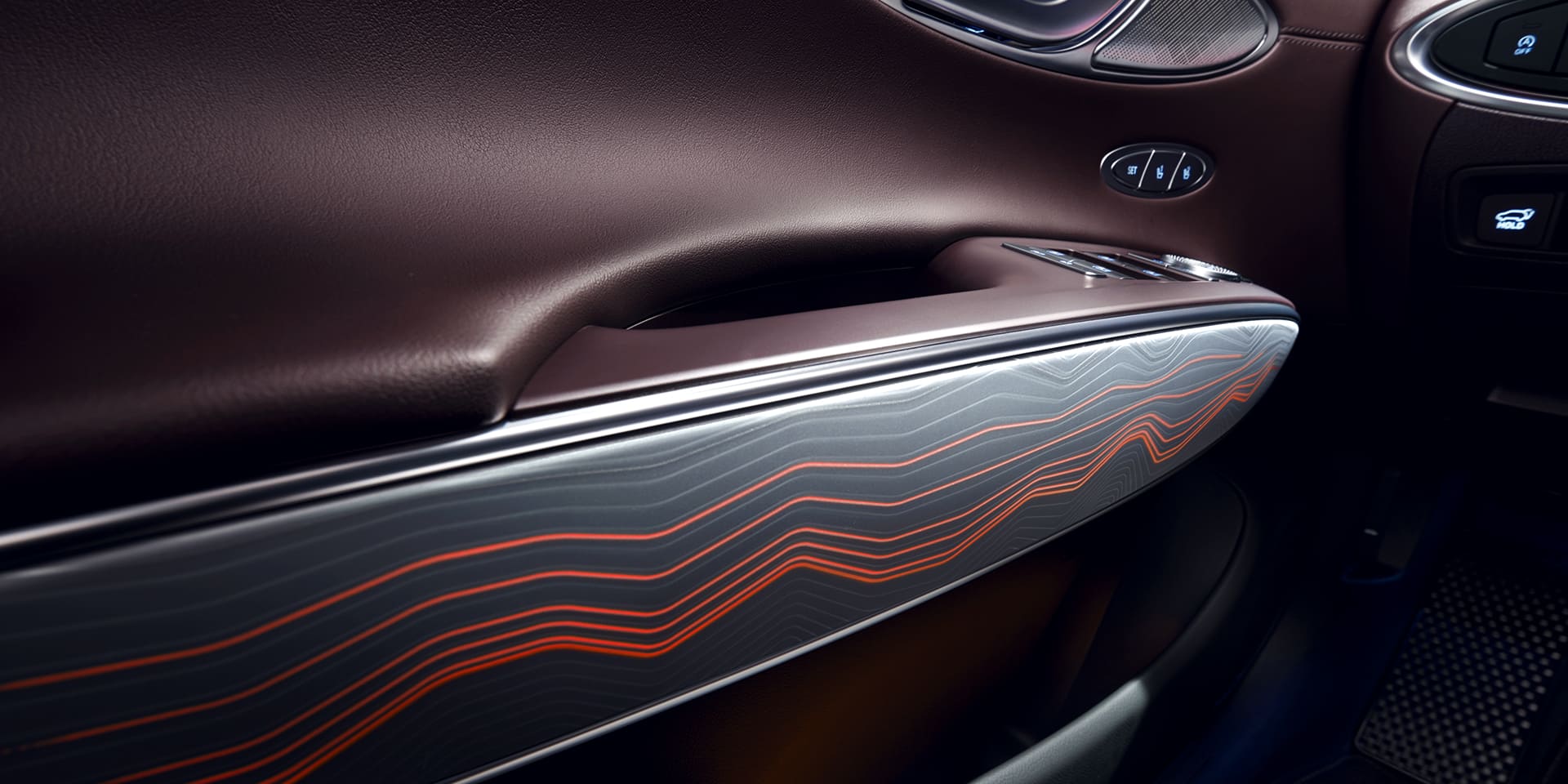 이 외에도 도어 가니시 역시 타원 형상으로, 암레스트는 비행기 바디와 날개가 연결된 부분에서 모티브를 얻어 역동적인 감성을 표현했고, 도어 가니시에 역동적인 그래픽의 웨이브라인 무드라이팅, 앰비언트 무드램프를 적용했다.