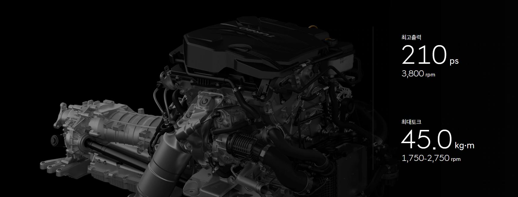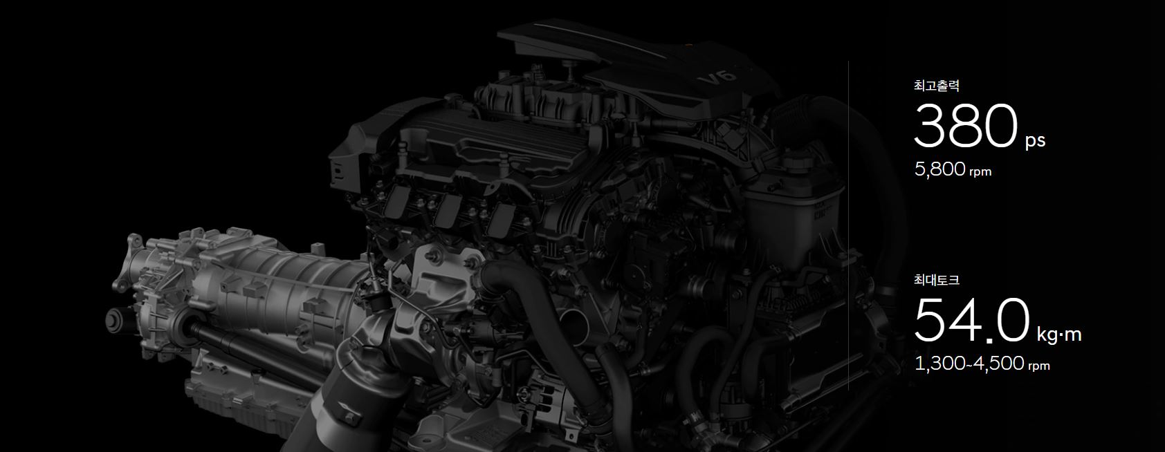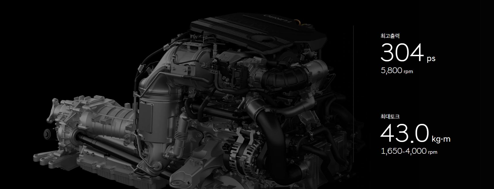 가솔린 2.5 터보는 최고출력 304마력, 최대토크 43.0kgf.m, 복합연비 10.7km/L(2WD 18인치 휠 기준), 가솔린 3.5 터보는 최고출력 380마력, 최대토크 54.0kgf.m, 복합연비 8.6km/L(AWD 19인치 휠 기준), 디젤 2.2는 최고출력 210마력, 최대토크 45.0kgf.m, 복합연비 13.5km/L(2WD 18인치 휠 기준)을 발휘하며, 가솔린 2.5 터보 / 3.5 터보의 경우 듀얼 퓨얼 인젝션 시스템을 적용에 성능과 연비 모두 챙겼으며, 수랭식 인터쿨러 적용으로 가속 응답성을 개선했다. 디젤 엔진에는 알루미늄 소재 블록을 적용해 무게를 낮추고, 볼 베어링 터보차저를 통해 베어링 부분 마찰을 저감해 가속 응답성을 개선했다.
