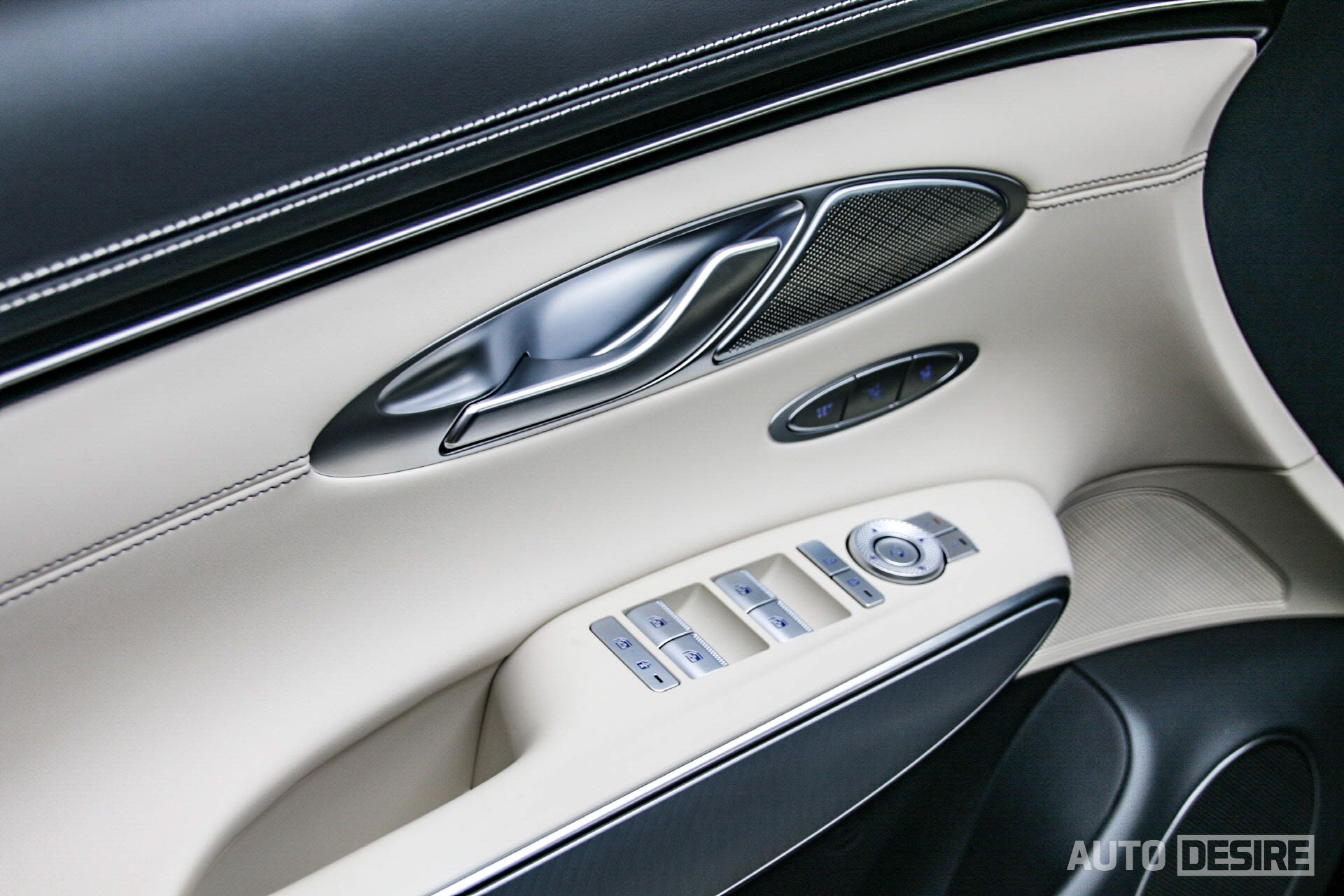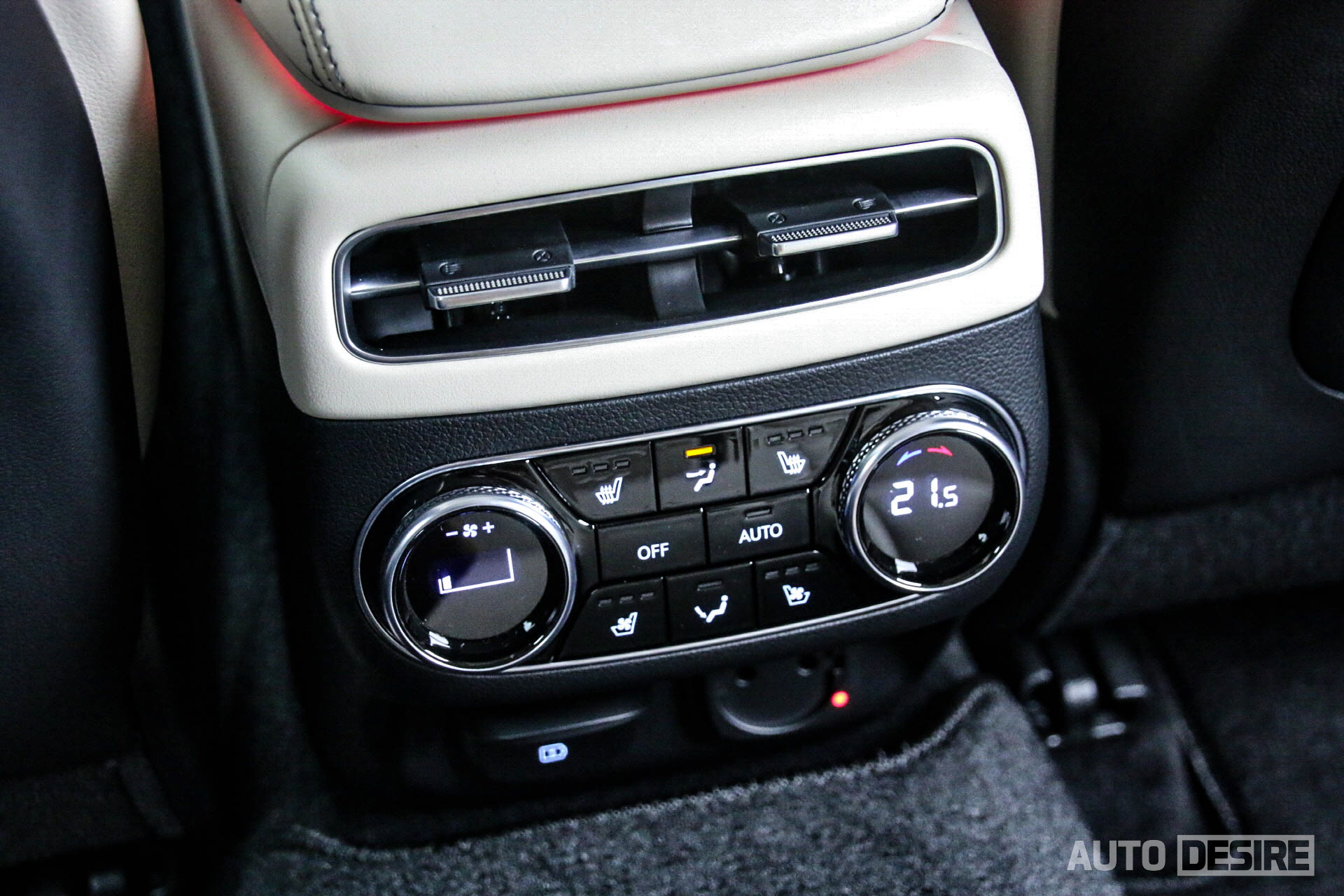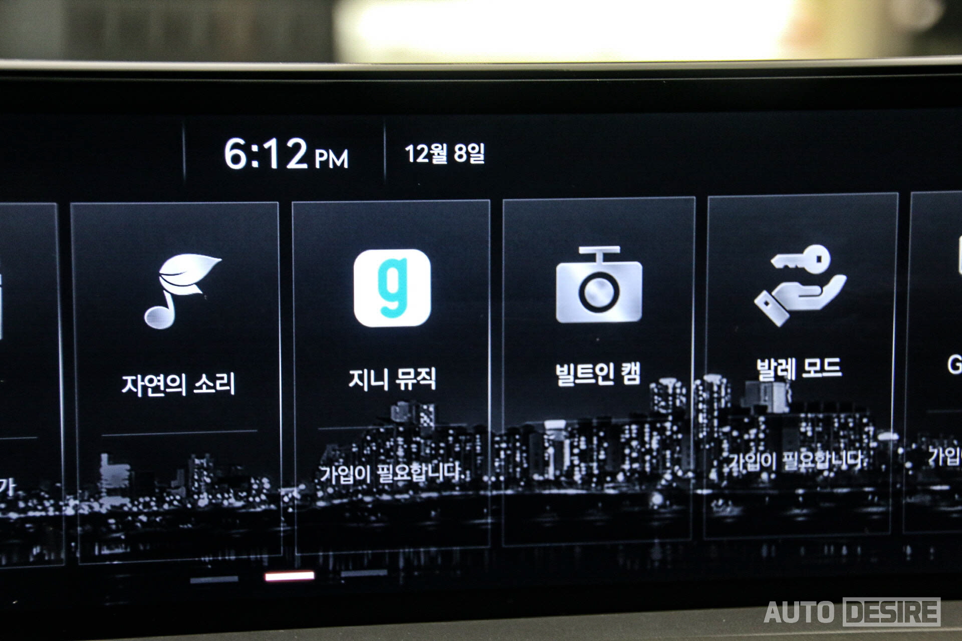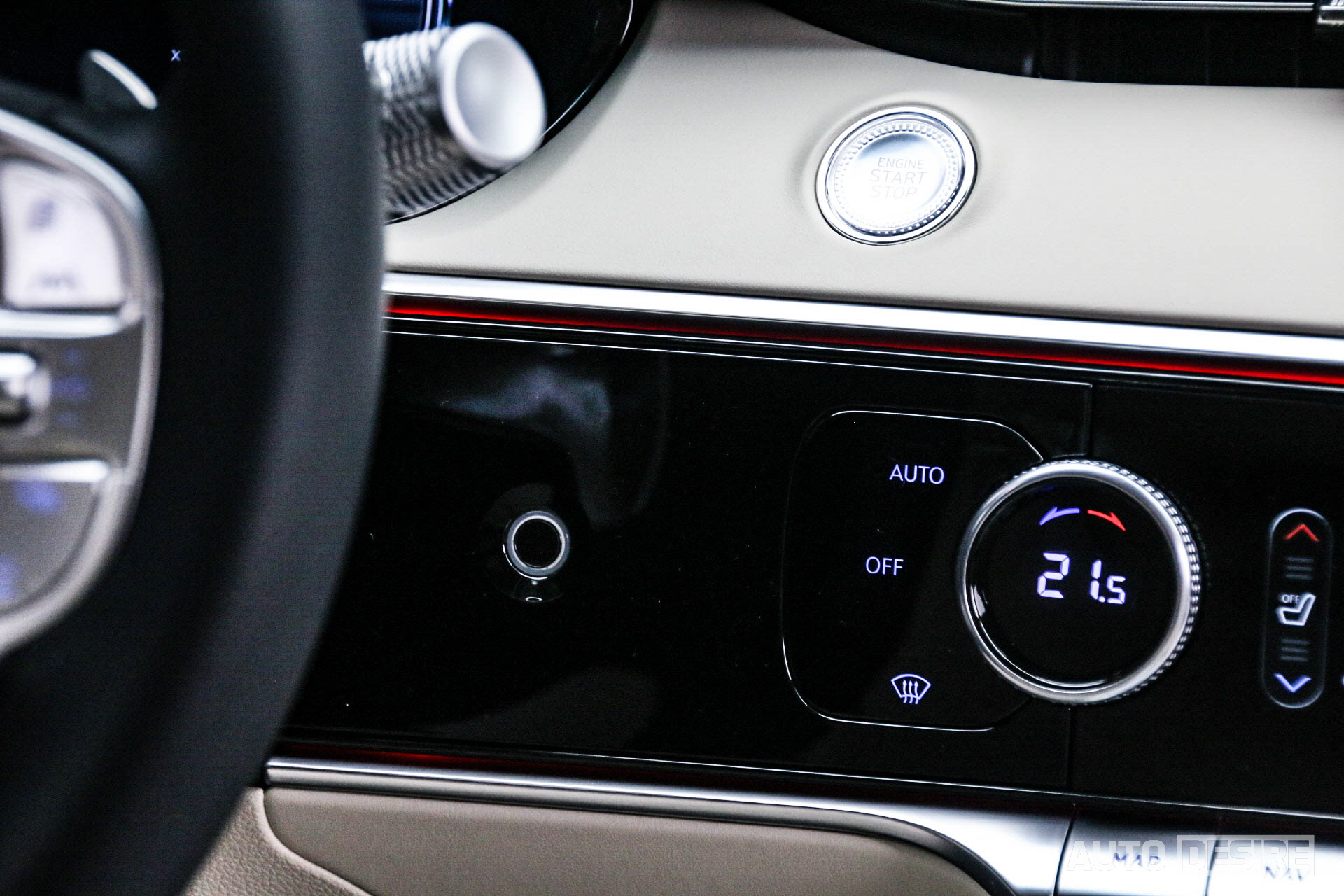 신규 편의 사양, 기술로는 지문 인식 연동 제네시스 카페이, 어드밴스드 후석 승객 알림, 별도 블루투스 연결 없이 인포 시스템 자체 내에서 사용 가능한 지니 뮤직 서비스 등이 있으나 서비스 가입 및 개인 설정이 필요한 부분이라 전시차로는 사용하는데 제약이 있는 점은 양해를 바란다. 버튼을 줄이고 터치 패널을 넓게 적용한 공조 컨트롤러는 시작적인 요소도 마음에 들며 터치 반응도 준수한 편. 이중 필터 적용으로 미세먼지도 확실하게 차단해 주고, 제네시스 최초로 애프터 블로우를 적용해 시동을 끈 후에도 내부에 남은 습기를 건조해 불쾌한 냄새, 곰팡이가 생기는 것을 방지해 준다고 한다.