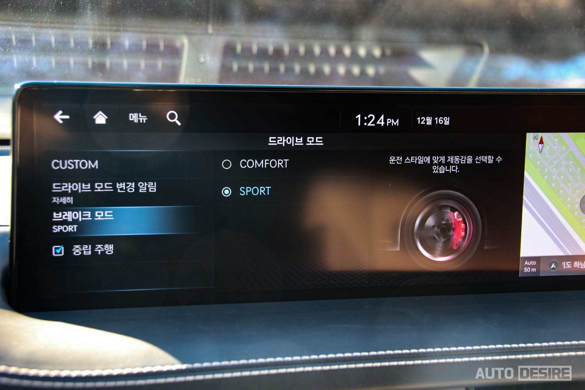 재밌는 점은 주행 모드에 따라 엔진, 서스펜션, 스티어링 시스템 세팅을 바꿀 수 있는 것 외에 브레이크 제동감도 컴포트/스포츠 중 운전자에게 맞는 걸로 선택할 수 있다는 점. 더 즉각적이고 확실한 제동감을 원한다면 스포츠로 세팅하길 추천한다. 3.5 가솔린 터보에는 전륜 4P 브레이크 캘리퍼도 적용된다.