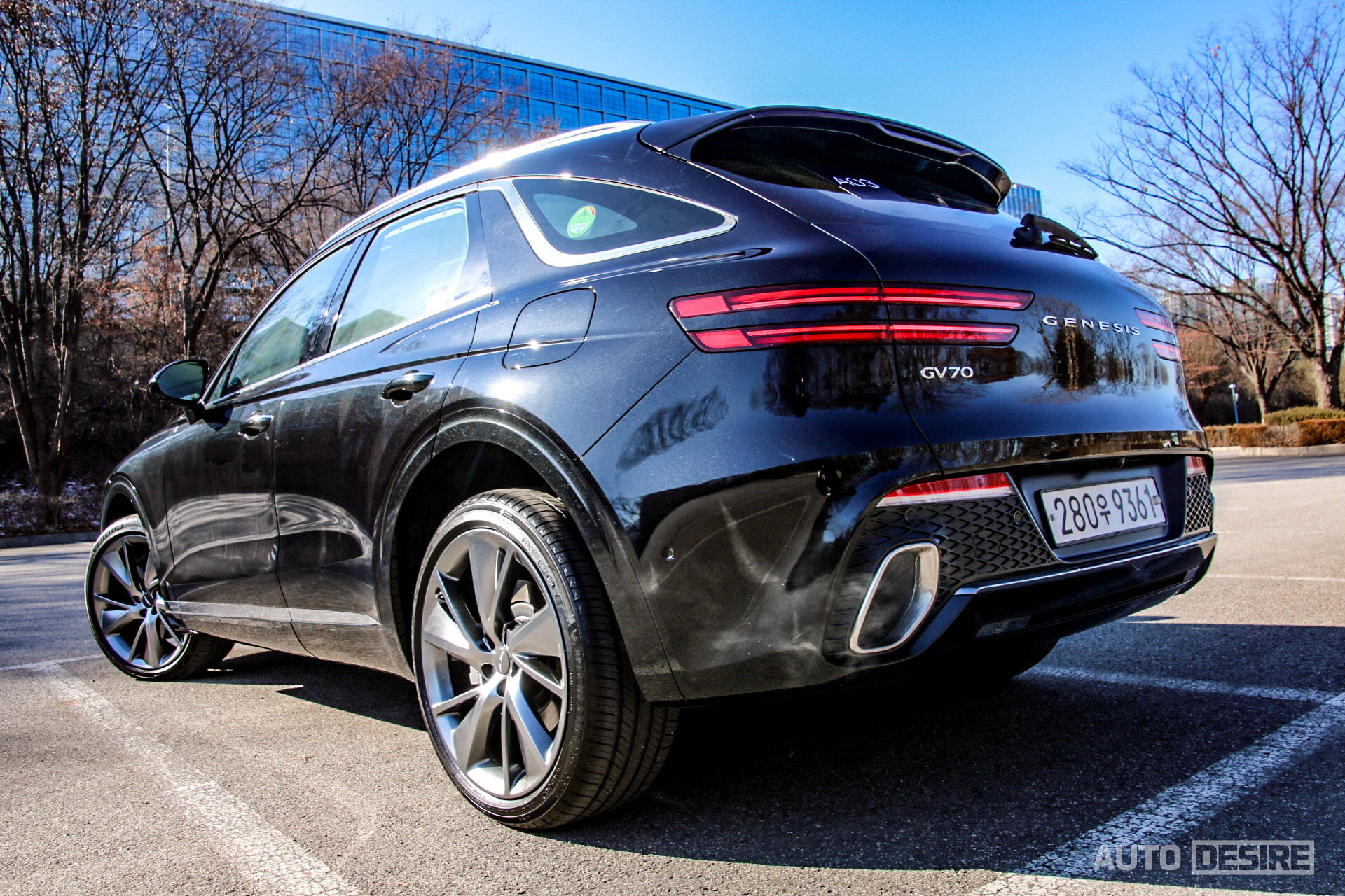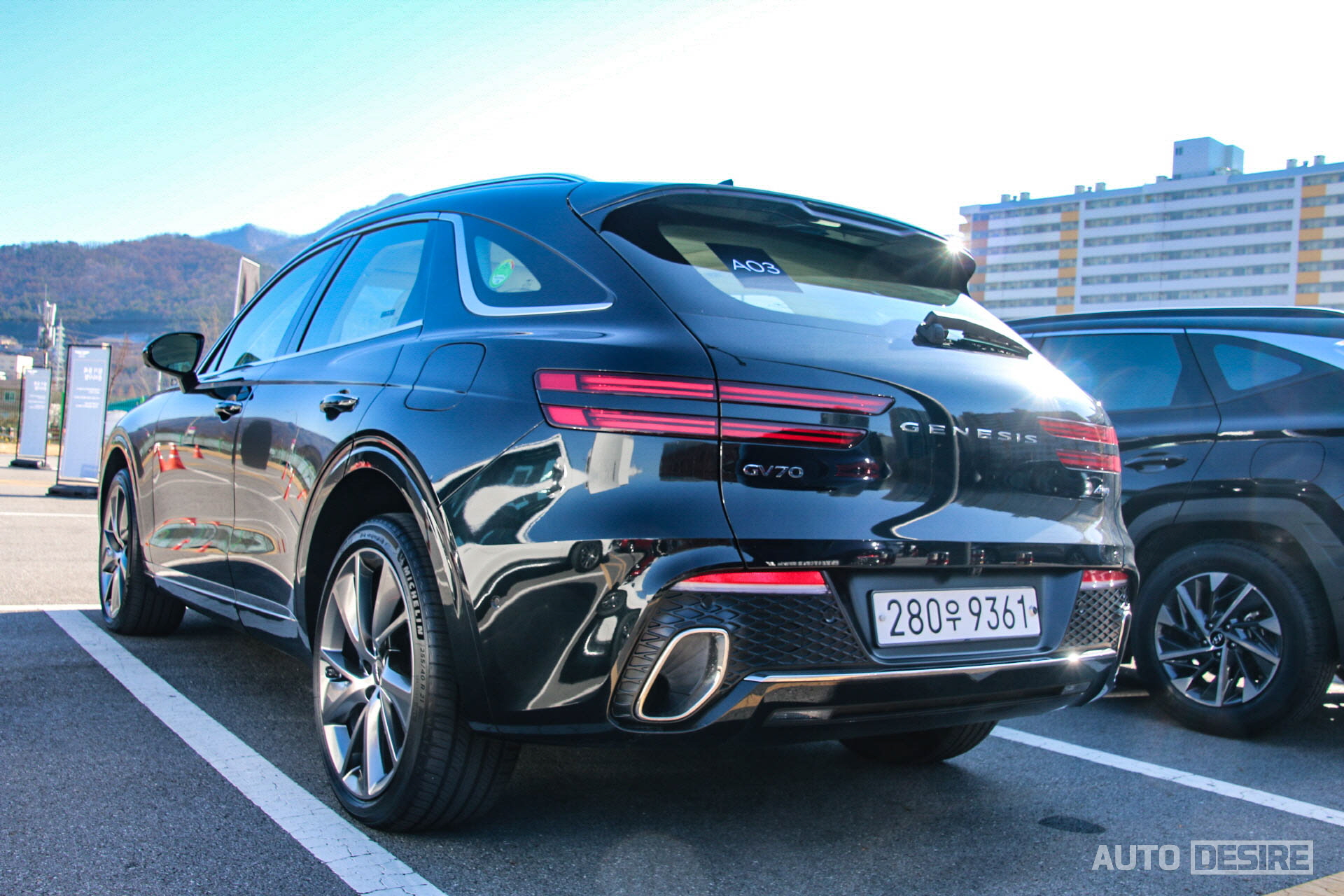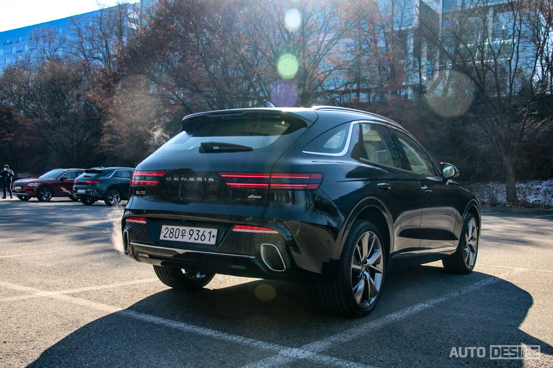 온라인상으로 이미지를 통해 이르게 살펴봤고, 지난주 제네시스 수지에서 실물로 본 외관의 모습은 첫인상부터 굉장히 마음에 들었고, 또 이제 제법 눈에 익었다. 쿼드램프와 G-매트릭스 메시 패턴의 크레스트 그릴, 파라볼릭 라인 등 다른 모델들과 공유하는 제네시스의 디자인 아이덴티티를 담아낸 덕도 있겠지만, 전체적인 비율도 탄탄하게 잘 잡혀있다. 윗급인 GV80이 강인하고 단단한 느낌이 강했다면 GV70은 그보다는 부드럽고 볼륨감이 잘 살아나며 차급에 맞게 더 스포티한 느낌이다.