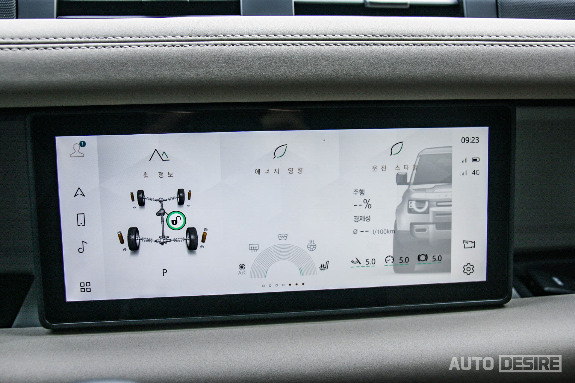 마냥 투박하고 딱 필요한 기능들만 있었던 전 세대 모델에 비해 신형 디펜더의 실내는 첨단 사양들도 많이 더해지고, 세련된 모습을 보여주면서도 세세한 부분들을 살펴보면 오프로드 SUV에 필요한 부분, 약간은 투박한 감성, 충분한 수납 공간과 기능들로 실용적인 부분들도 챙겨두었다. 내비게이션은 국내 고객 환경에 대응에 T맵 내비게이션을 제공하며, 풀 디지털 클러스터와 함께 연동해 중앙으로 시선을 따로 옮기지 않아도 주행 중에 이동 경로를 쉽게 확인할 수 있게 했다.
