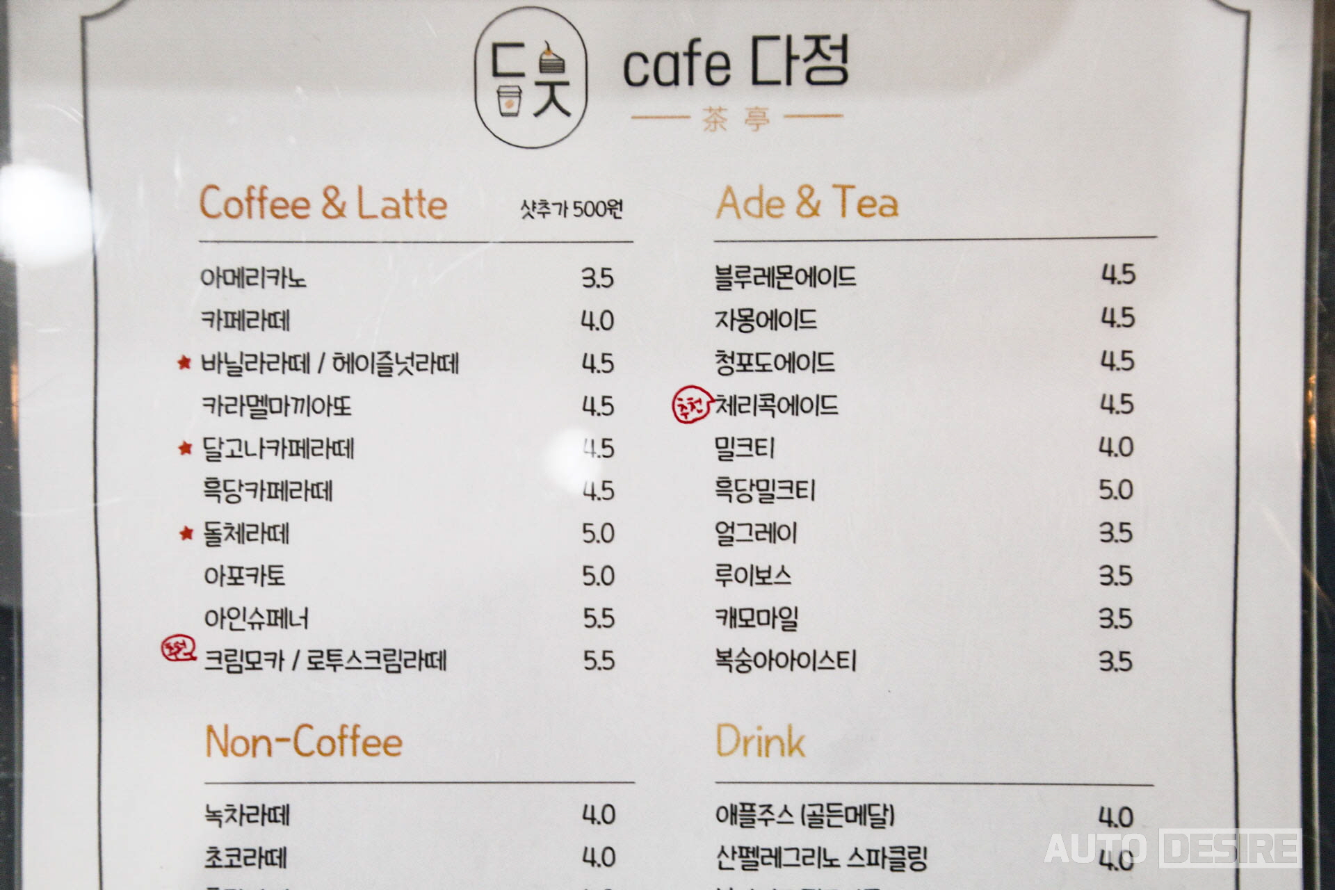 지금은 유행이 사그라들었지만 믹스커피를 팔이 빠져라 돌려서 만드는 달고나커피와 함께, 진짜 달고나를 따로 만들어서 넣은 카페 다정 스타일의 달고나라떼도 2020년 상반기에 인기가 참 좋았죠? 달콤 쌉싸름, 바삭거리는 달고나를 젓지 않은 상태에서 따로 먹어도 맛있지만 우유에 서서히 녹아들기 시작하면 빨대로 샥샥 돌려서 푹 녹여 먹어도 훨씬 더 진하고 달달해진 맛도 카페 다정 달고나카페라떼의 매력이죠. 개인적으로 지금도 카페 다정에서 제일 좋아하는 메뉴입니다.