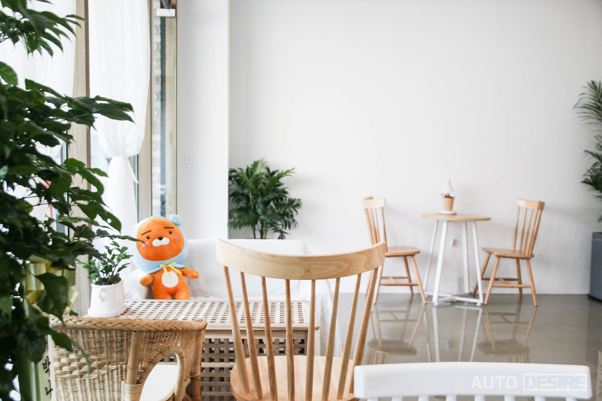 지금은 사회적거리두기 2.5단계가 더 연장되면서 매장 내 이용은 불가능하지만, 리모델링은 거친 인테리어는 화이트 앤 우드 톤으로 깔끔하고 쾌적한 분위기를 전해주고, 귀여운 라이언 인형도 만나실 수 있습니다. 차후 사회적거리두기 단계가 내려가게 돼서 매장 내 이용이 가능하게 되면 반려견과 함께 동반도 가능합니다.