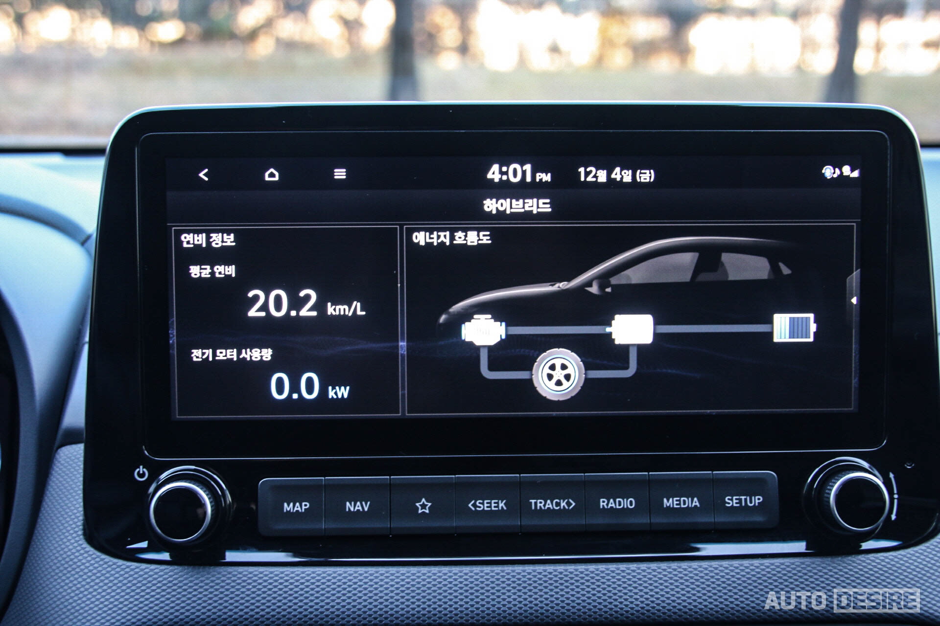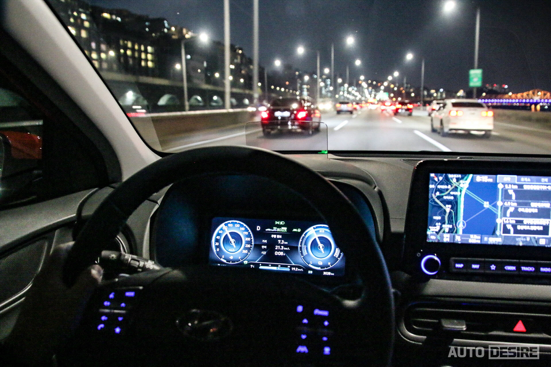 덕분에 파워트레인의 성능, 효율 면에서는 기존 코나 하이브리드와 동일하고, 수치 상 최고출력이 그렇게 높은 편은 아니지만 초반에 모터가 보조해 주는 덕분에 가속감도 꽤 경쾌하며 답답함 없는 주행이 가능하다. 다만 20년형 코나 하이브리드는 8월 말 경에 시승을 했었고, 이번 더 뉴 코나 하이브리드는 12월 초, 적잖이 추운 겨울 날씨에 시승을 해서인지 기온에 따른 성능 차이가 나타나는 한계가 있었다.
