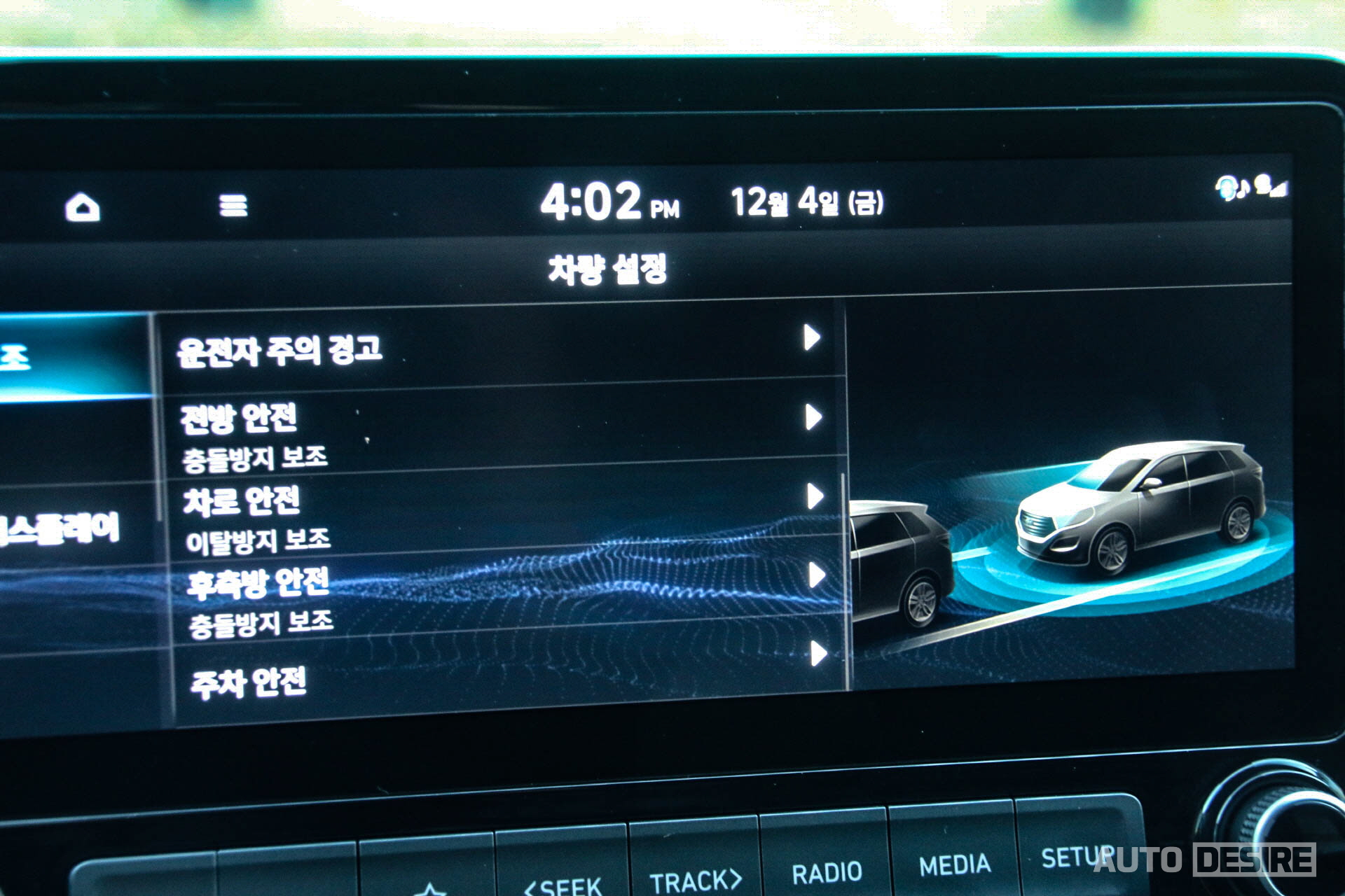 마지막으로 안전 사양은 충분히 더 보강되어서 전방 충돌방지 보조, 차로 유지 보조, 차로 이탈방지 보조, 운전자 주의 경고는 기본 적용, 시승차와 같은 인스퍼레이션 트림에는 고속도로 주행 보조, 정차 후 재출발 및 곡선로, 안전구간 자동 감속이 가능한 스마트 크루즈 컨트롤, 후측방 충돌방지 보조, 후방 교차 충돌 경고, 안전 하차 경고, 하이빔 보조까지 동급에서는 최고 수준으로 적용된다. 사각지대 모니터까진 없지만 아직까지 같은 급의 다른 차량에도 적용되지는 않은 만큼 다음 세대를 기다려봐야 할 것 같다.