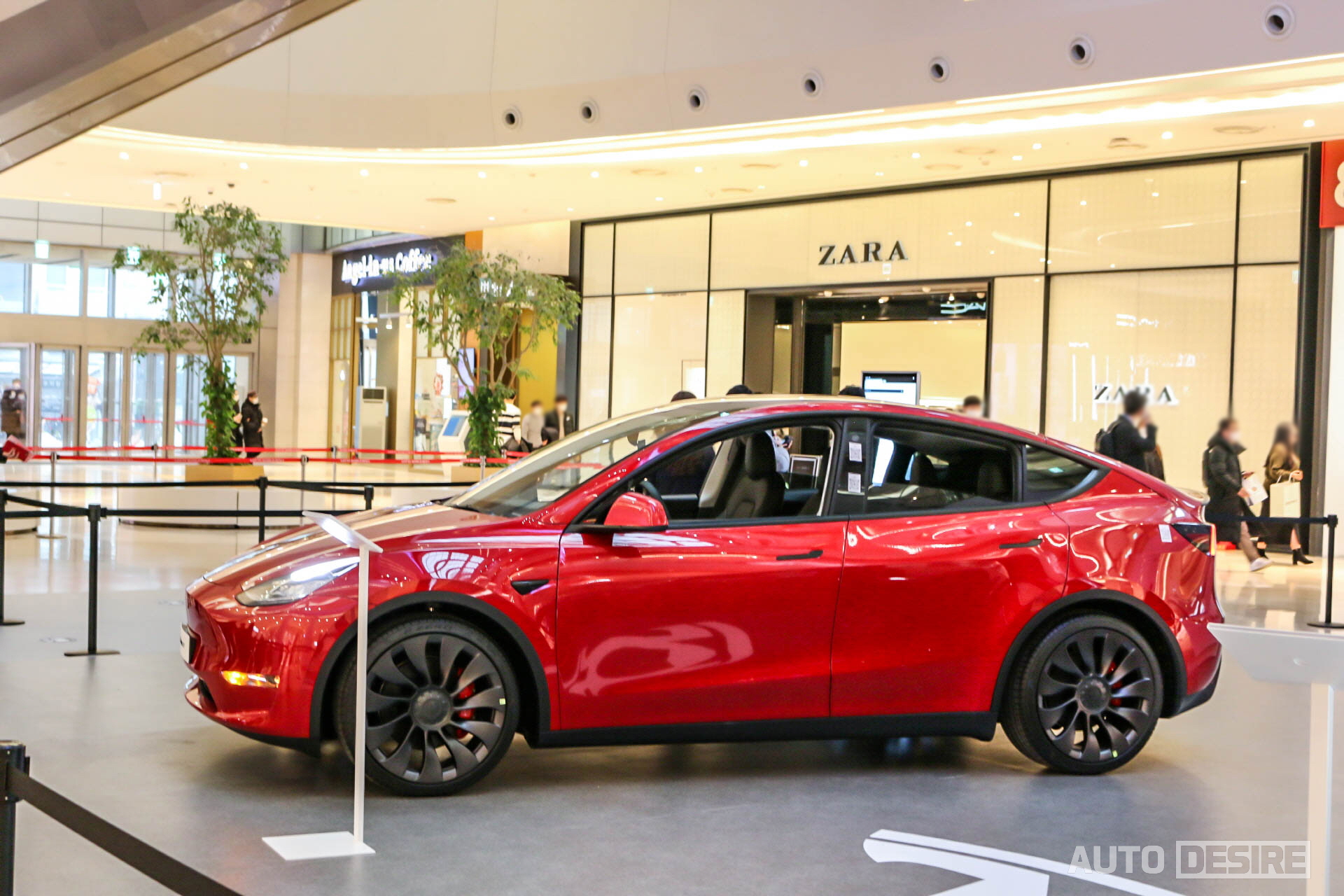 테슬라 코리아에서 올해 1분기 중으로 출시할 예정인 크로스오버 전기차 '모델 Y'를 1월 13일부터 국내에 공개하고 롯데백화점 영등포점과 잠실 롯데월드 몰에 테슬라 갤러리를 오픈, 고객들이 실제 전시차를 미리 살펴볼 수 있도록 했다. 모델 S, X, 3는 기존 테슬라 전시장에서도 만나볼 수 있지만 모델 Y는 이번 테슬라 갤러리에서만 실물을 만나볼 수 있기에, 지난 금요일 직접 잠실 롯데월드몰로 찾아가 모델 Y의 실물을 만나보고 왔다.