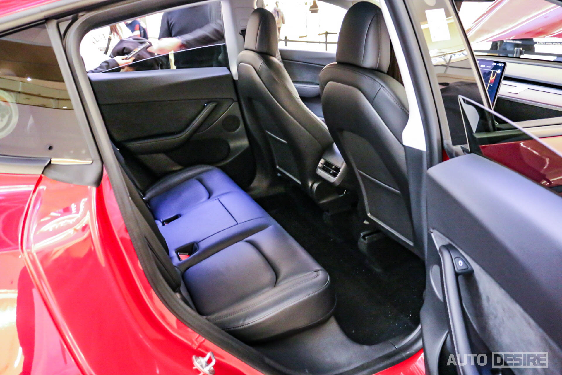 모델 3보다 더 넓어진 공간만큼, 2열 승객석은 모델 X 만큼은 아니어도 상당한 수준으로 넉넉한 공간을 확보했고 엄청나게 여유로운 레그룸에 높아진 전고로 머리 공간에 간섭도 없다. 대형 SUV인 BMW X5나 렉서스 RX와 비교해도 어깨 공간은 좁지만, 헤드룸과 레그룸 모두 더 넓다고 한다. 승객을 위한 2열 송풍구와 USB-C 타입 충전 포트가 센터 콘솔 뒤 편에 위치해 있다. 다만 캘리포니아 태생의 특징인 건지(?) 2열 시트에는 열선 버튼이 존재하지 않는 것인데, 롱레인지/퍼포먼스 간에 차이인지 아니면 이 역시 1열의 스크린에서만 조작이 가능한지 차후 정식 출시 이후에 확인해야 할 것 같다.