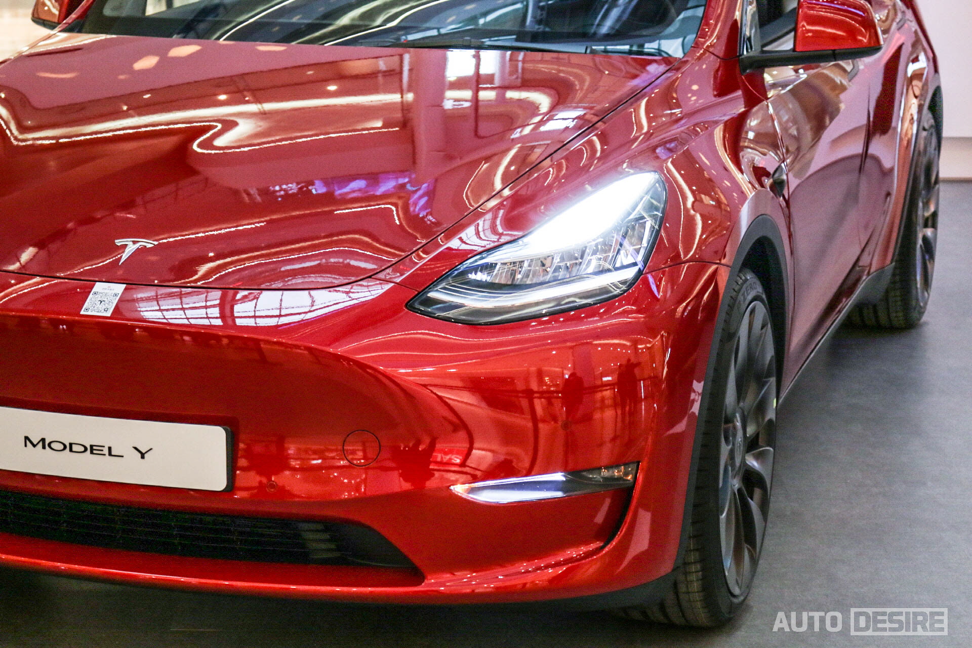 사진으로도 이미 많이 봐왔지만 실물 모습 역시 크게 다르지 않고, 모델 3의 키를 키운 듯한 모습으로 비율을 제외하면 세세한 디자인 요소, 디테일들이 모델 3와 큰 차이는 없다. 테슬라 모델 3의 스타일을 좋아하면서, 실내 공간이 더 넓고 여유로운 차를 원했던 이들이라면 더할 나위 없을 것 같다. 헤드램프는 MFR 타입의 LED 램프가 적용되어 있다.