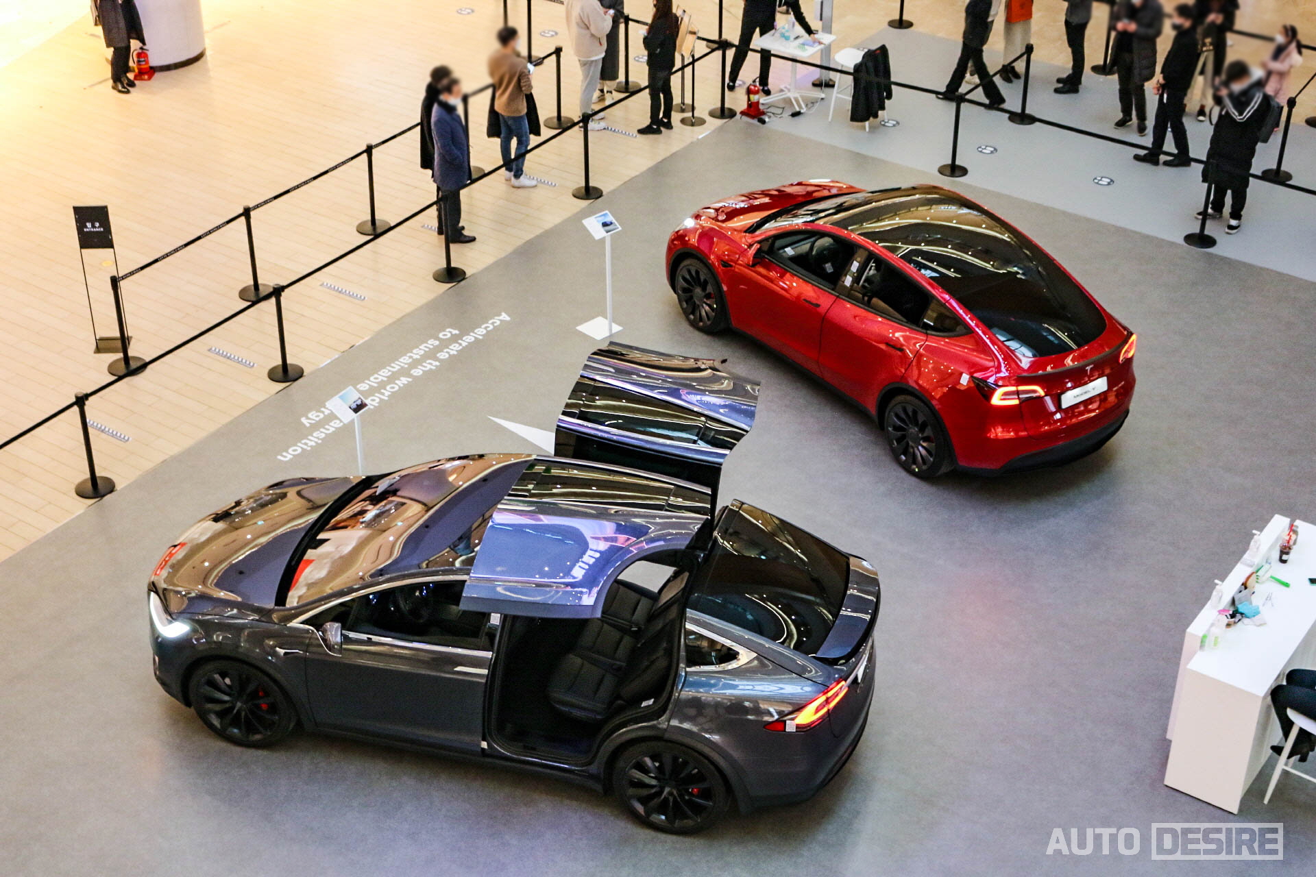 코로나19의 여파 속에도 모델 Y를 살펴보려는 고객들의 관심이 어마어마했는데, 현장에서 너무 많은 인원이 몰리는 것을 방지하기 위해 각 차수별 30분 간격으로 15명씩 입장, 모바일 앱 QR코드를 통해 현장에서 대기번호를 받았는데 비교적 사람이 적을 거라 생각하고 금요일 오후에 방문했음에도 오후 4시 반에 대기번호를 받아 오후 6시 반이 되어서야 입장할 수 있었다. 그나마도 조금만 더 늦었다면 대기번호 접수가 마감될 뻔했다. (테슬라 갤러리에 방문할 계획이라면 오전 시간에 부지런히 방문하는 것을 추천한다.)