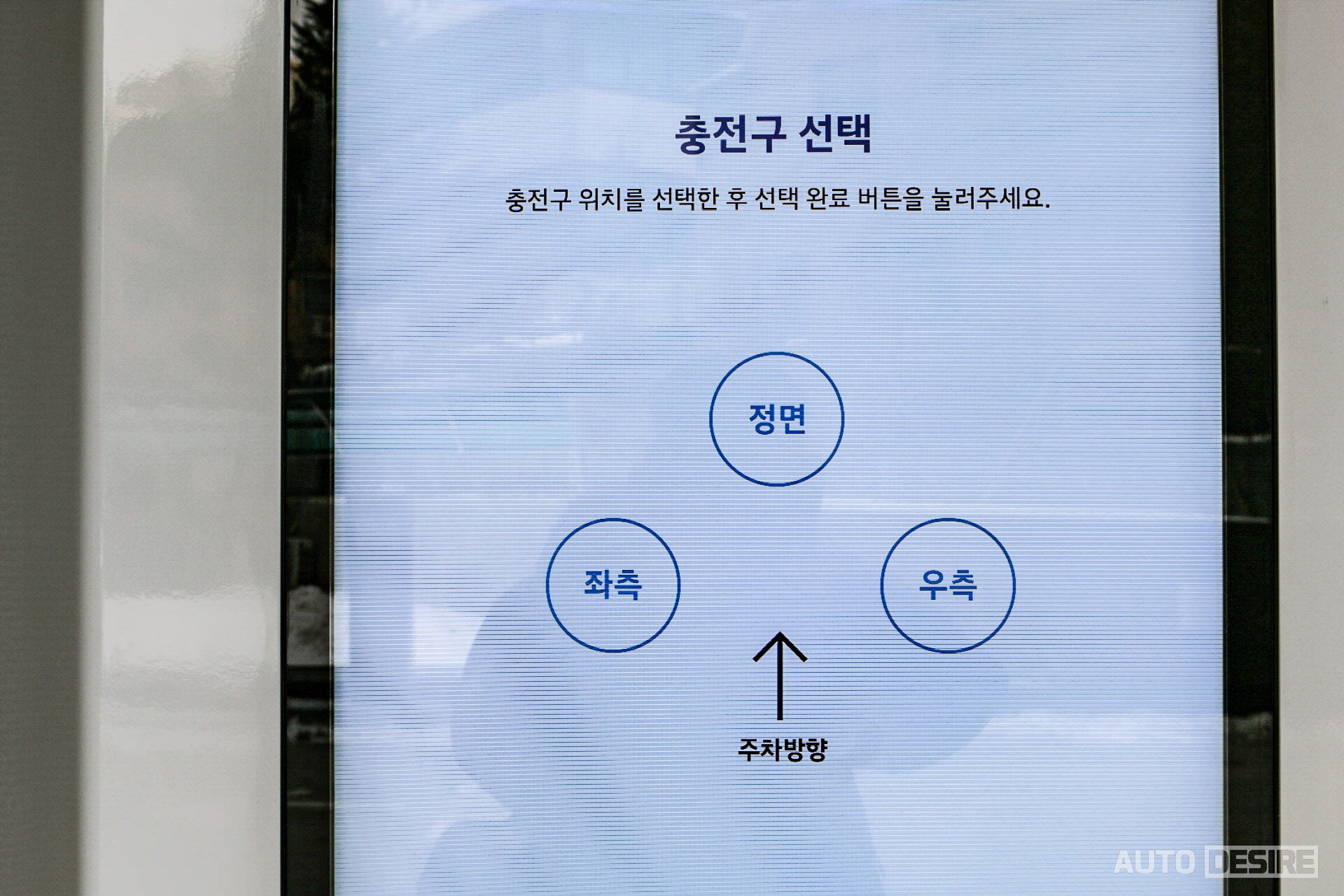 하이차저 초고속 충전기는 충전 속도가 빠르다는 것도 있지만, 고객의 충전 편의성을 위해 더 신경을 썼다는 점을 알 수 있는데, 각 차량마다 다른 충전구 위치를 배려해 고객 차량의 충전구 위치에 맞춰서 충전 커넥터/케이블 위치를 정면, 좌측, 우측으로 선택이 가능, 선택한 대로 위치가 변경되는 것을 확인할 수 있고,