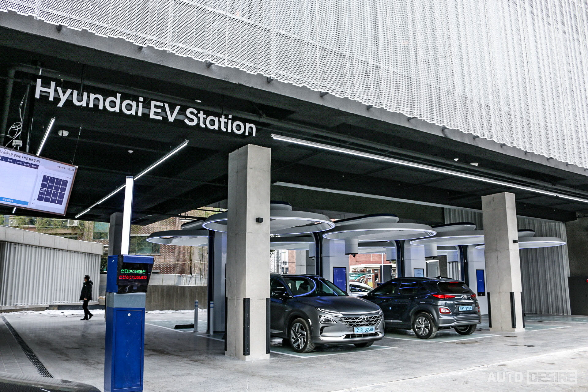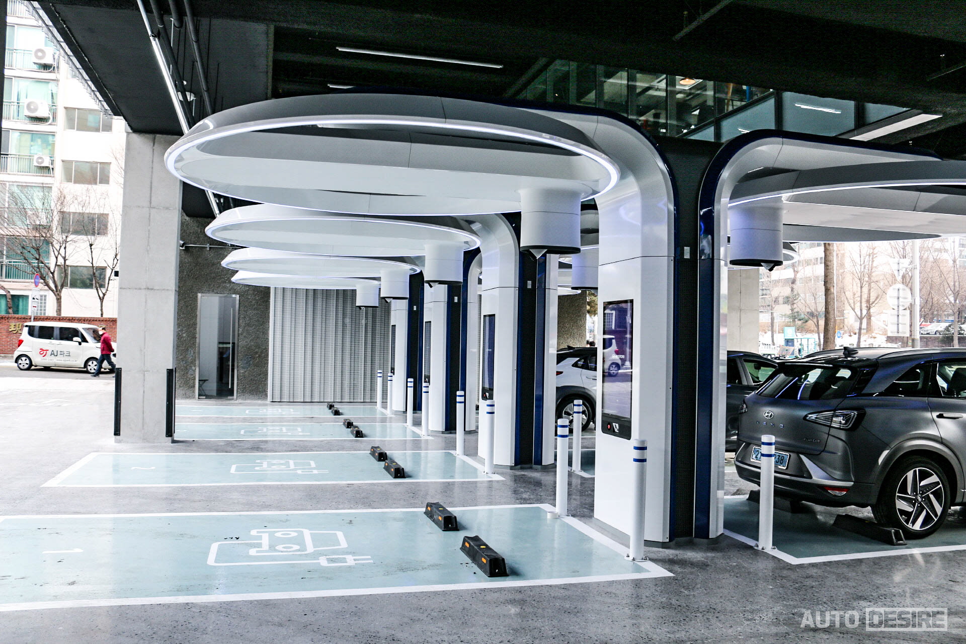 다만 전기차의 주행 성능, 배터리 효율의 더 발전과 함께 불편함 없는 전기차 이용을 위해서 전기차 인프라와 서비스, 언제든 편하게 이용할 수 있는 전기차 충전소가 함께 받쳐줘야 하는 것이 기본! 현대자동차에서 350kW 급 초고속 충전 설비인 ‘하이 차저’ 2기를 현대 모터스튜디오 고양에 지난 2019년에 설치한 것에 이어, 도심지 밀집 지역에서 전기차 고객들이 초고속 충전 설비를 편하게 이용할 수 있는 공간, ‘현대 EV 스테이션 강동’을 1월 21일 서울 강동구 길동에 오픈했다.
