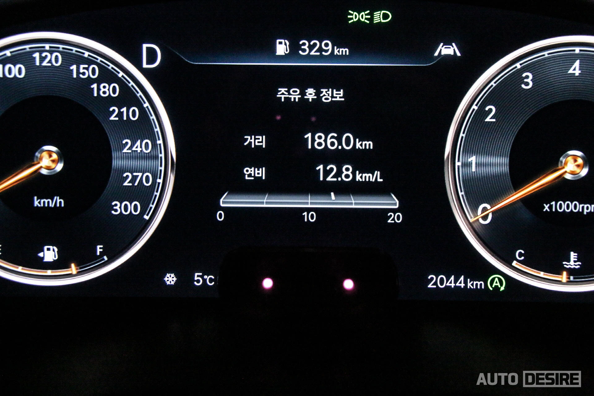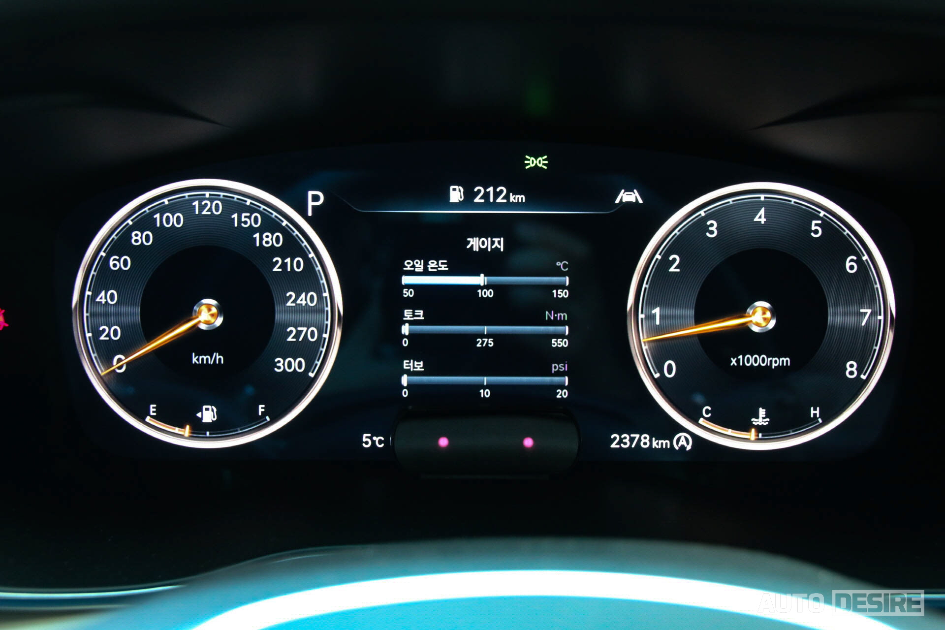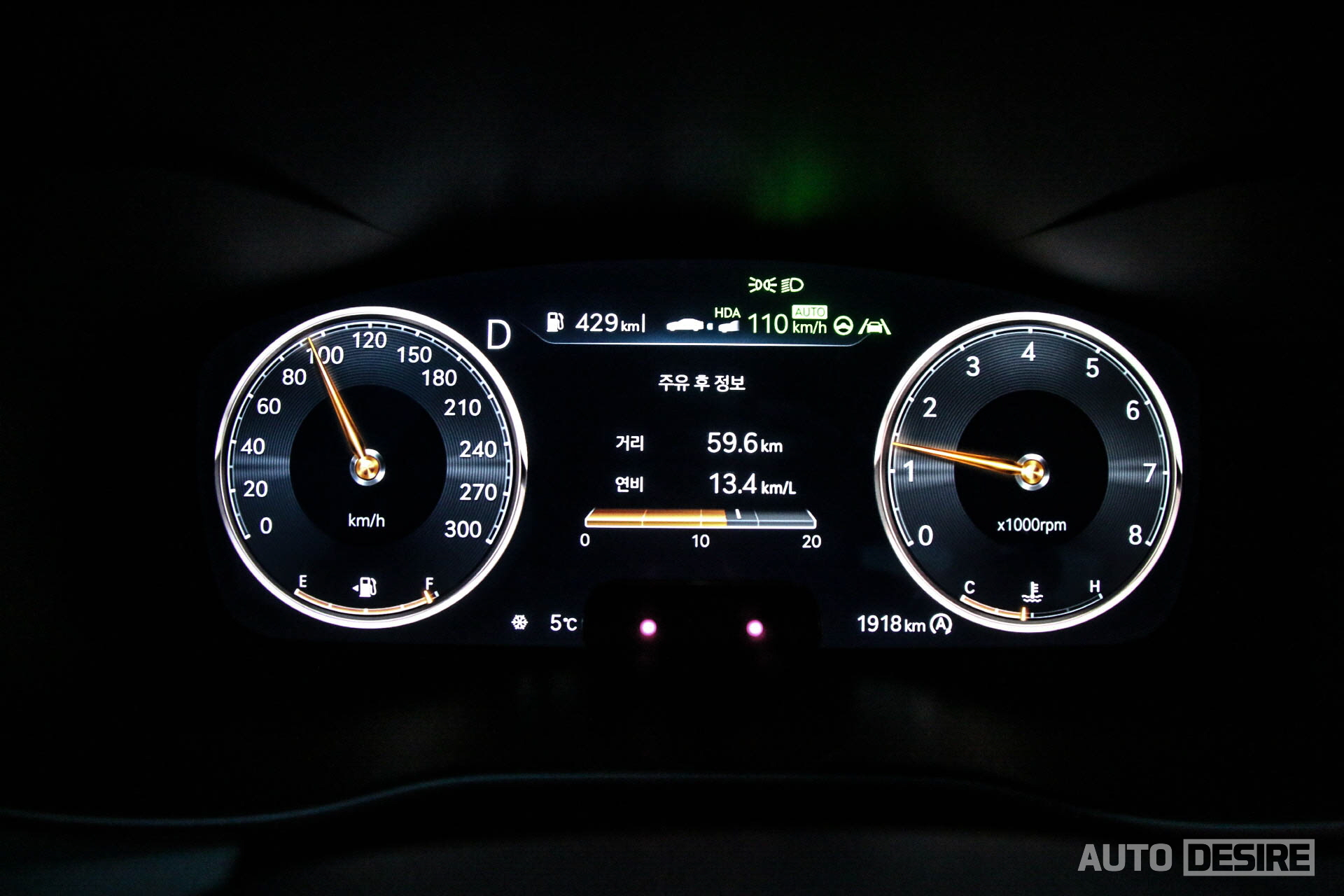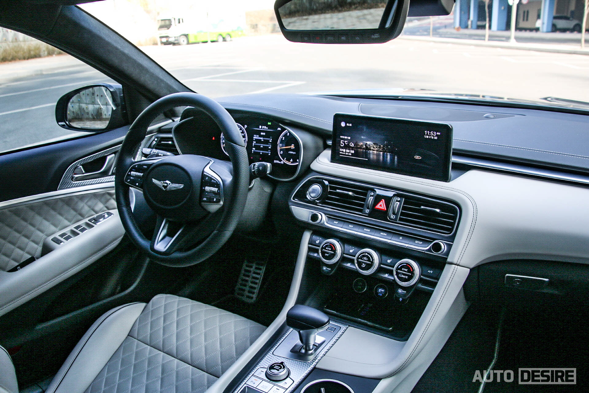 3D 타입의 12.3인치 디지털 클러스터는 앞서 말했듯 G80, GV80, GV70 등과 맞춰서 주행 모드별 그래픽, 컬러를 새롭게 변경했고 후측방 모니터도 적용되어 차선 변경 시 사각지대를 확실하게 확인할 수 있다. 상당히 과감한 스타일이었던 기존 클러스터 그래픽에 비하면 조금 보수적이고 클래식한 느낌이 들기도 한다.
