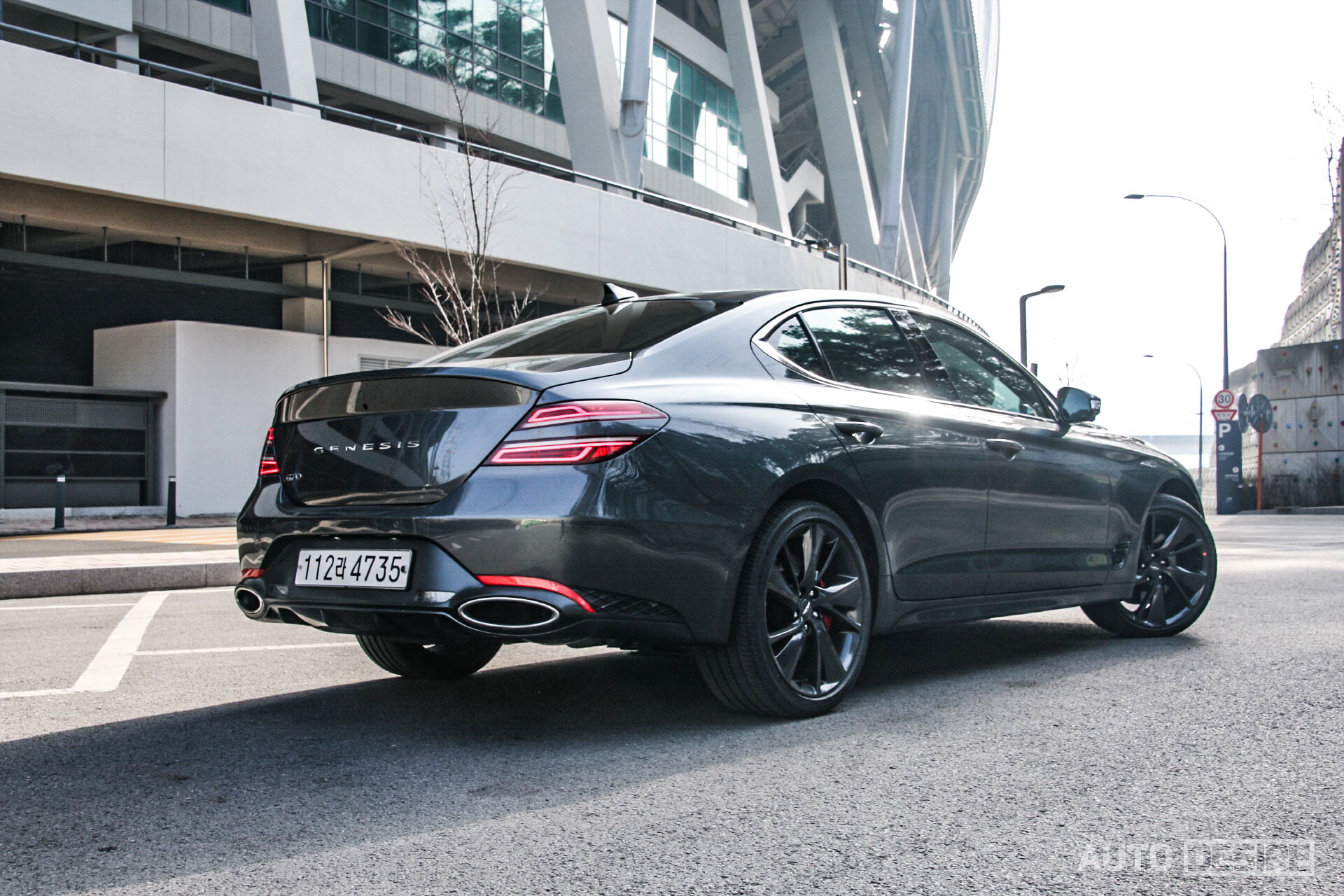 리어 디퓨저와 대형 듀얼 머플러 팁은 3.3 터보 모델에는 기본, 2.0 터보에는 스포츠 패키지를 선택하면 적용된다. 더 커진 사이즈의 머플러 팁은 조금 과해 보이는 감도 있지만, 고성능 세단임을 표현하는 데에는 좋은 수단이 되는 것 같기도.