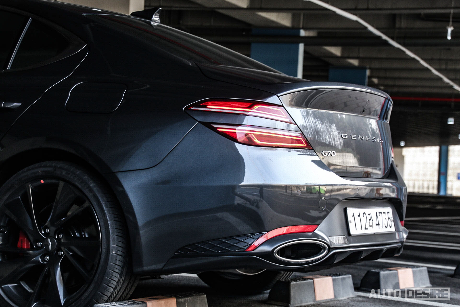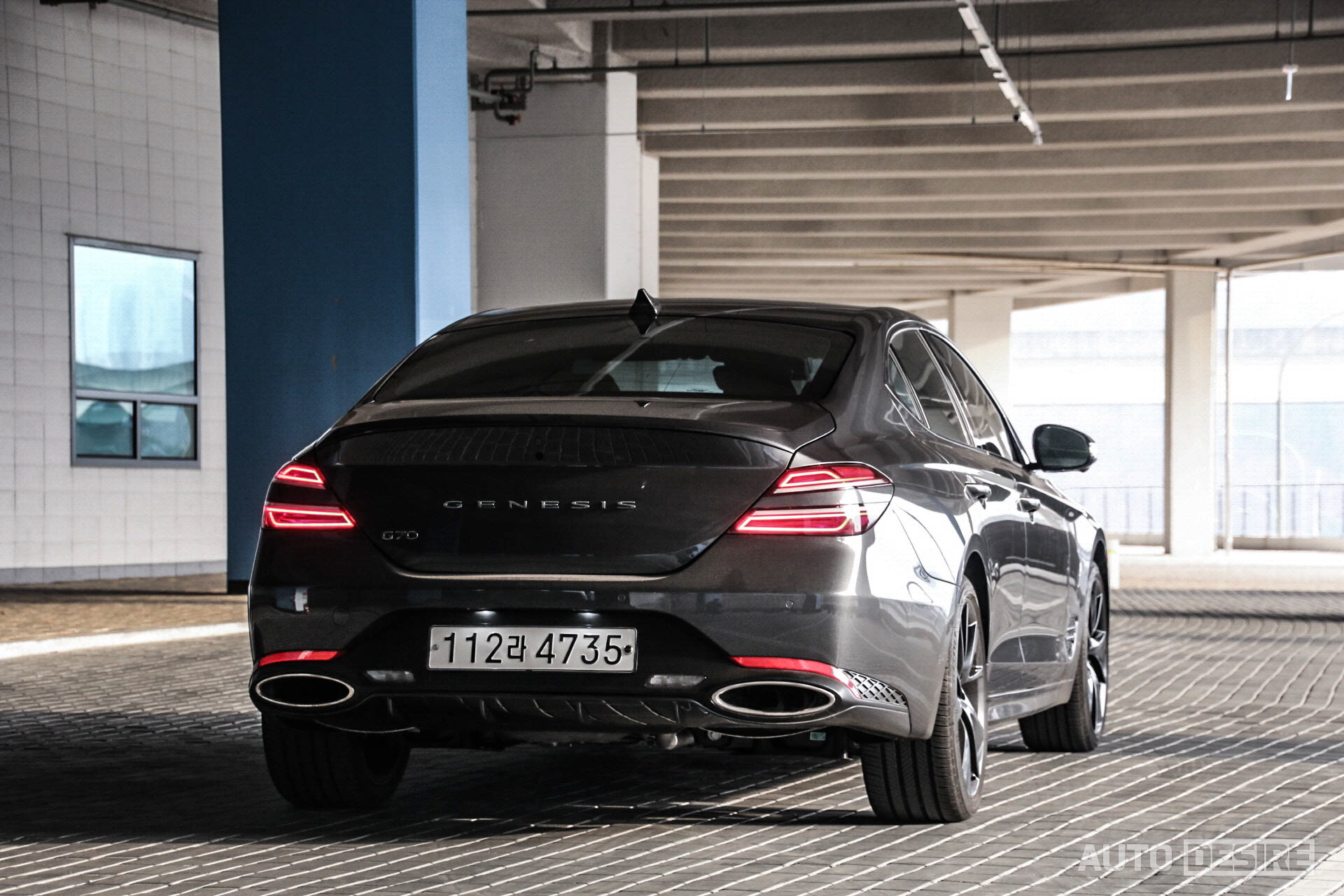 뒷모습에서도 리어 램프를 쿼드 타입으로 변경하고, 트렁크 리드 중앙에 윙 엠블럼 대신 GENESIS 레터링을, 번호판은 범퍼로 옮기면서 다른 제네시스 세단들과 동일한 구성으로 변경했다. 리어 쿼드 램프가 트렁크 리드 안쪽까지 더 길게 이어졌으면 더 자연스럽고 존재감도 강하지 않았을까 싶기는 하지만, 트렁크 금형을 크게 변경하지 않는 선에서 진행해야 하는 한계가 있었을 것 같고 짧은 쿼드 램프도 계속해서 보면 적당한 긴장감을 주는 것이 G70에 더 잘 어울리는 것 같기도 하다.