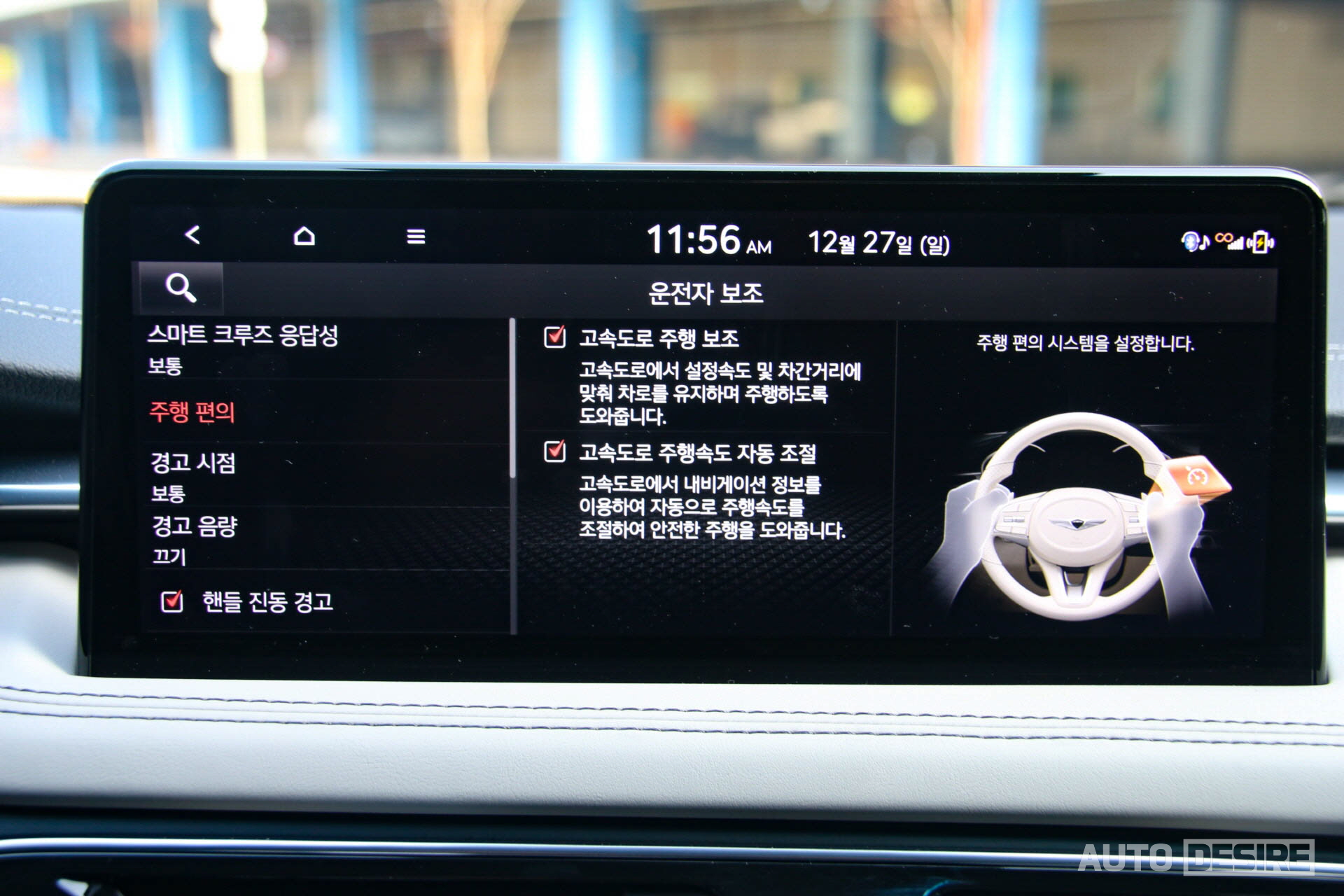 다이나믹한 퍼포먼스를 보여주는 스포츠 세단이라고 해도 매일매일, 일상에서는 편해야 하는 법. 다른 제네시스 라인업 차량들이 그러하듯 더 뉴 G70 역시 운전자를 위한 주행 보조, 안전 사양들이 대거 적용되었다. 차선 변경 보조까지 되지는 않지만 자동차 전용도로까지 지원하는 고속도로 주행 보조가 적용되어서 장거리 주행을 할 때에도 부담이 크지 않고,