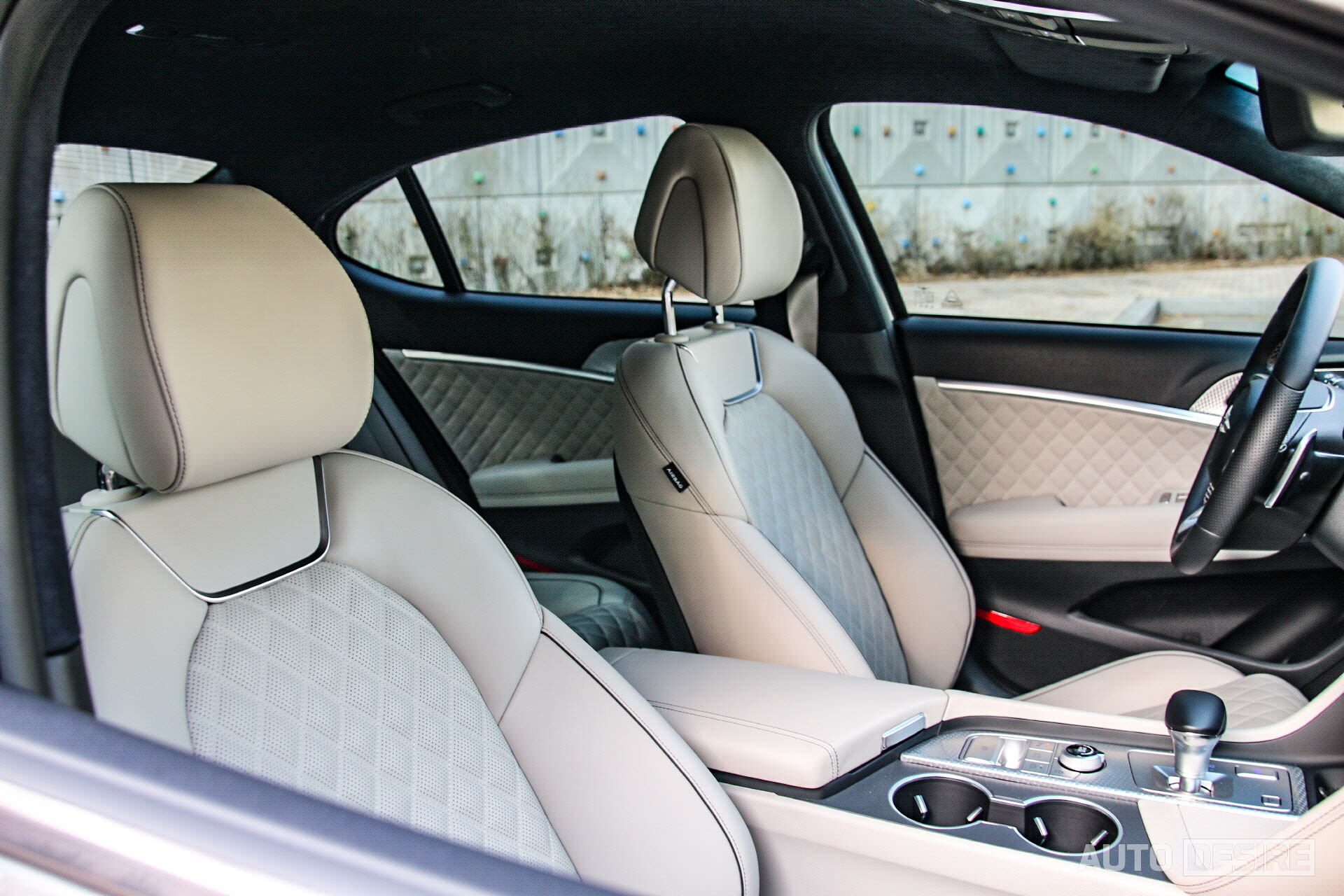 필자가 탄 시승차는 옵시디언 블랙/샌드스톰 그레이 투톤에 스포츠 디자인 셀렉션 인테리어 적용으로 퀼팅 패턴이 적용된 나파가죽 시트와 도어 트림부에도 퀼팅 패턴을 적용, 그 외 크래시 패드 하단 부분과 센터콘솔을 비롯한 곳곳에 밝은 샌드스톰 그레이 색상이 적용되어, 관리는 좀 힘들 수도 있지만 화사하고 고급스러움이 느껴진다.