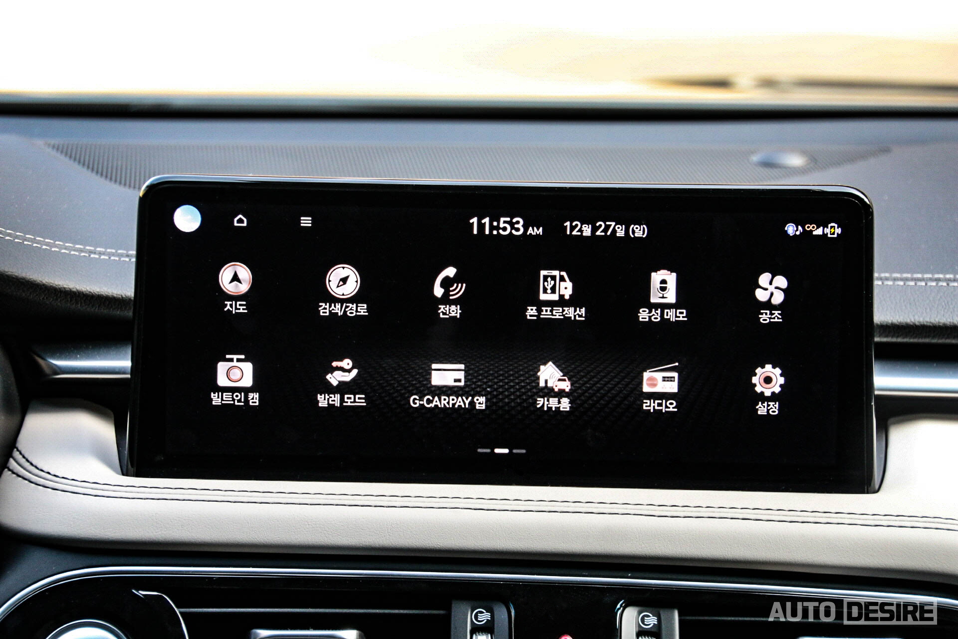 UI 컬러가 변경되고 화면이 더 확장된 인포테인먼트 시스템에는 제네시스 카페이, 발레모드, 카투홈, 빌트인 캠, 음성인식 차량 제어, 리모트 360도 뷰 등 편의 장비가 더해지고, 스마트폰 무선 충전 시스템은 충전 속도가 개선되어서 더 빠르게 충전이 가능하다. 다만 최근 추세와 다르게 룸 미러는 베젤리스 타입으로 변경되지 않고, 기존 하이패스 룸미러가 그대로 적용되는데, 기능적으로는 전혀 문제가 없으나 미적으로는 조금 아쉬울 수도 있는 부분. 구조적인 간섭이나 다른 문제가 있는 것일까?