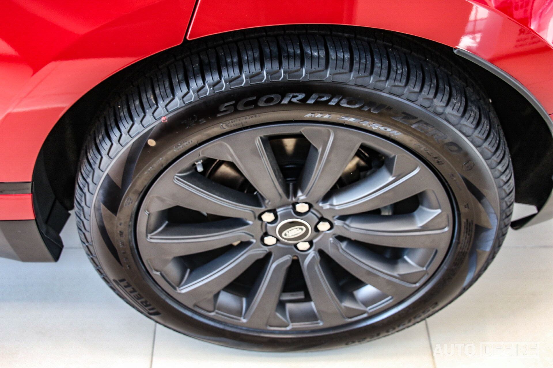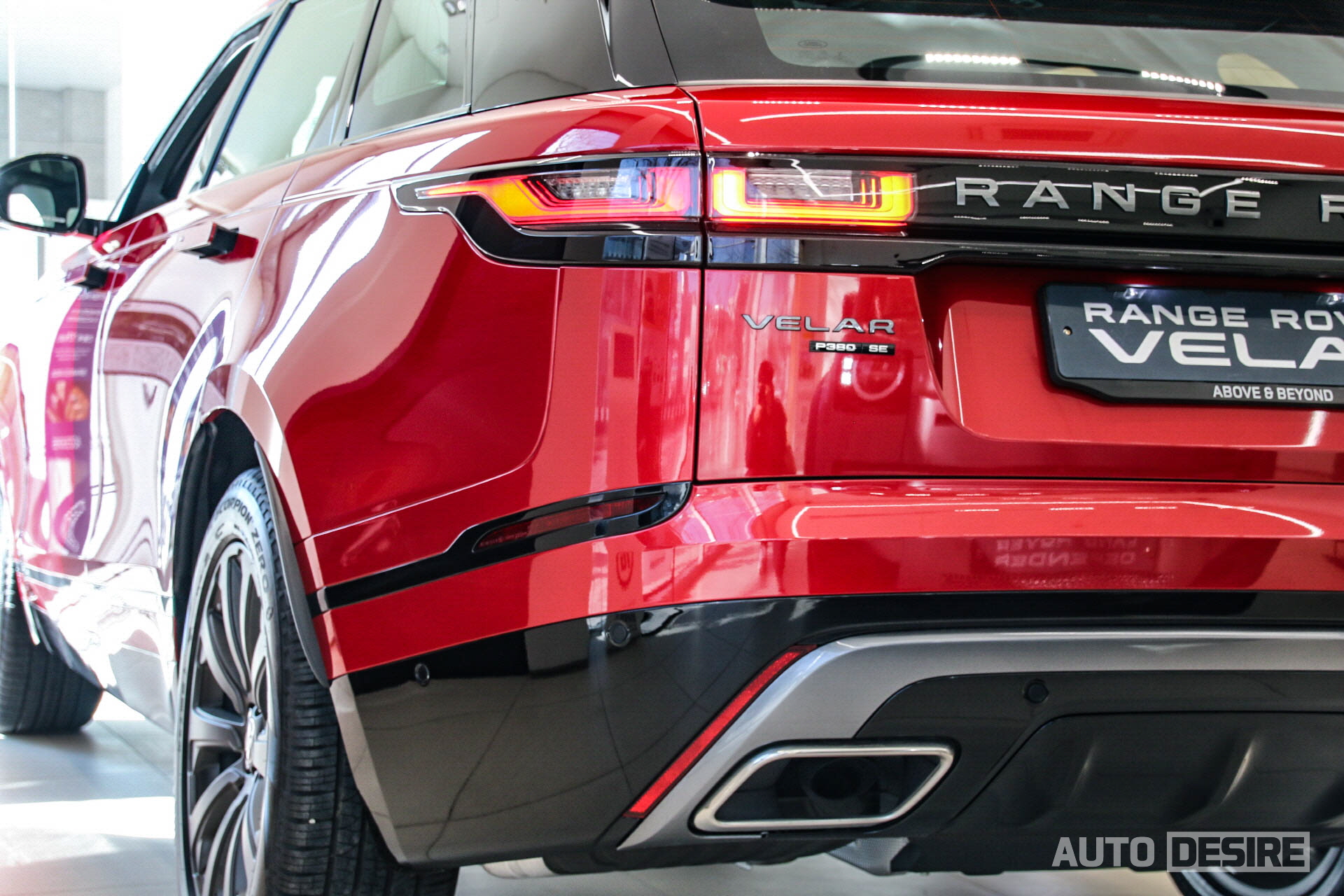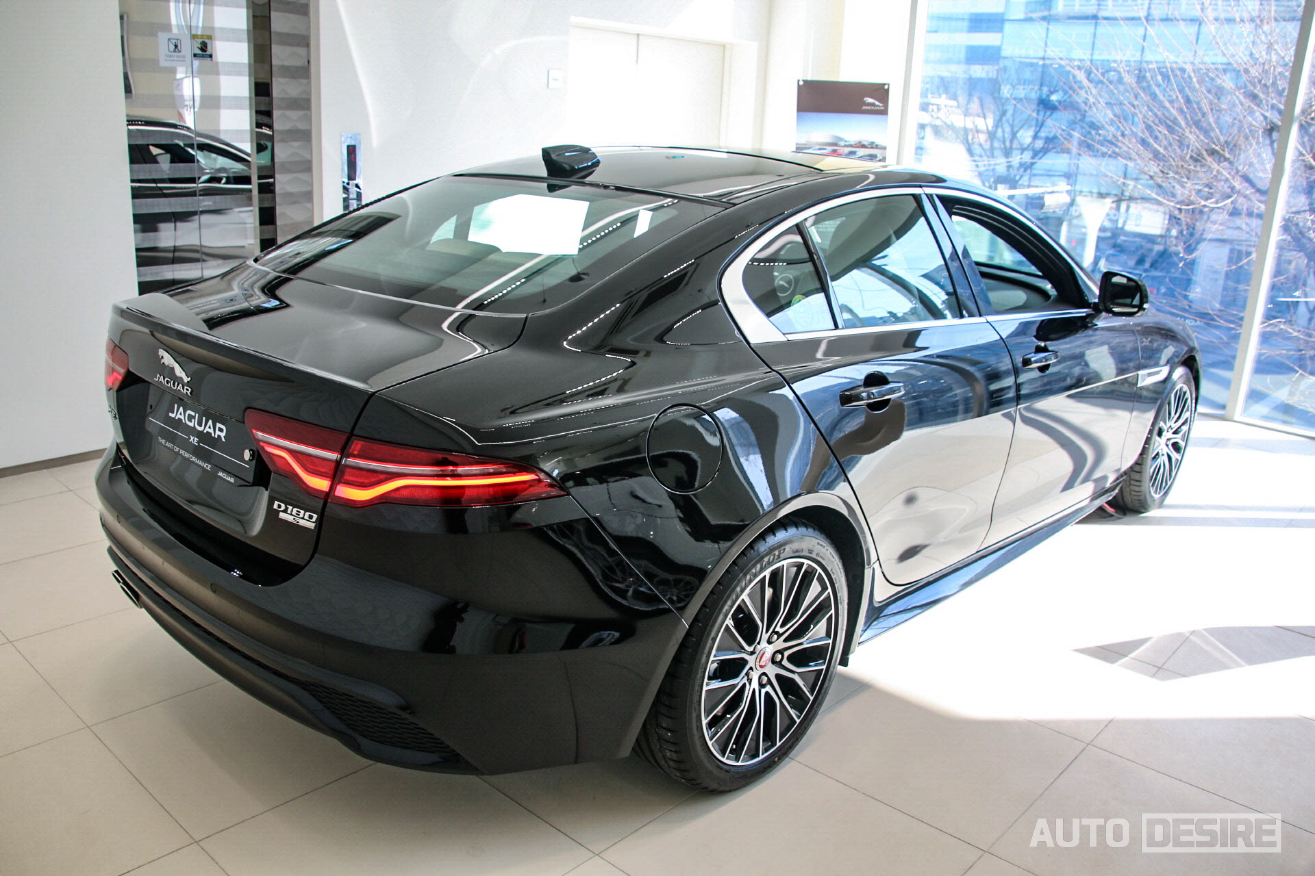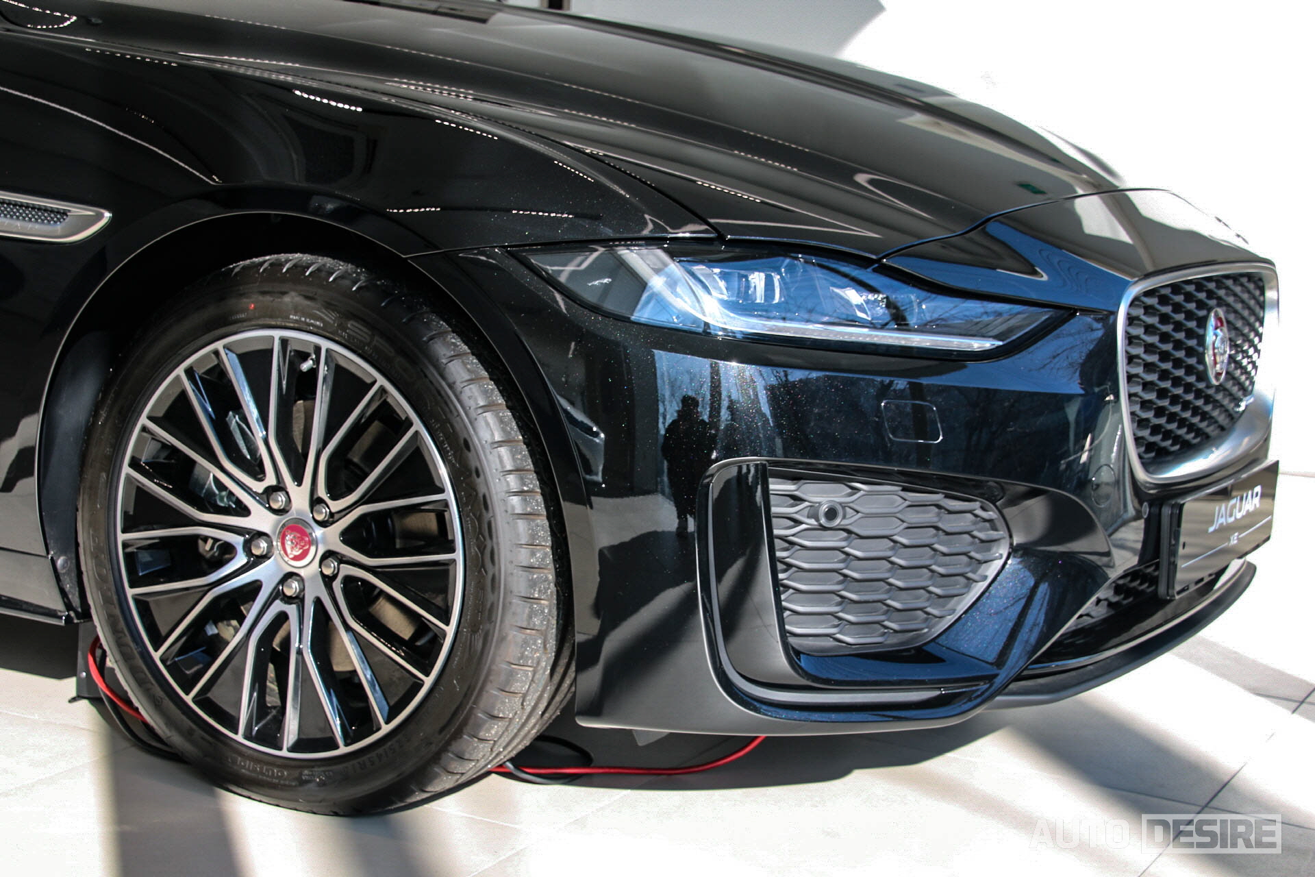 전시 차량 역시 R-Dynamic SE 모델로 사틴 다크 그레이 컬러의 20인치 휠과 스포티한 스타일의 바디킷, 코퍼 컬러 포인트가 적용되어 있었는데 디젤이 아닌 가솔린 P380 모델로 범퍼 하단에 듀얼 머플러 팁이 적용되어 있다.