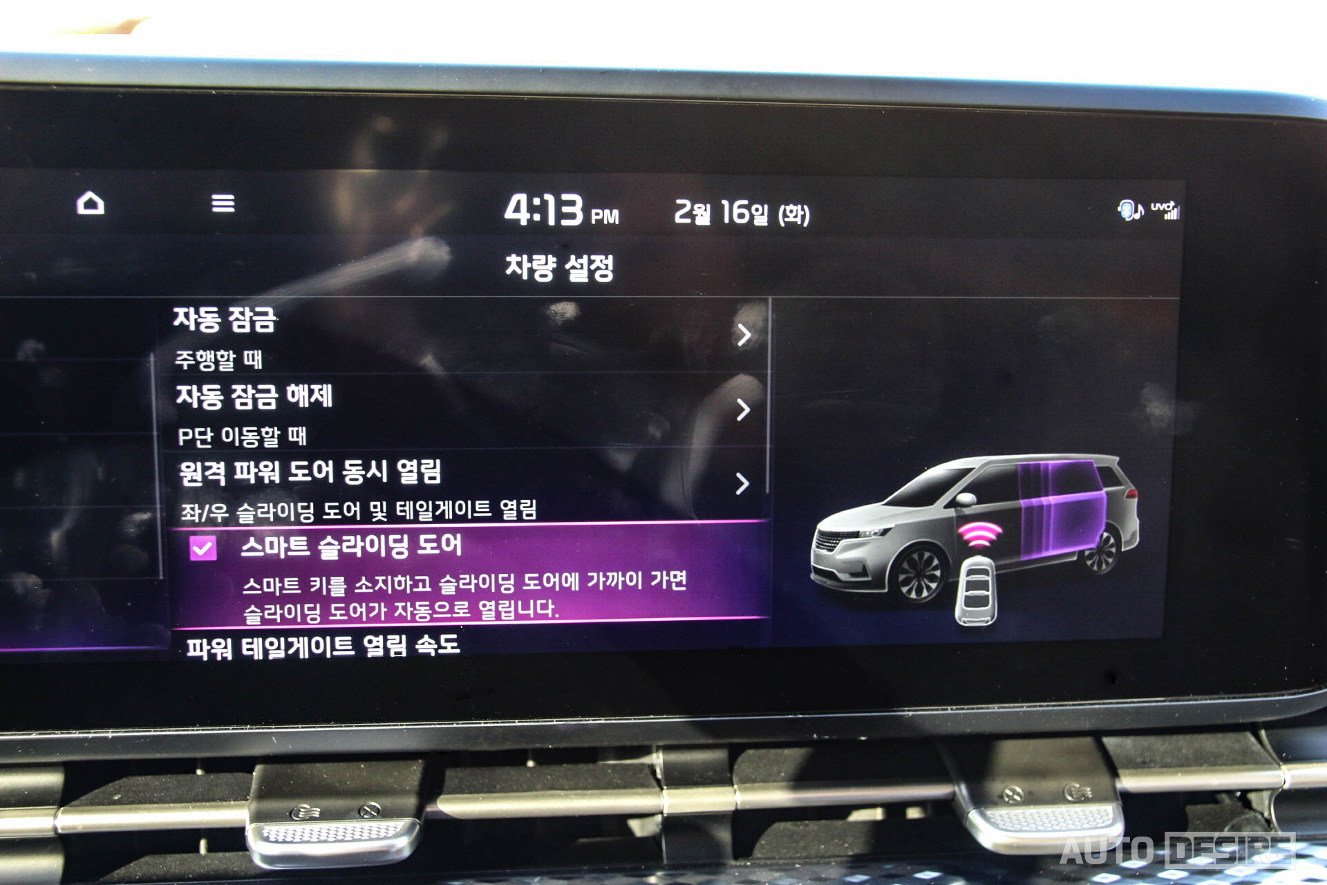 이 외에 운전자가 1열에서, 혹은 스마트키로 제어할 수 있지만 2열 승객들을 위한 기능으로 스티어링 휠 칼럼 좌측 하단에 슬라이딩 도어 자동 열림/닫힘 버튼이 있고, 스마트 슬라이딩 도어 기능으로 스마트키 잠금/해제 버튼을 통해 동시에 좌우 슬라이딩 도어/테일게이트를 열고 닫을 수도 있다. 인포 시스템 내에서는 2열 승객이 더 편하게 쉴 수 있도록 2열 시트 등받이 조절 기능과 후석 시트 열선/통풍 제어 기능도 포함, 혹시나 후석 승객이 그대로 하차한 경우에도 운전자가 굳이 2열로 가지 않아도 시트를 원 상태로 복구하기가 편리하다.