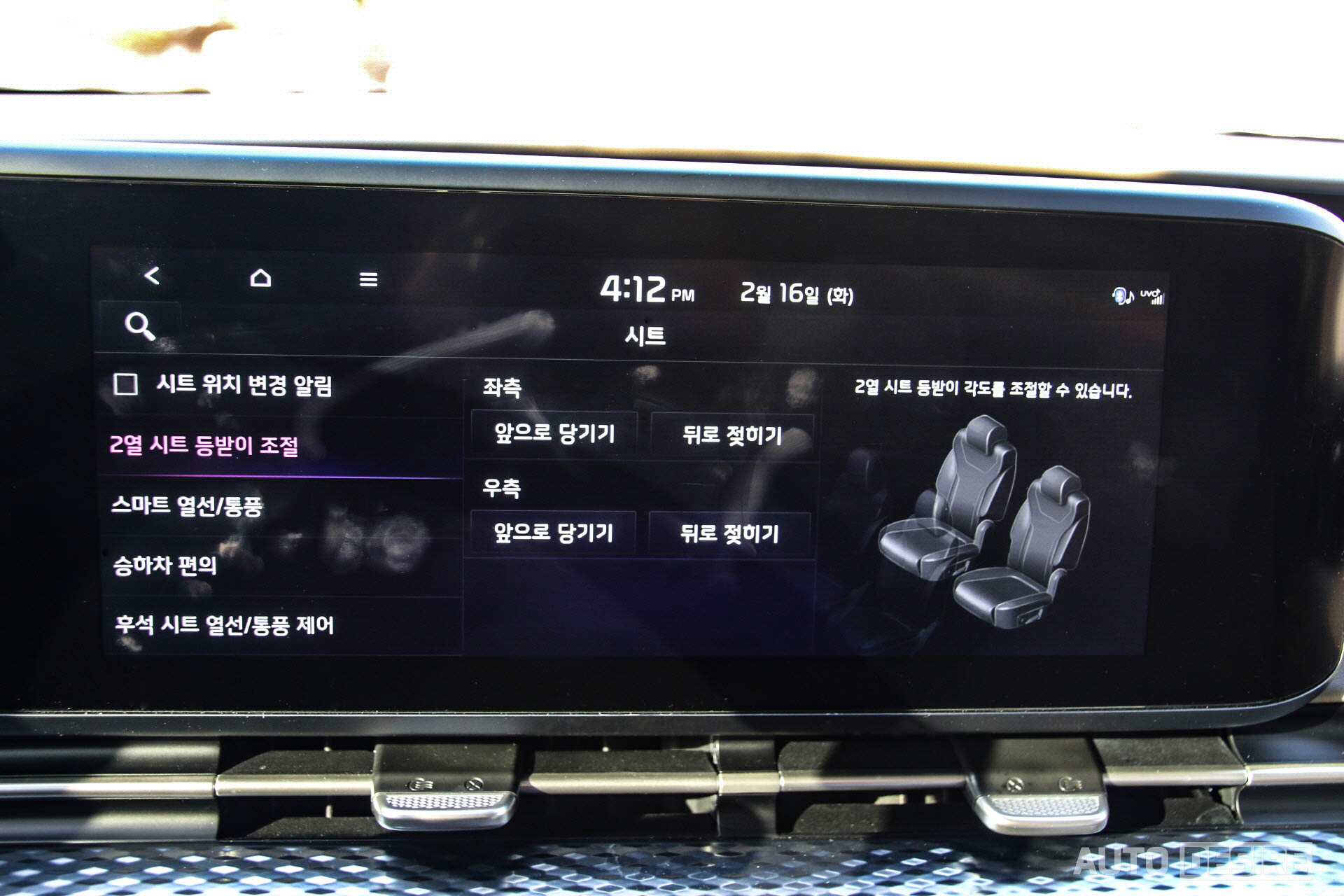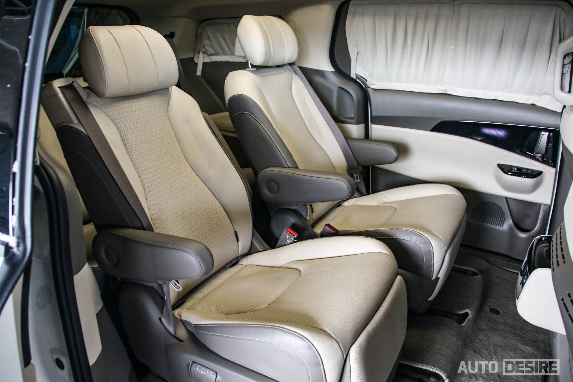 시승한 차량은 7인승 모델로 2열 승객 공간으로 넘어오면 기본적인 시트 배열과 전후좌우 공간, 2열 독립 시트 구성도 일반 카니발 7인승과 동일하지만, 넓은 시트폭과 함께 열선/통풍, 전동 리클라이닝, 좌우 암레스트, 다리 지지대, 원터치 프리미엄 릴렉션 시트 기능을 가졌기에 이 정도로 편의성에서는 모자람 없이 충분하다고 생각하며,