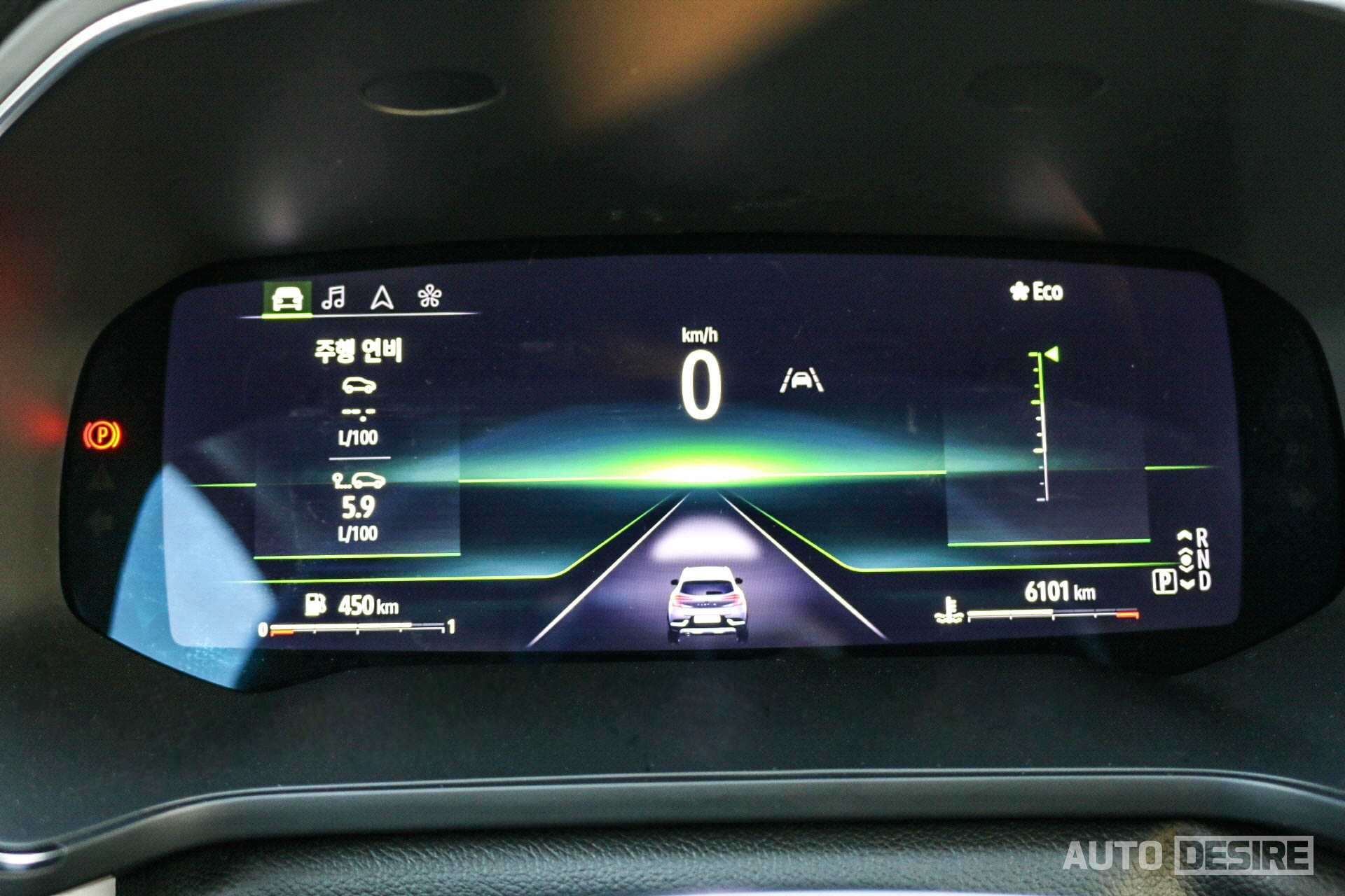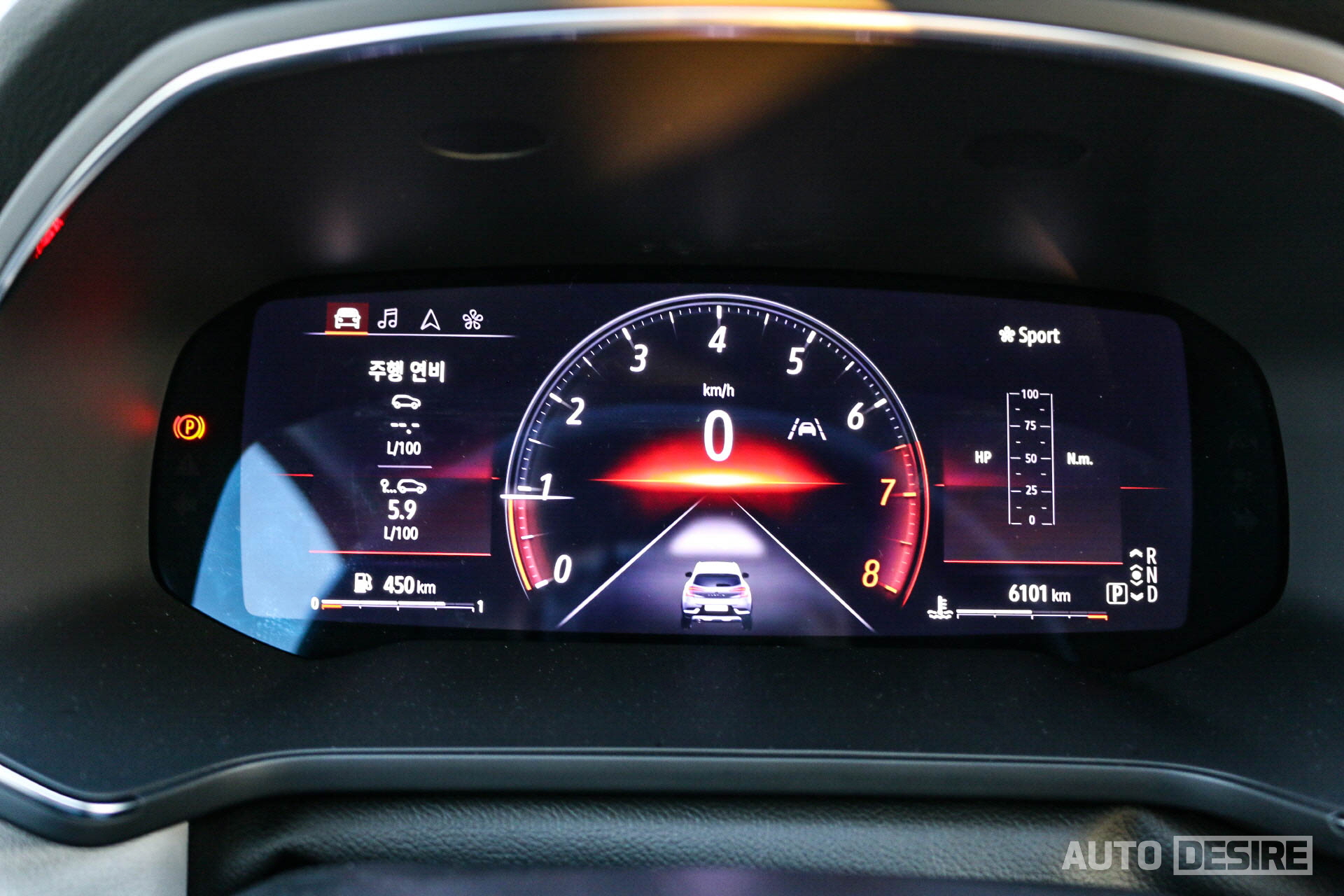 앰비언트 라이트와 함께 배경 색상 연동, 주행 모드에 따라 그래픽 테마 변경이 가능한 10.25인치 디지털 클러스터에는 맵-인 클러스터 기능으로 내비게이션 화면을 중앙에 띄울 수 있어서 헤드업 디스플레이의 부재를 보완해 주고 있다. 폰트 사이즈가 조금 더 컸으면 싶기도 하지만, 전체적인 그래픽과 구성은 만족스럽다.