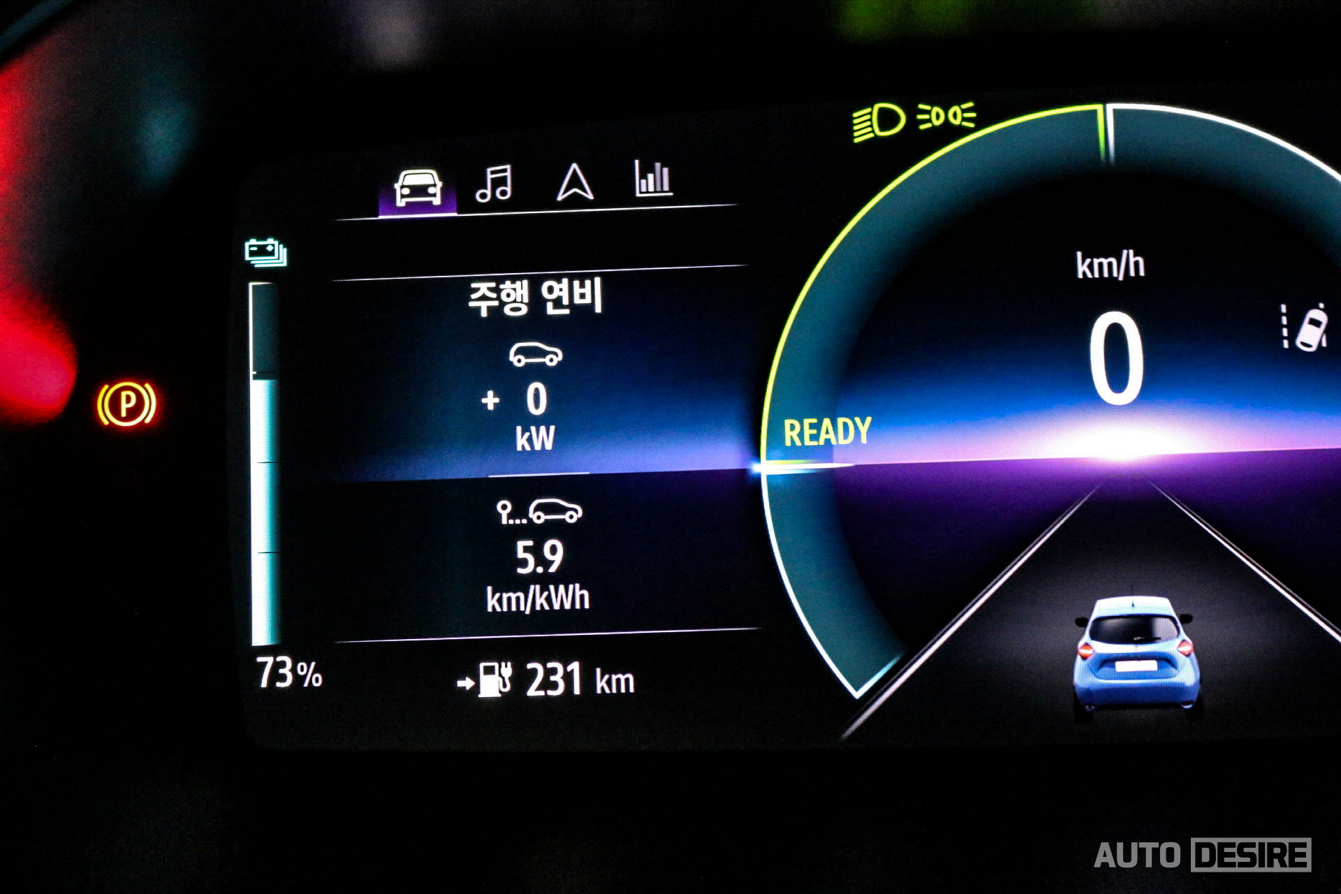 참고로 지난 9월 시승 때 100% 완충 후 구리시민한강공원에서 임진각 평화누리 공원까지 일요일에 강변북로-자유로 구간을 주행했을 때에는 324km를 주행하고도 주행 가능 거리가 91km가 남았고, 봄/여름철에는 주행 상황에 따라 400km 이상도 충분히 주행 가능한 효율성을 보여줬다. 이는 조에의 효율성이 기대하는 것보다 좋다는 것이기도 하지만 전기차 구매 시 여름-겨울 간 배터리 효율, 연비 차이를 미리 충분히 참고해야 한다는 뜻이기도 하다.
