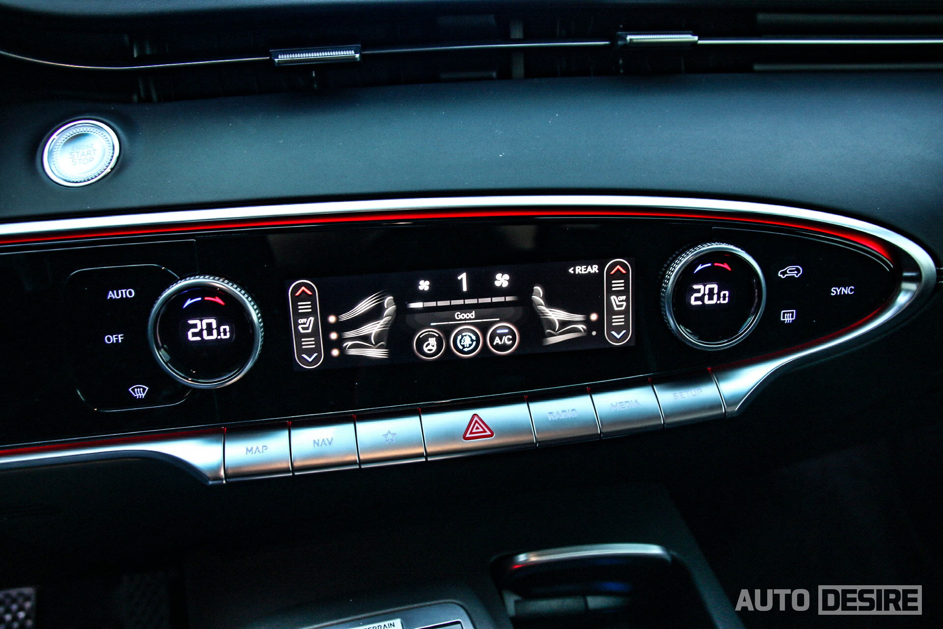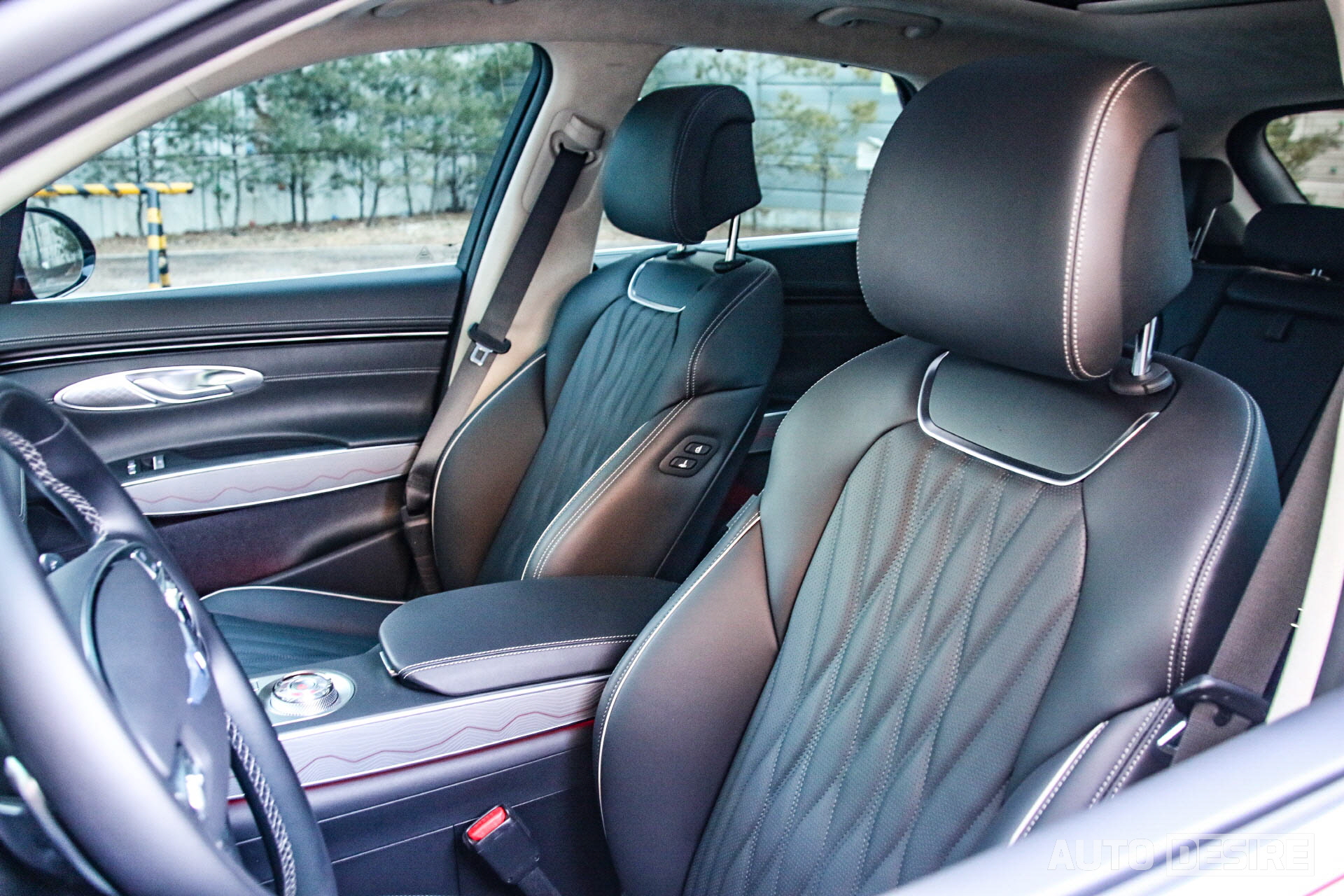 퀼팅 파이핑으로 고급감을 높인 1열 시트에는 에르고 모션 시트도 적용, 총 18개 방향으로 시트 조정이 가능한 것과 함께 스트레칭 모드를 제공해 운전자가 원할 때 작동할 수도 있고, 차량이 운전자가 장시간 휴식을 취하지 않았을 경우에도 작동을 해주기 때문에 장거리 운전 시 피로를 덜어준다. 스포츠 시트처럼 제법 높게 솟아오른 사이드 볼스터는 주행 모드와 연동되어 스포츠 모드에서, 혹은 고속도로에서 일정 속도 이상으로 속도를 높이게 되면 운전자의 몸을 더 꽉 조여주는 점이 굉장히 마음에 들었다.