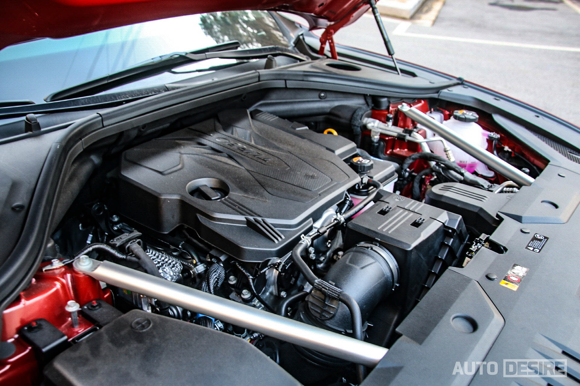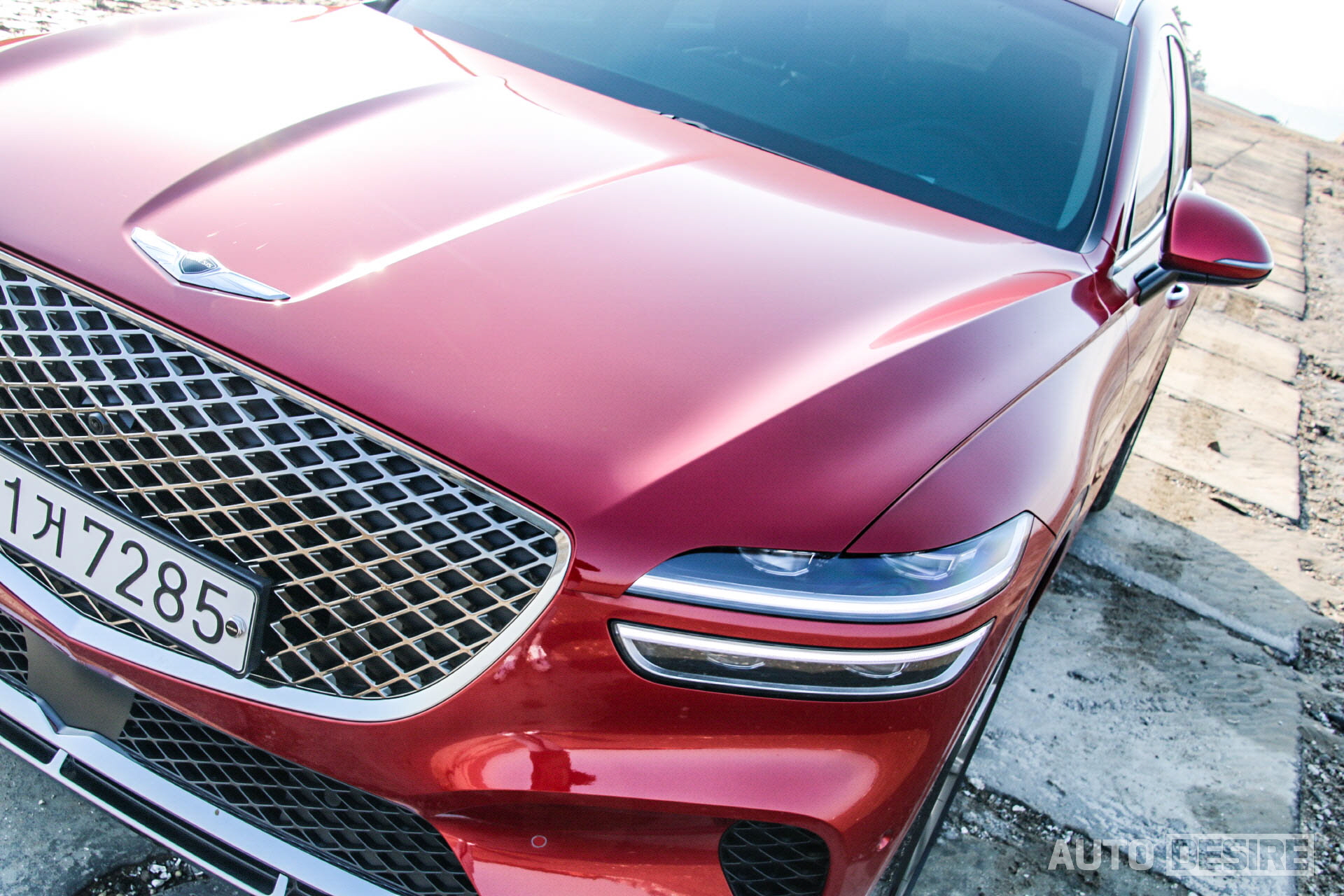 일단 시승차는 스포츠 패키지 없이 21인치 휠 적용 모델로, 외관의 모습은 먼저 탔었던 3.5 가솔린 모델과 동일한 모습. 하지만 외장 색상은 눈에 확 들어오는 강렬한 빨간색 '마우나 레드'가 적용되었는데, GV80에 이 색상을 적용했다면 어색해 보였겠지만, 더 젊은 감각에 볼륨감, 매끈한 라인을 강조한 GV70과는 너무나 잘 어울리는 모습이다.