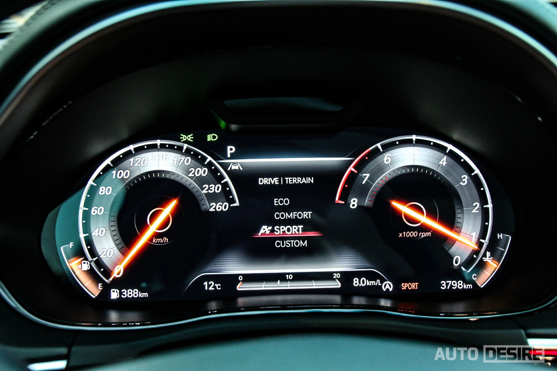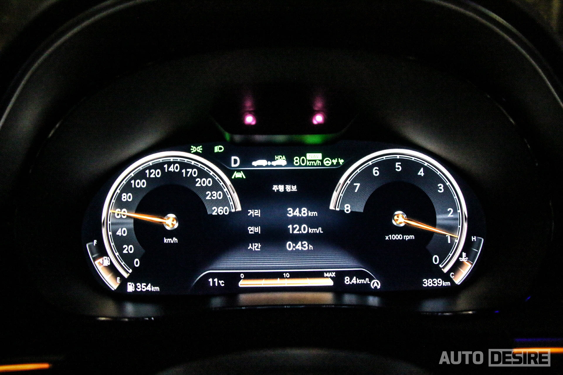 에코, 컴포트, 스포츠 모드에 따라 그래픽이 변경되는 12.3인치 디지털 클러스터는 인포 시스템 테마에 따라 테두리, 포인트 색상도 코퍼(구리)와 코퍼 러스트(청동 색상)으로 변경할 수 있다.