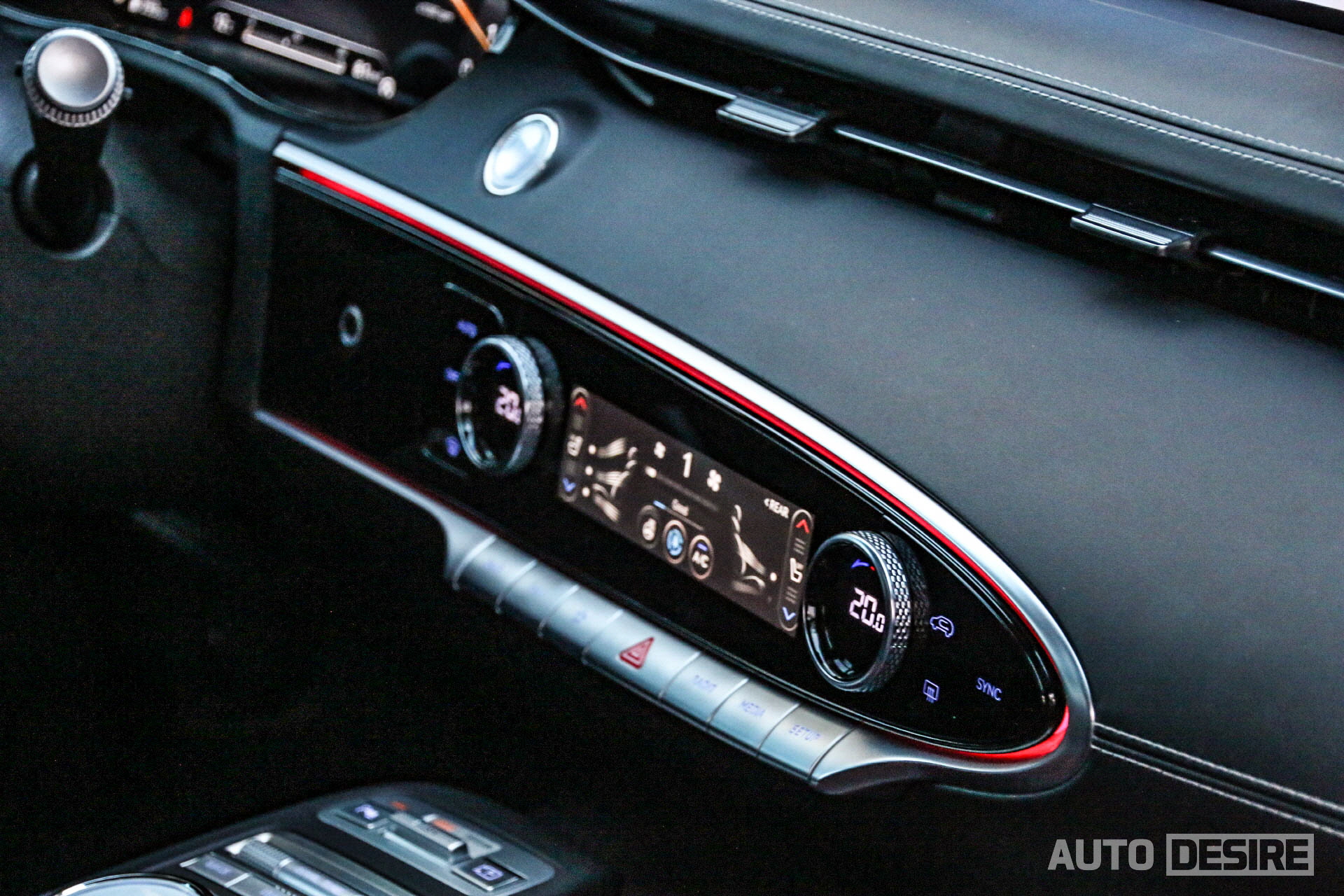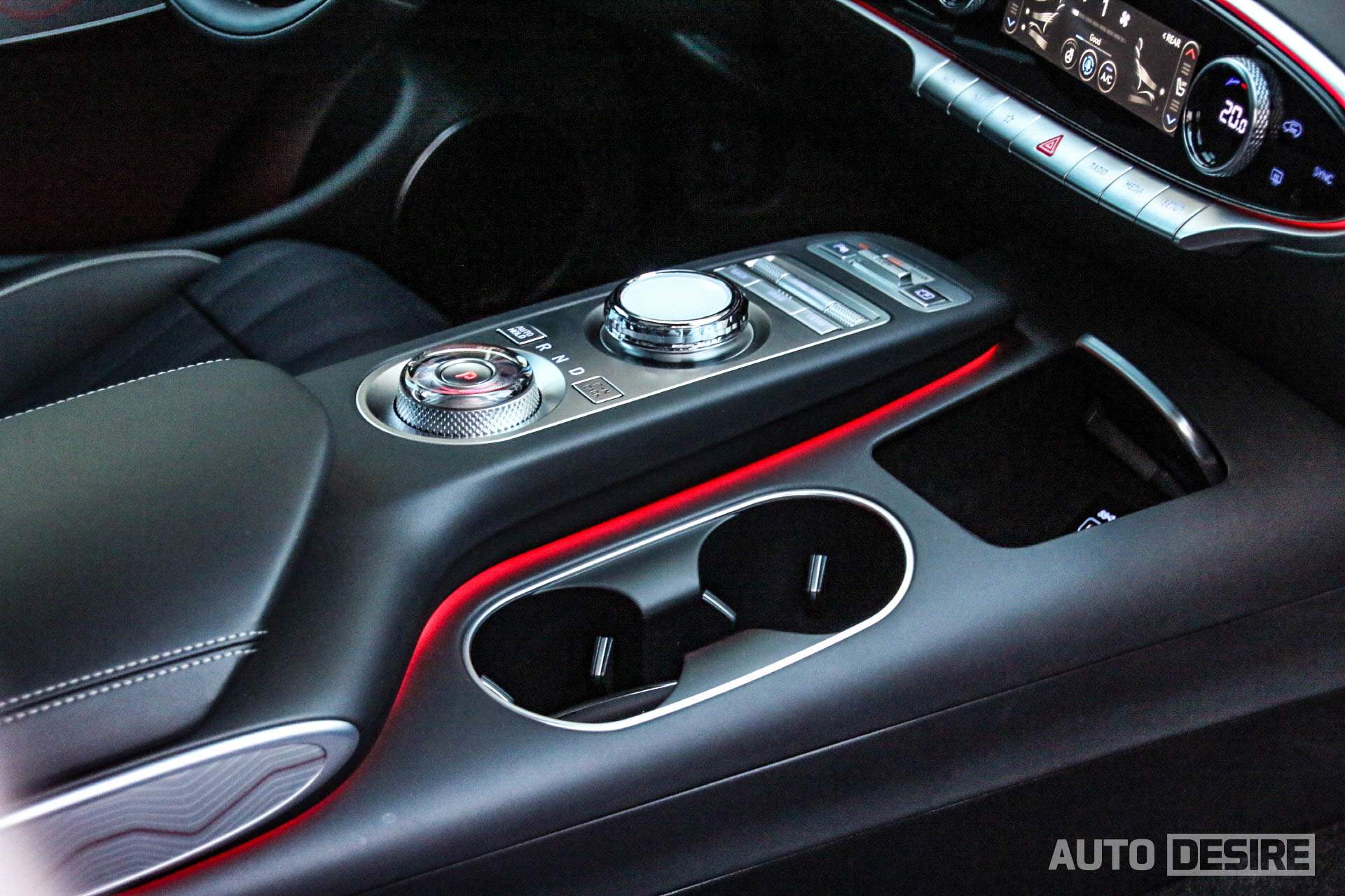 크리스탈처럼 투명한 소재에 무드램프가 함께 들어오는 전자식 변속 다이얼도 G80/GV80과 동일하게 적용되었지만 그 앞의 통합 컨트롤러 다이얼에는 차이가 있는데, GV80은 납작하게 낮고 오목하게 되어있어 미끄럽기도 하고 조작감이 썩 좋은 편은 아니었는데, 이를 반영해서인지 GV70은 돌출된 형태로 변경, 다이얼 테두리에 정교한 패턴을 더해 조작감도 더 높였다.