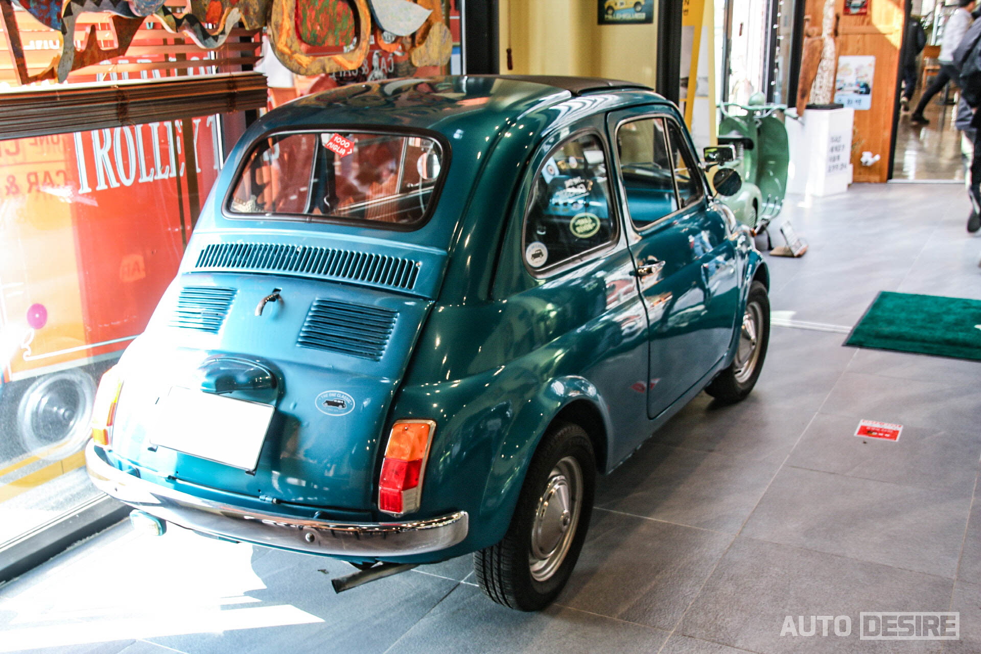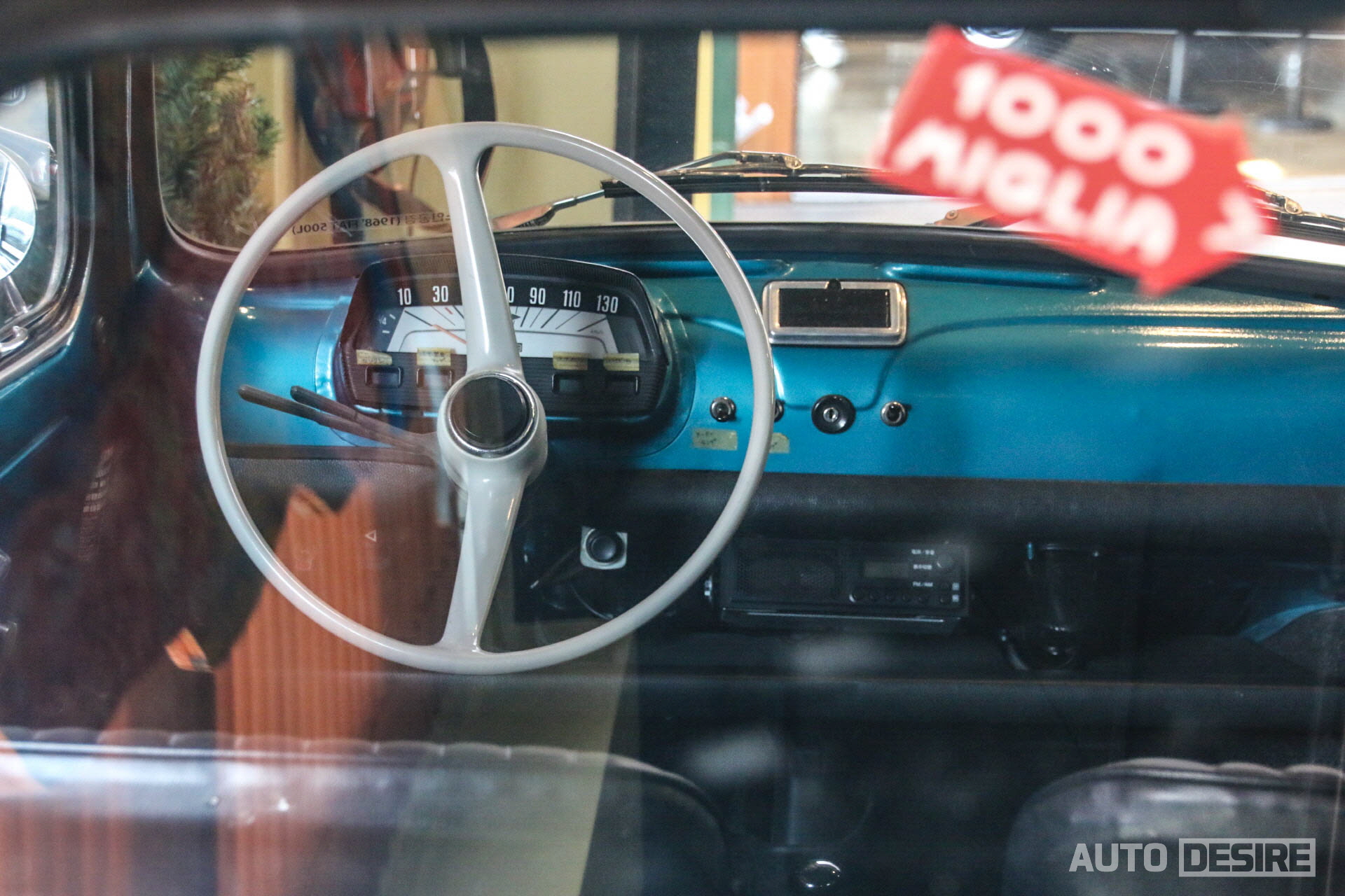 더 안쪽으로는 오리지널 피아트 500, 친퀘첸토까지. 여러 매체, 영상, 또 레이싱 시뮬레이터를 통해 접하기도 했고 실물로 보는 것은 처음. 또 차체는 청록색으로 칠해 지금까지 보지 못했던 신선한 느낌. 예상한 것보다 더 작은 차체가 놀랍기도 한데, 더 놀라운 건 전시되어 있는 모든 차량이 번호판이 장착되어 주행까지 가능한 컨디션에 원하는 고객이 있을 경우 판매도 가능하다는 것. 실내까지 오리지널의 그 모습 그대로, 최고의 퀄리티를 유지하고 있다.