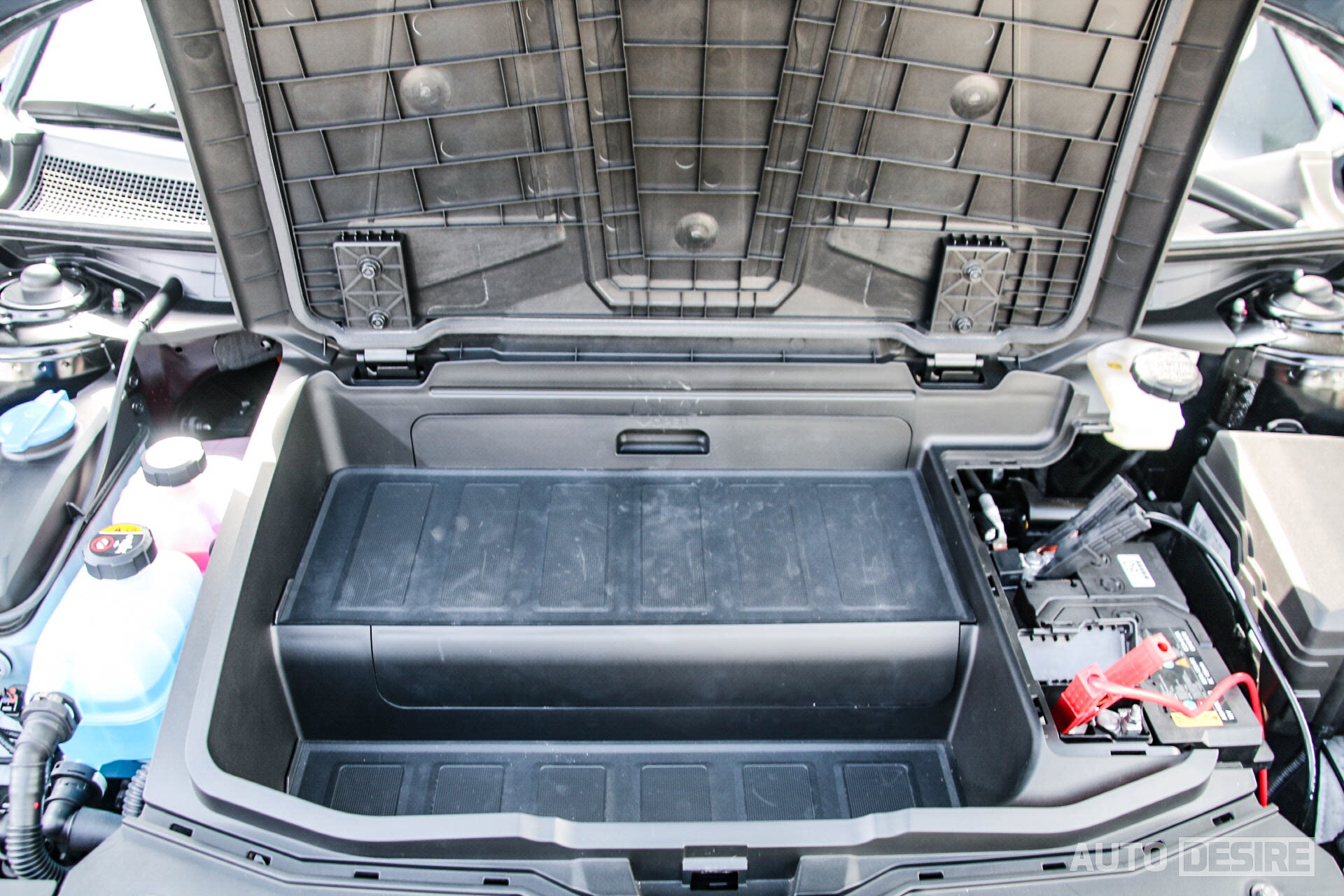 전륜 모터의 낮은 위치 덕분에 후드 안쪽으로도 별도 적재 공간을 확보해뒀는데, 그렇게까지 큰 공간은 아니지만 외부 V2L 용 어댑터나, 가정용 충전 케이블 보관 용도로 사용하면 적절할 것 같다.