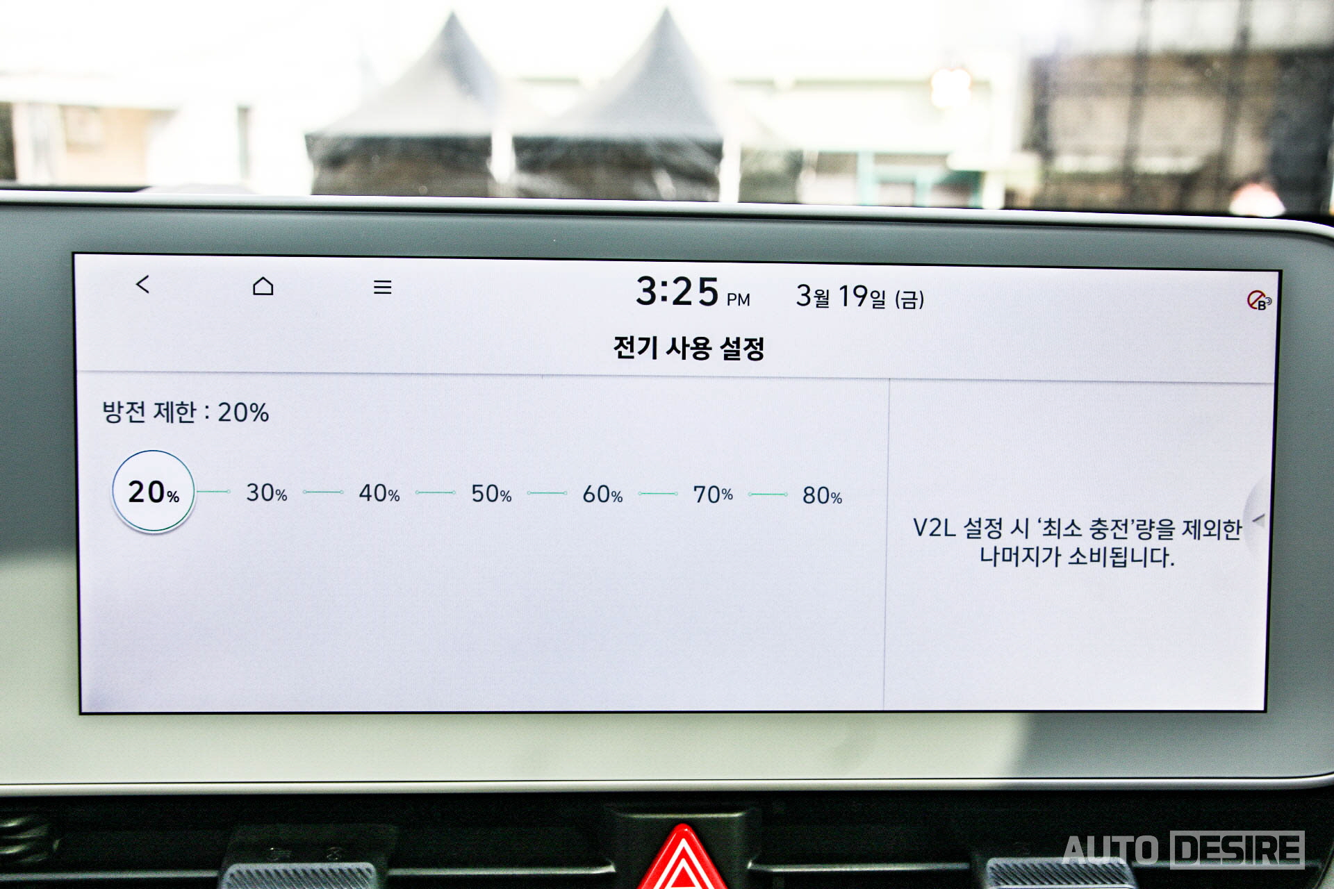 추가로 V2L 기능의 경우, 차량 주행을 위해 최소한으로 남겨둘 배터리 잔량을 제외한 나머지를 사용할 수 있게 설정이 가능하다.