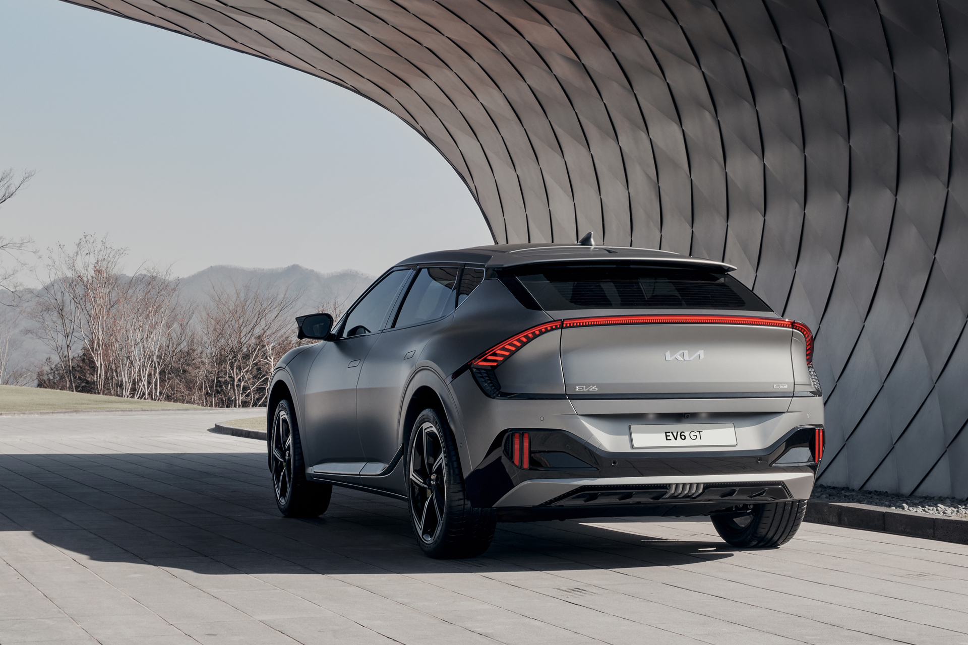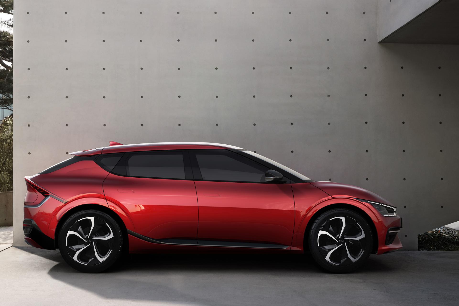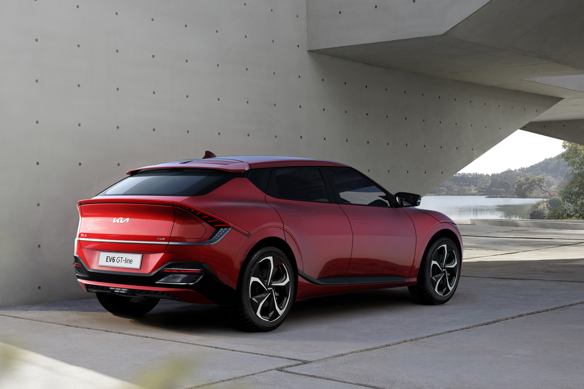 측면에서는 사이드 하단에서부터 휠하우스를 지나 테일램프로 이어지는 다이내믹 캐릭터로 역동적인 느낌과 강한 존재감을 더하고, 리어 글라스와 측면 유리가 이어지는 C필러 가니시로 루프가 떠있는 것 같은 느낌을 준다. 리어 글라스 하단/테일게이트 상단부분에는 LED 램프와 통합한 리어 데크 스포일러로 EV6의 역동적인 분위기를 이어가며 윙타입 리어 스포일러와 함께 공기역학 성능도 최적으로 구현했다고 한다.