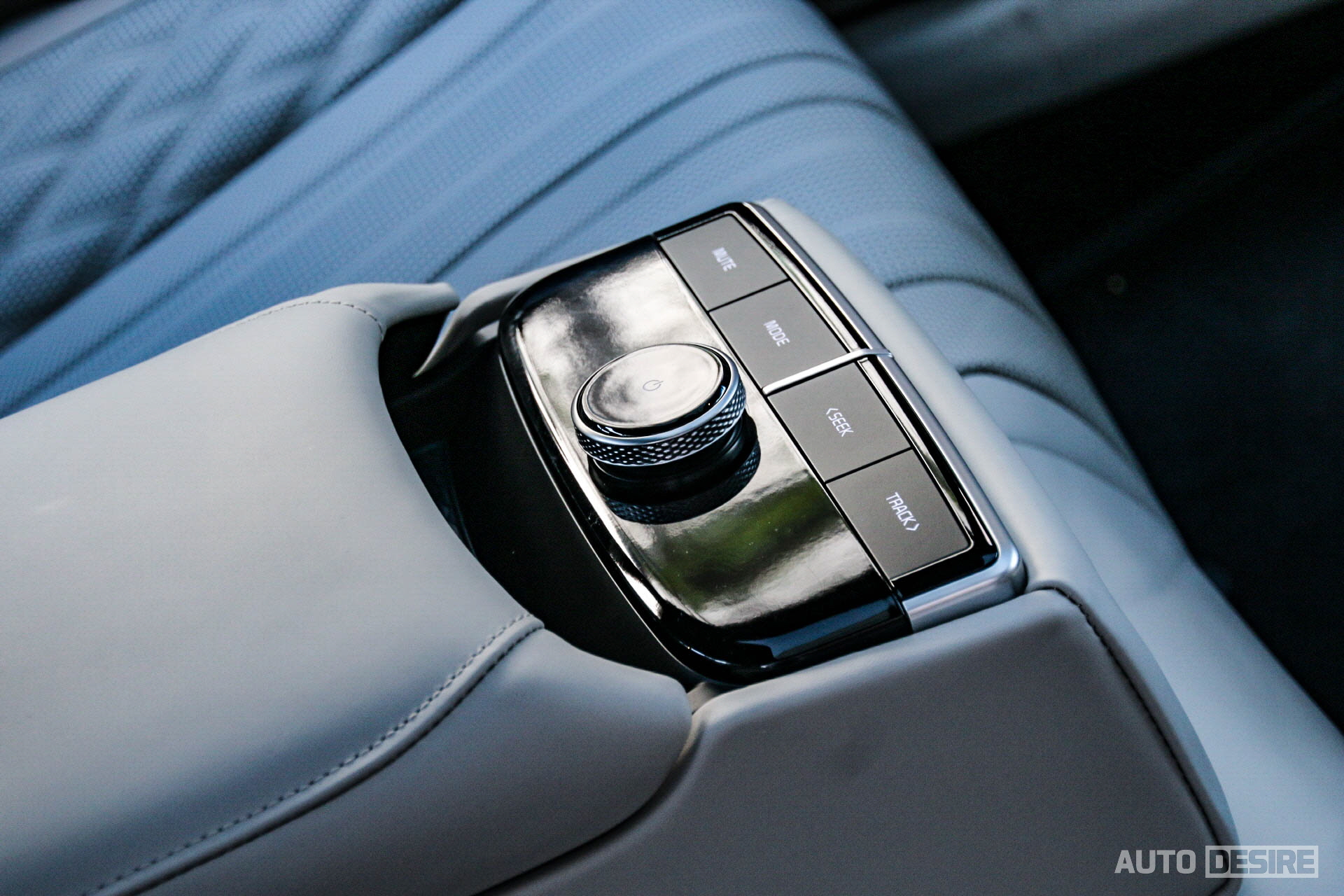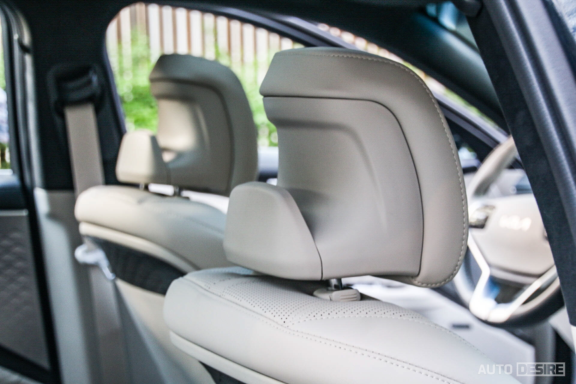 루프가 살짝 낮아지기는 했지만, 전장과 휠베이스가 크게 늘어나 2열 공간은 굉장히 넓으며 헤드 공간도 부족하지 않다. 2열에도 역시 시트를 비롯해 도어 트림, 1열 시트백까지도 다이아몬드 패턴 패널이 더해져있고, 옷걸이로 사용할 수 있는 헤드레스트 뒤쪽의 형태가 인상적이다. 후석 승객을 위한 편의 사양으로는 암레스트 리모콘과 2열 송풍구, 3존 에어컨으로 2열 온도 조절이 가능하며 2열 시트에도 열선과 통풍, 측면 선커튼, USB 포트 등이 제공된다.