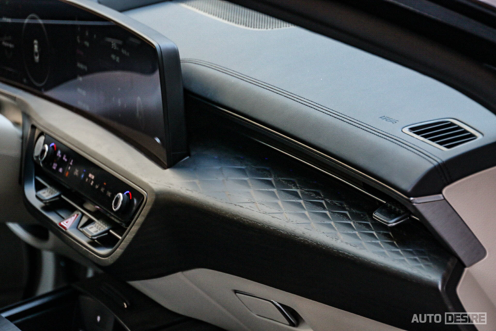 수평형으로 와이드하게 배열된 인테리어 디자인은 12.3인치 계기판과 12.3인치 인포테인먼트 디스플레이가 이어진 파노라믹 커브드 디스플레이와 인포테인먼트/공조 전환 조작계를 적용해 물리적인 버튼을 최소화에 심플하고 높은 개방감을 전해준다. 파노라믹 커브드 디스플레이의 경우 클러스터 하우징도 없애 화면이 더 시원하게 넓어 보인다.