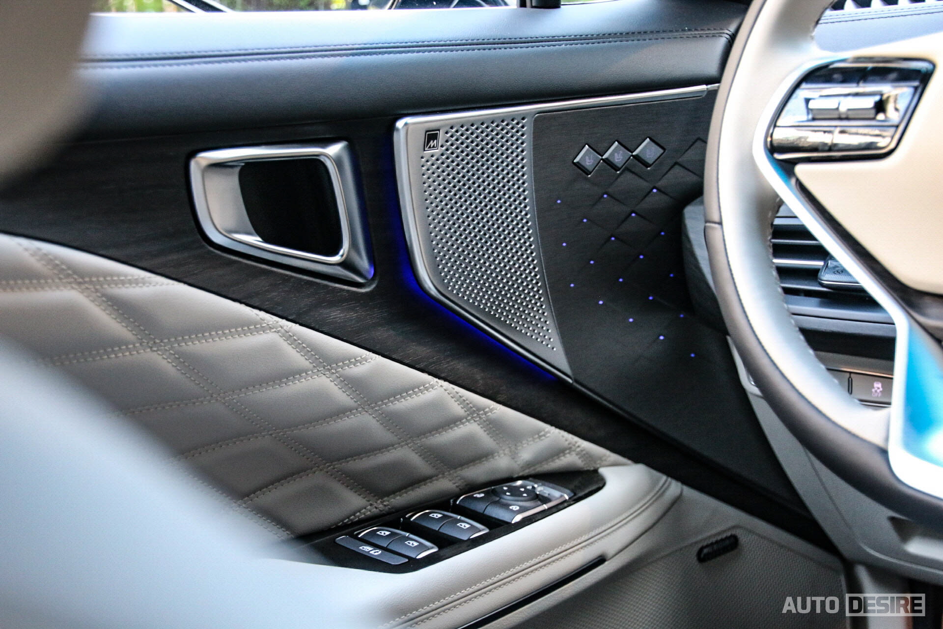 이런 심플한 구성에 지루함은 덜고 화려하면서 고급스러운 이미지를 더하기 위해서인지 시트와 도어트림 가죽 부분의 퀼팅 패턴을 비롯해 조수석 크래시 패드 상단과 스피커 커버를 비롯한 도어트림 가니시, 센터 콘솔에도 다이아몬드 패턴을 적용되어 있는데 외관에서 실내까지 전체적인 콘셉트를 이어나가는 것은 긍정적이나, 조금 과하지 않았나 싶기도 하다. 다만 별을 연상케 하는 도어 가니시와 크래시패드에 적용된 앰비언트 라이트는 뻔하지 않아 신선하게 느껴진다.