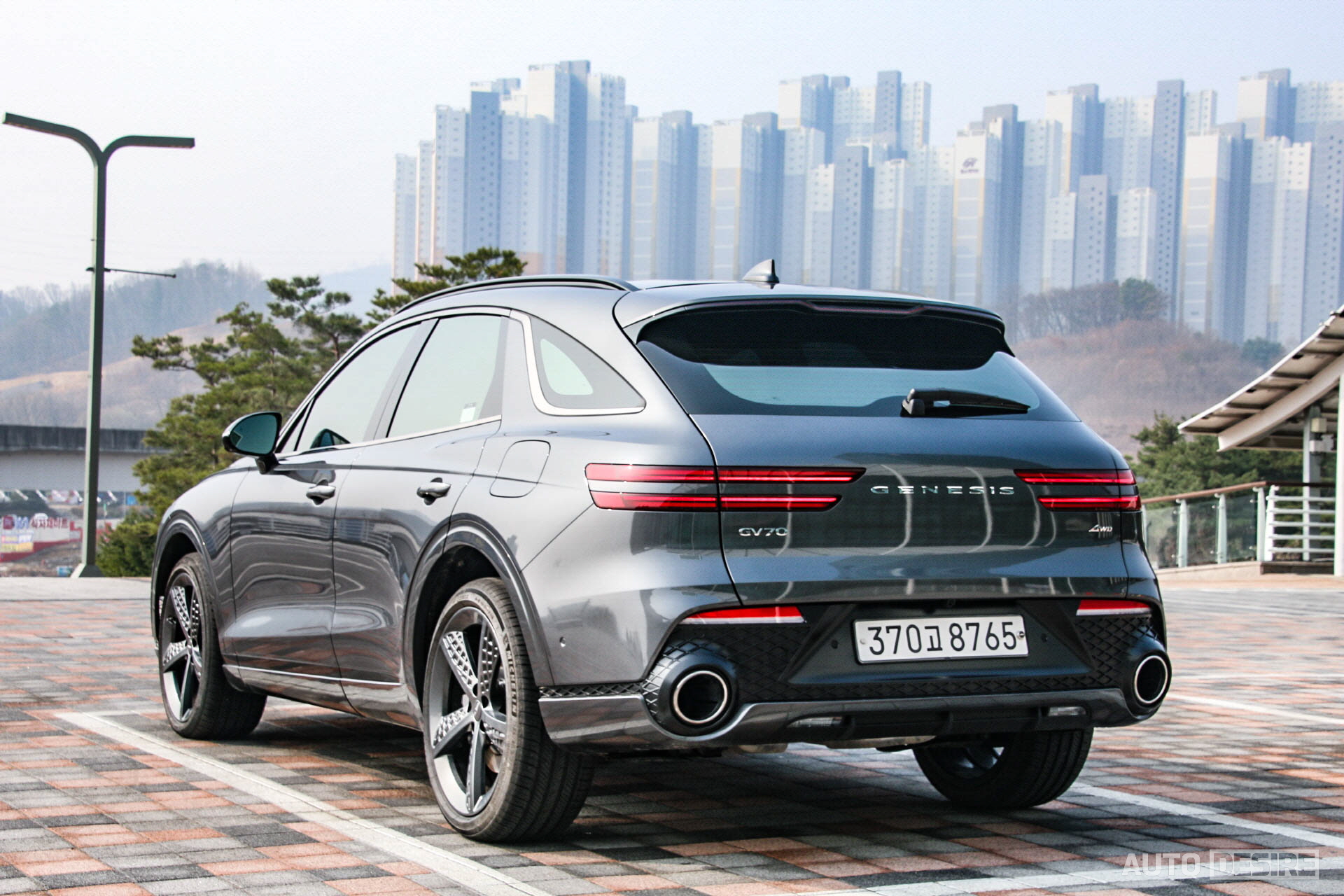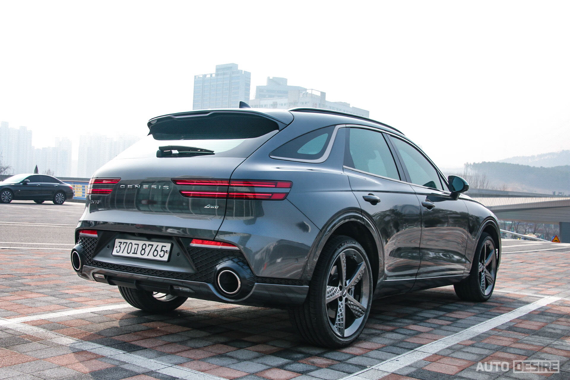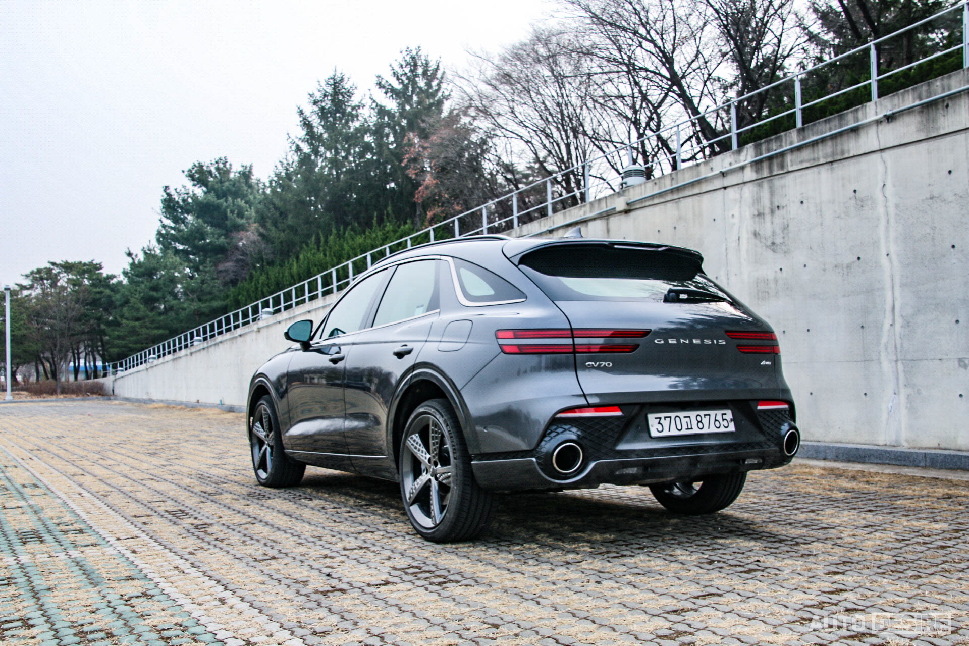 후면에서는 오각형 머플러 대신 대구경 원형 머플러와 범퍼 하단의 디퓨저로 일반 모델과 차별을 두었다. GV70의 전체적인 외관에는 오각형 머플러 팁이 더 자연스럽게 잘 어울린다고 생각하지만, 스포츠 패키지의 원형 머플러도 이것만의 매력은 있는 것 같다.