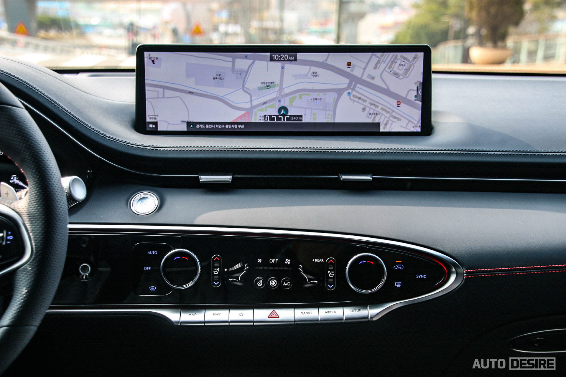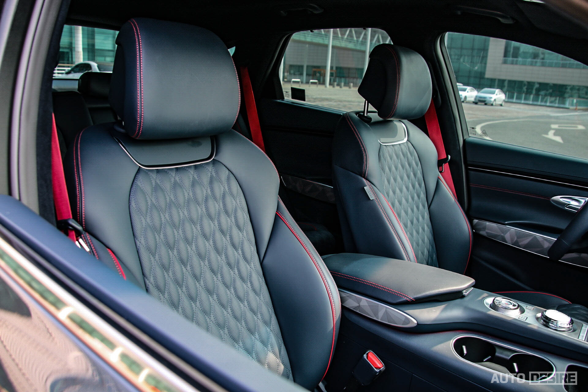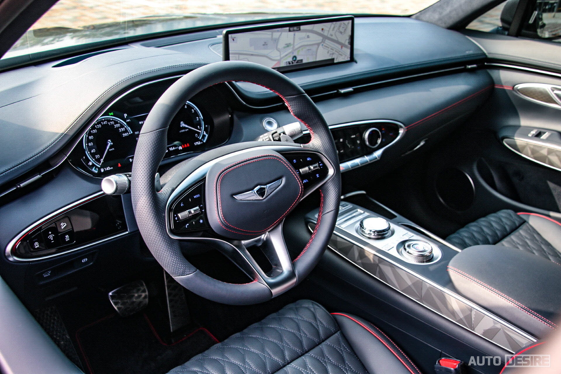 스티어링 휠도 스포츠 전용 3-스포크 타입 디자인에 혼 커버와 림에 모두 레드 스티치가 적용되며, 타공 펀칭까지 함께 적용되어 있다. 또 혼커버는 오각형으로 크레스트 그릴을 떠올리게 하는데, 일반 모델의 2-스포츠 스티어링 휠과 다르게 요거는 스타일 호불호 없이 보는 사람 대부분이 만족하는 눈치고, 필자 역시도 마음에 든다.