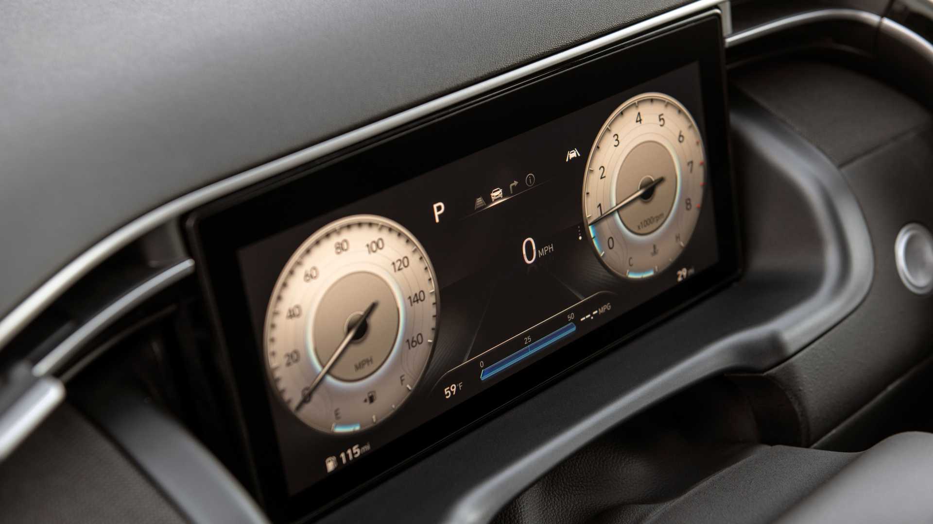 실내의 1열 공간은 4세대 투싼과 거의 동일하며 10.25인치 디지털 클러스터와 10.25인치 인포테인먼트 스크린, 보스 사운드 시스템 등이 제공된다. 그 외 편의 사양 구성에 있어서도 투싼과 대동소이하며 안전 사양으로는 보행자/자전거 인식 전방 충돌방지 보조, 차로 유지 보조, 운전자 주의 경고가 기본 적용, 스마트 크루즈 컨트롤, 후측방 충돌 경고, 후방 교차 충돌 경고, 후측방 모니터, 후방 주차 충돌방지 보조, 서라운드 뷰 모니터 등이 선택사양으로 제공된다.