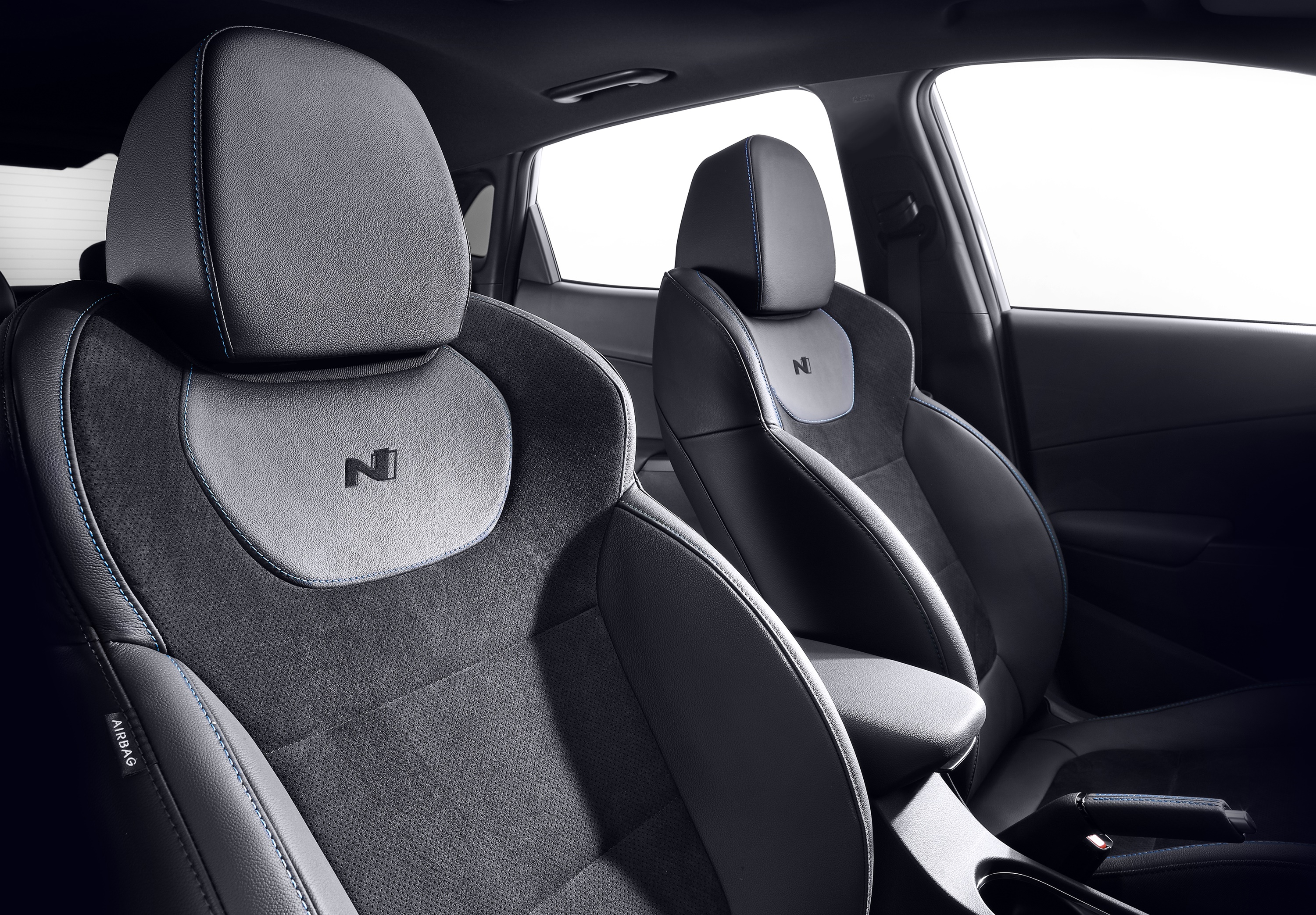 실내에서는 N 전용 디자인의 타공 펀칭 가죽 스티어링 휠과, N 로고를 더한 전용 시트, 퍼포먼스 블루 포인트 컬러를 더한 기어 노브, 핸드 브레이크 등이 적용된다. N 전용 시트의 경우 시트 측면 지지력을 높이기 위해 사이드 볼스터를 키우고, 스웨이드 소재를 사용했으며, 스티어링 휠에는 빨간 NGS 버튼과 함께 양쪽 스포크 하단으로 두 개의 N 버튼이 자리 잡았는데, 각각 N 모드와 N 커스텀 모드를 선택할 수 있는 것으로 보인다.