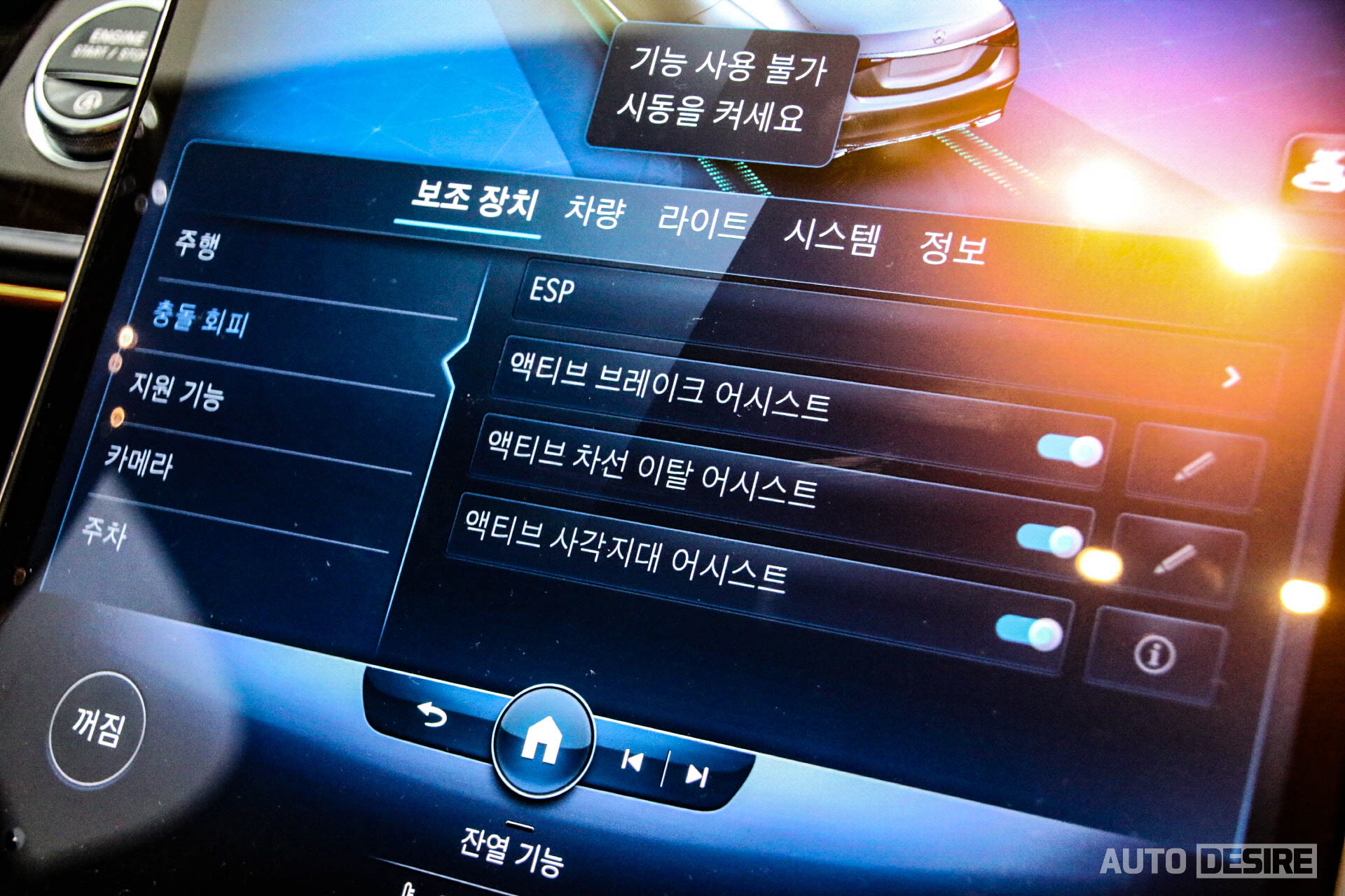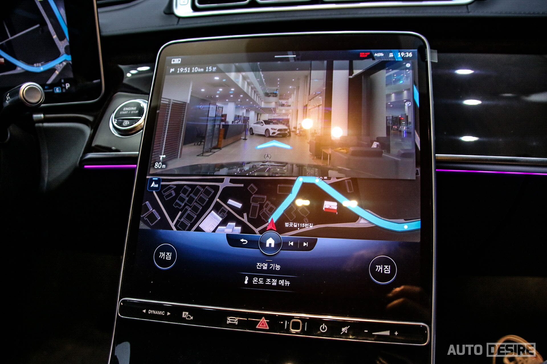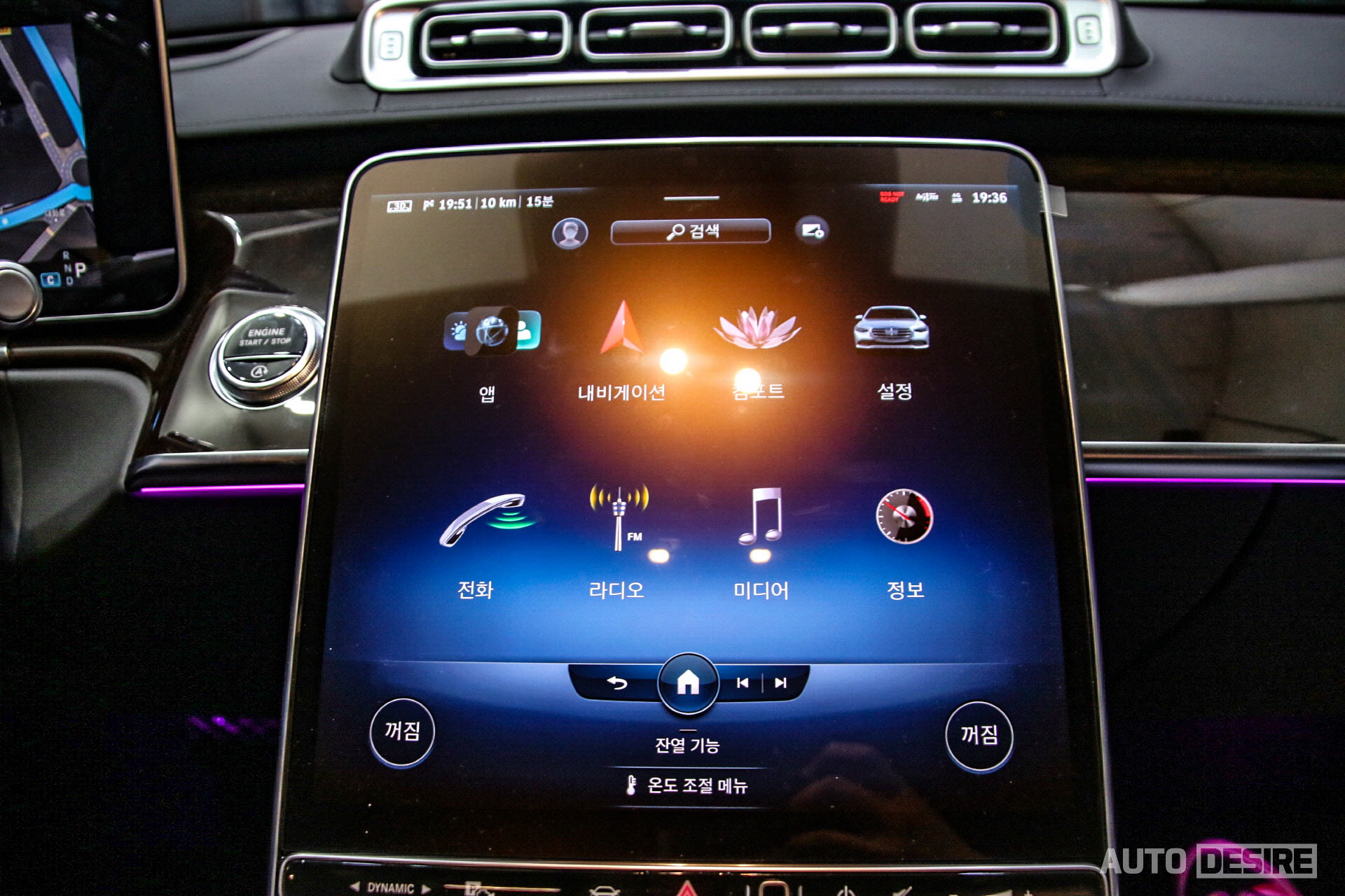 화려한 액티브 앰비언트 라이트와 실내 가죽, 마감재뿐만 아니라 또 크게 달라진 것. 바로 복잡한 버튼들을 정리하고 중앙을 가득 채운 12.8인치 터치스크린과 이를 통해 공조 컨트롤러까지 함께 조작하게 되고, 신규 MBUX 인포테인먼트 시스템과 음성 인식 기능이 적용된다. 완전한 풀 터치스크린을 조작하는데 아직 불편함도 남아있지만, 익숙해짐에 따라 더 편하게 사용할 수 있을 거라고 본다.