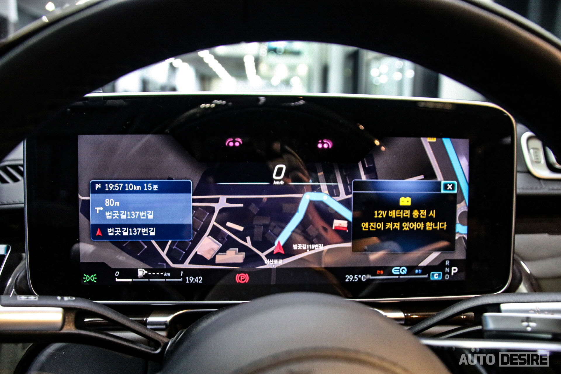 12.3인치 디스플레이 3D 계기반은 모던 클래식, 럭셔리, 디스크릿 등 취향에 맞는 테마 선택도 가능하고, 내비게이션 경로 안내도 선택 가능해 중앙 터치스크린으로 시선을 이동하지 않아도 내비게이션 정보를 편하게 확인할 수 있다. 개인적으로는 경로 안내는 헤드업 디스플레이를 통해 확인하고 계기반은 다른 테마로 설정하는 편이 더 마음에 들지만.